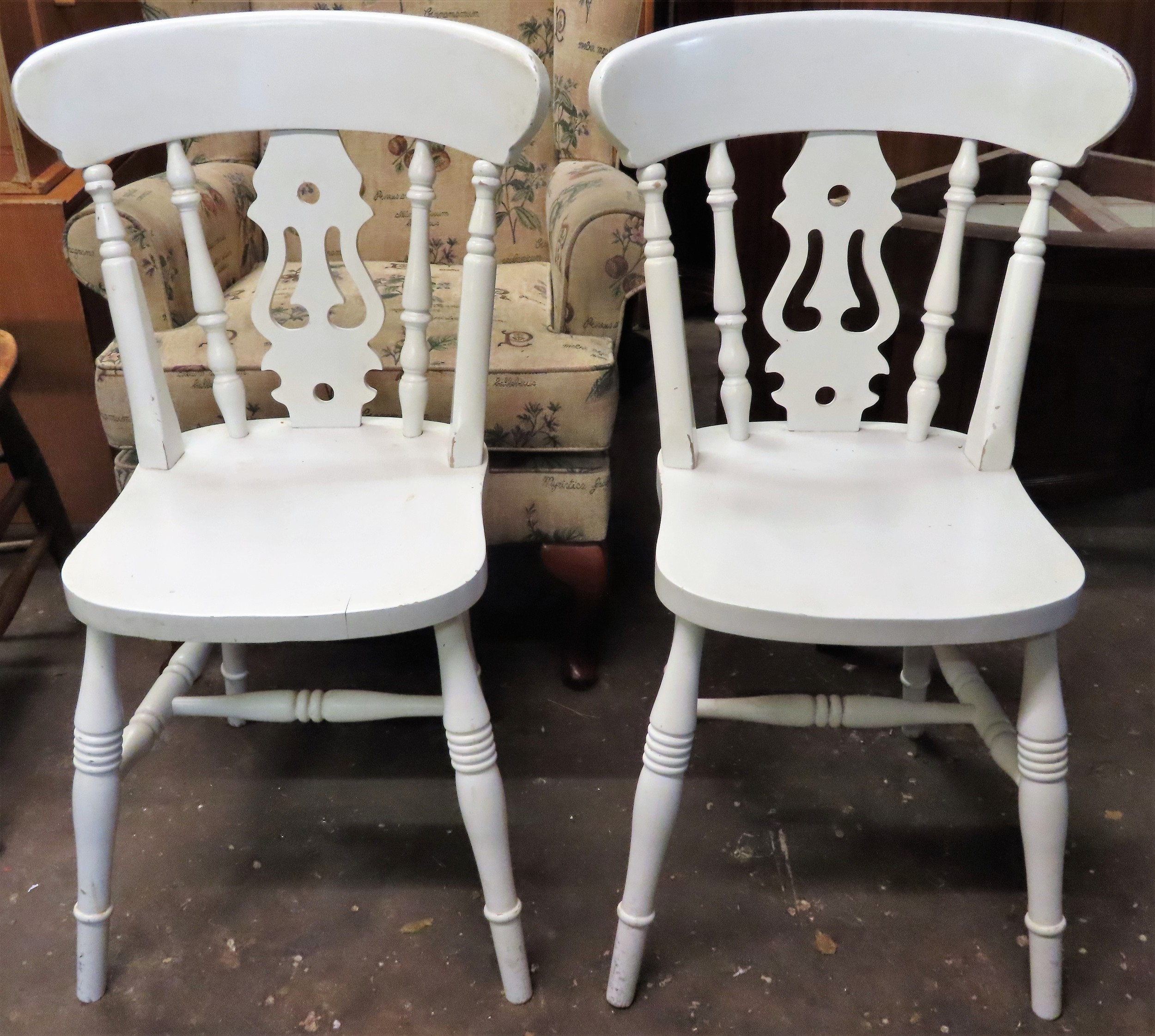 Pair of painted country style chairs. Approx. 87cm H x 51cm W x 40cm D