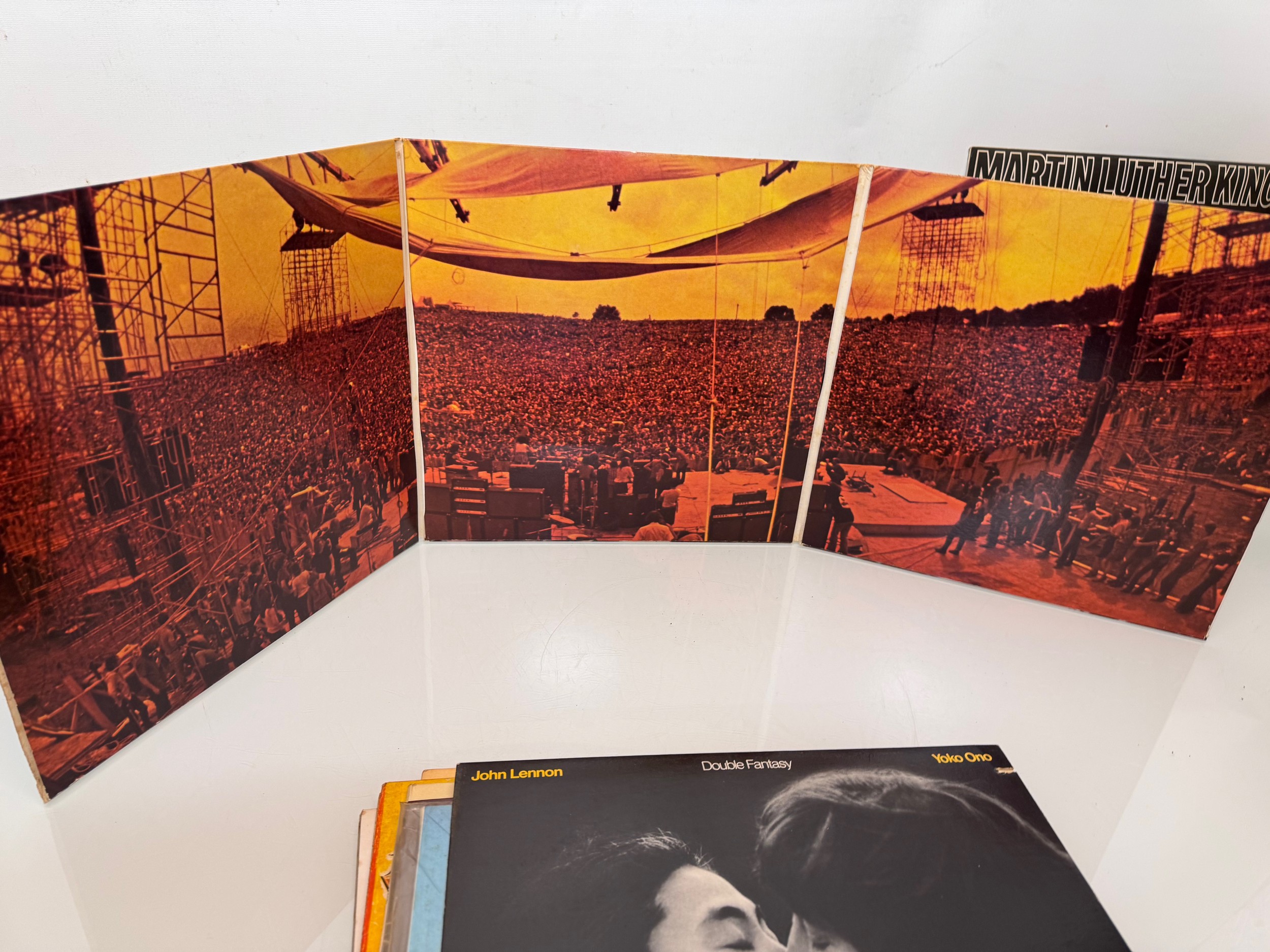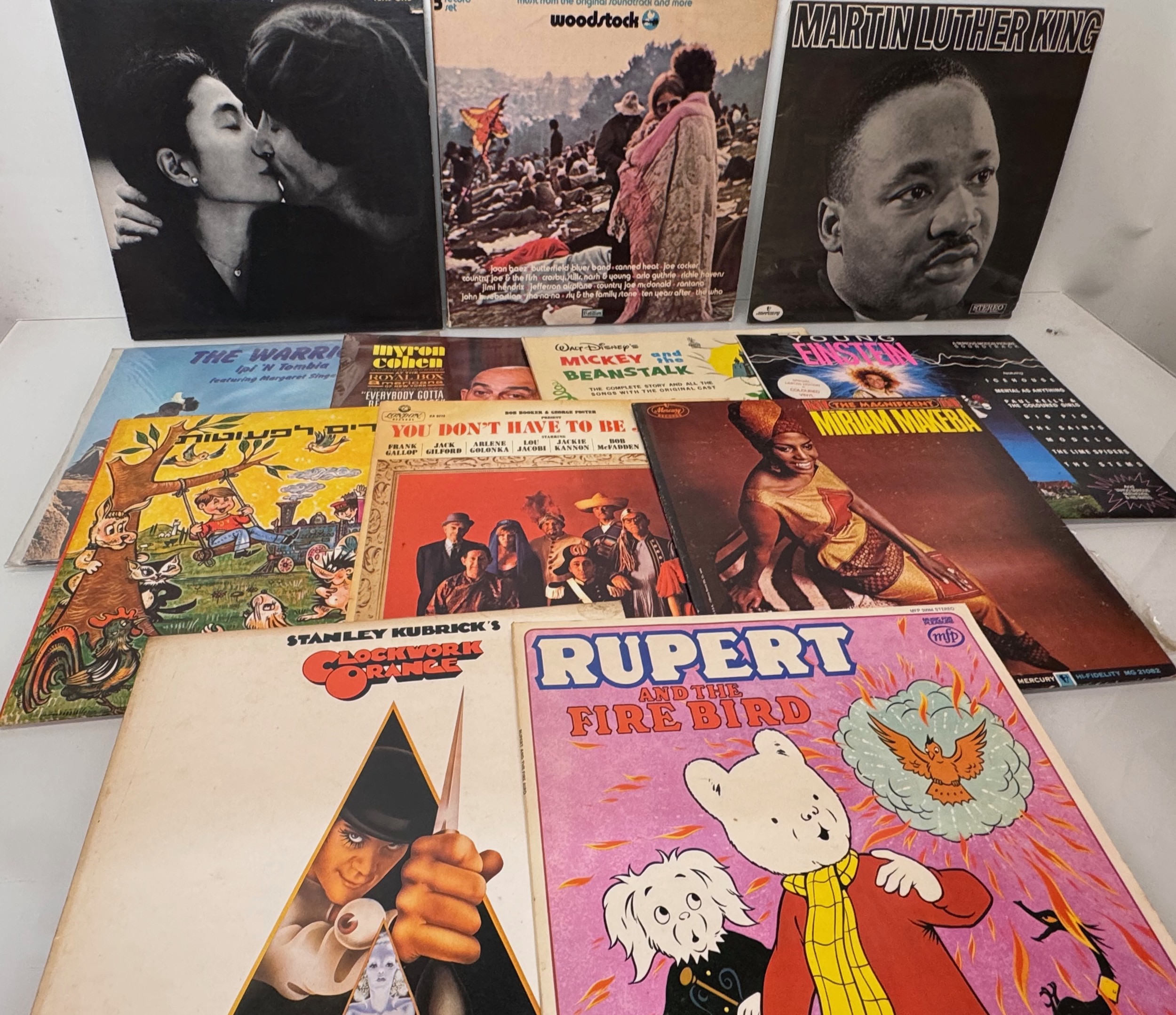 Records, a small collection of vinyl LP's, John Lennon, Woodstock, Martin Luther King, Clockwork Orange etc.