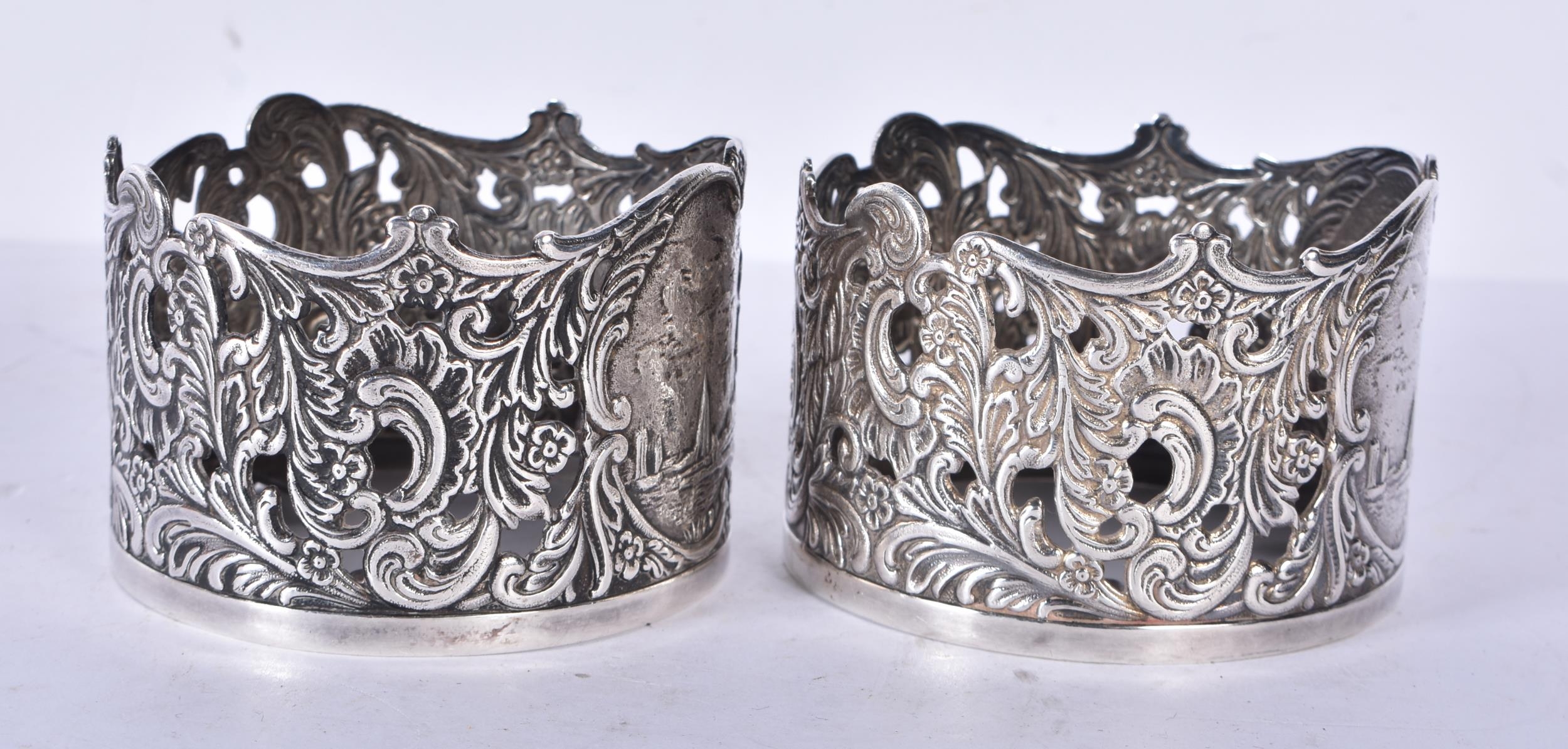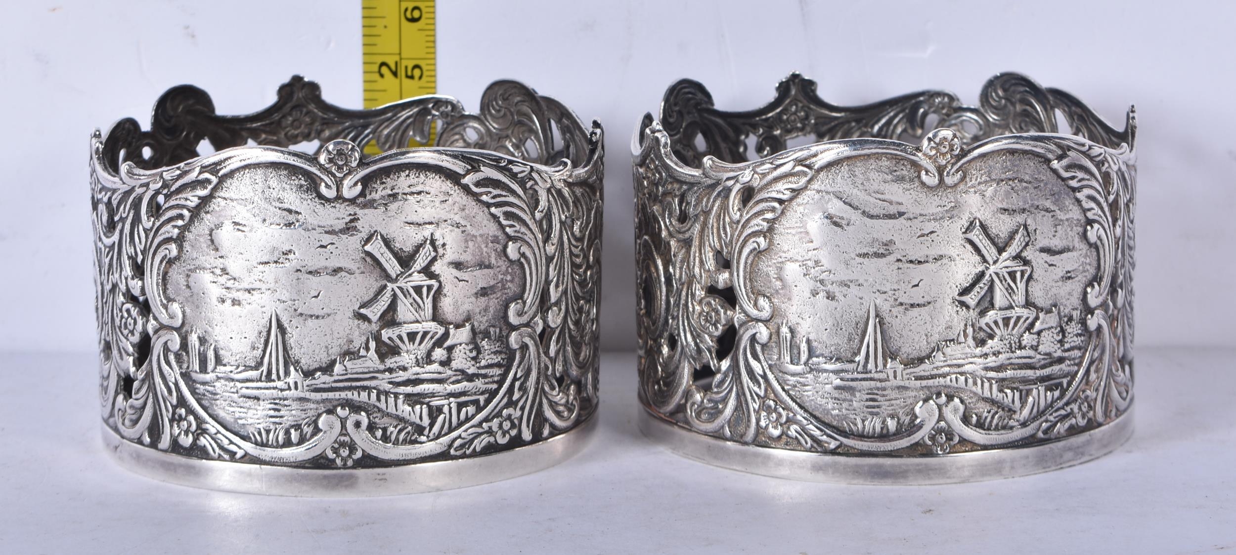 A pair of Dutch Silver plate bottle holders marked Gero 90 marks 5 x 7.8cm (2)