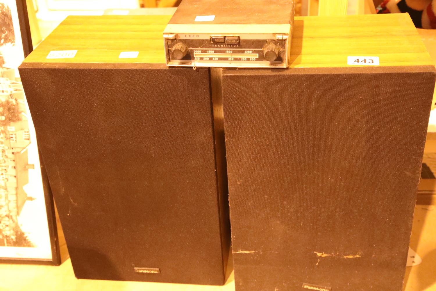 Pair of Panasonic speakers and a 1970s Ekco car radio. Not available for in-house P&P