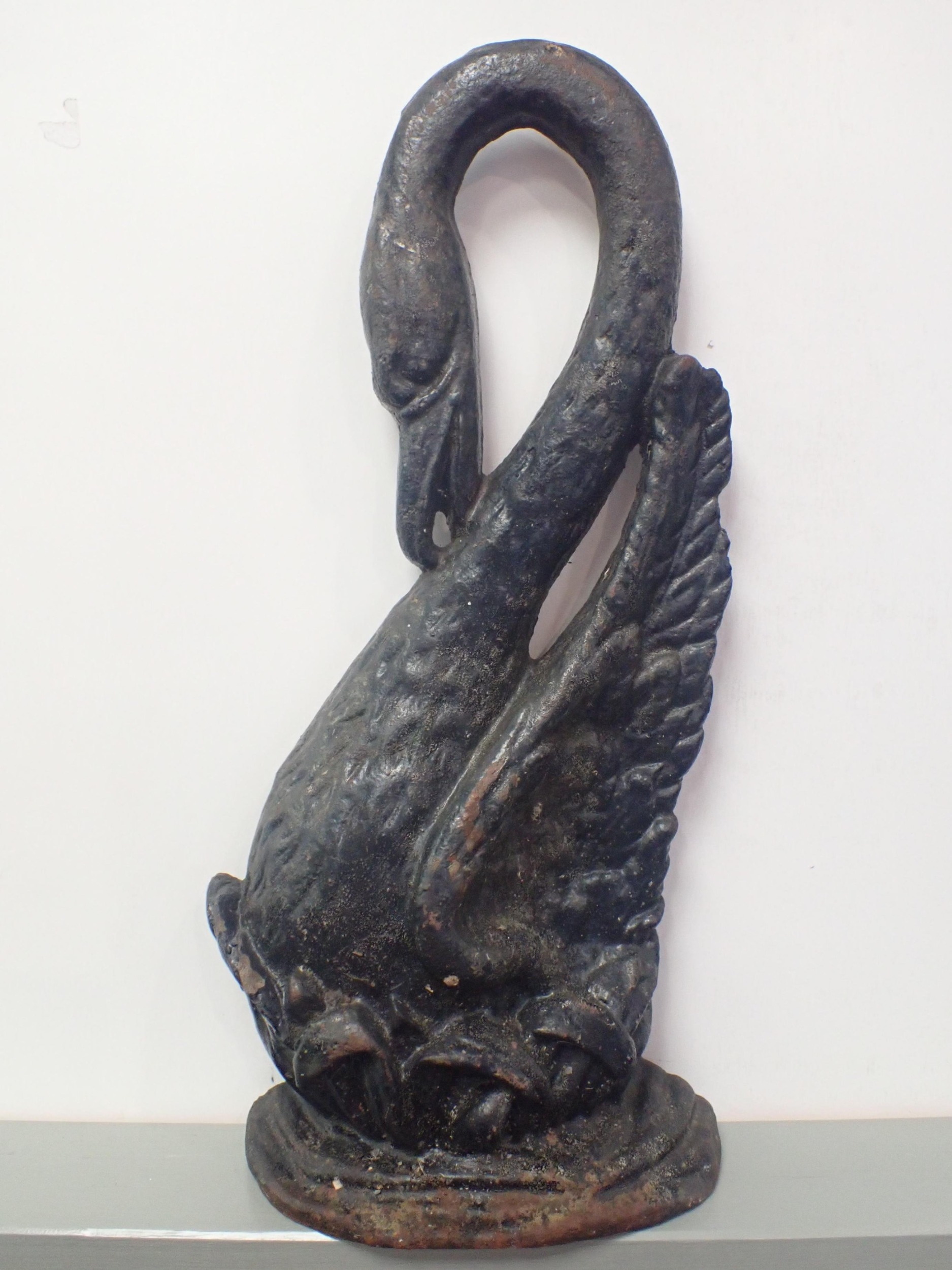 A CAST IRON SWAN DOORSTOP38cm high