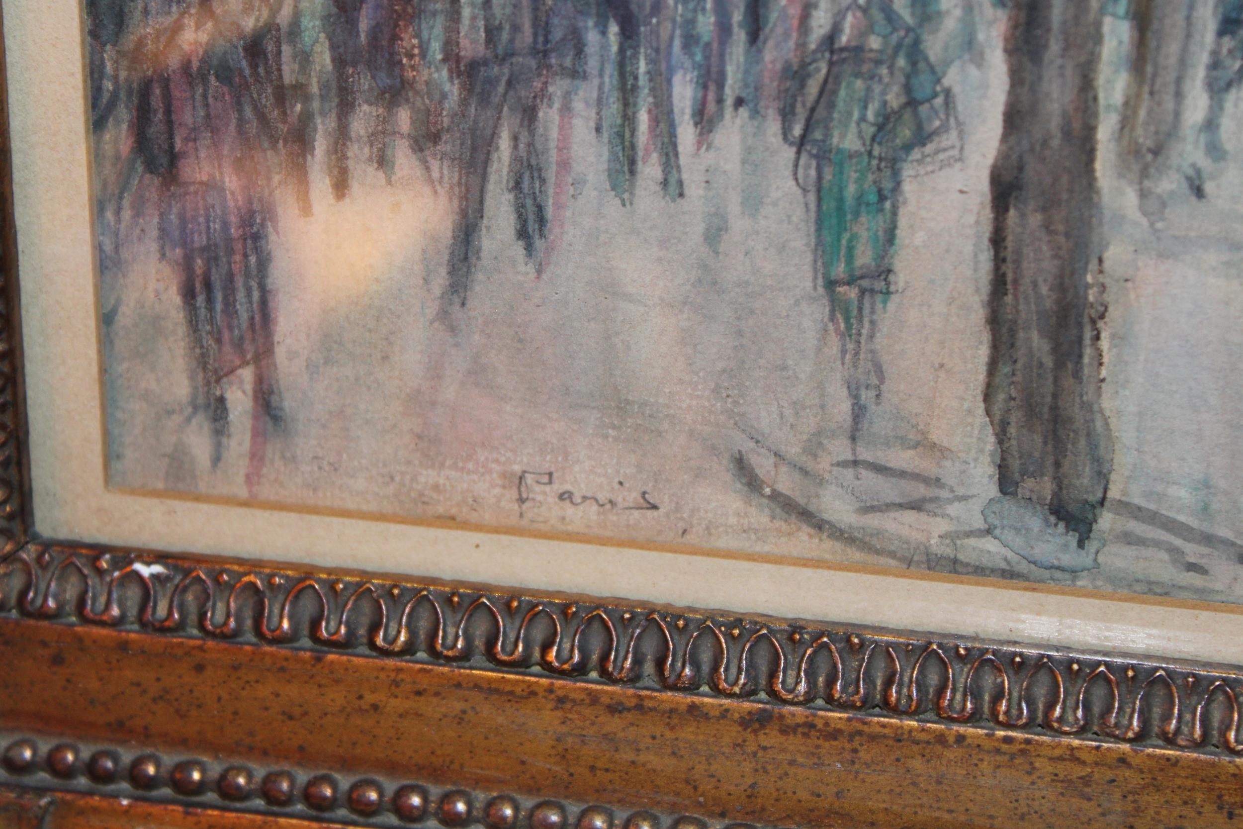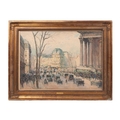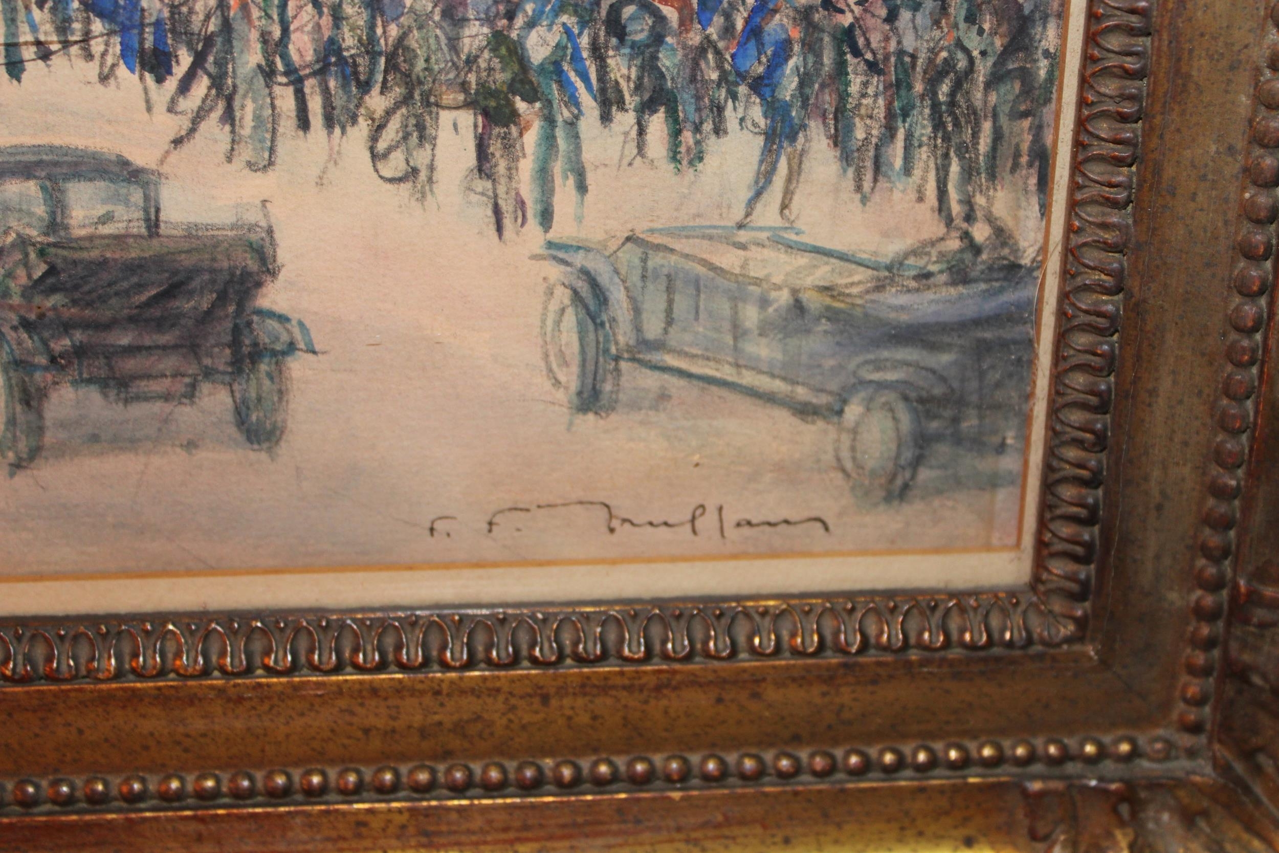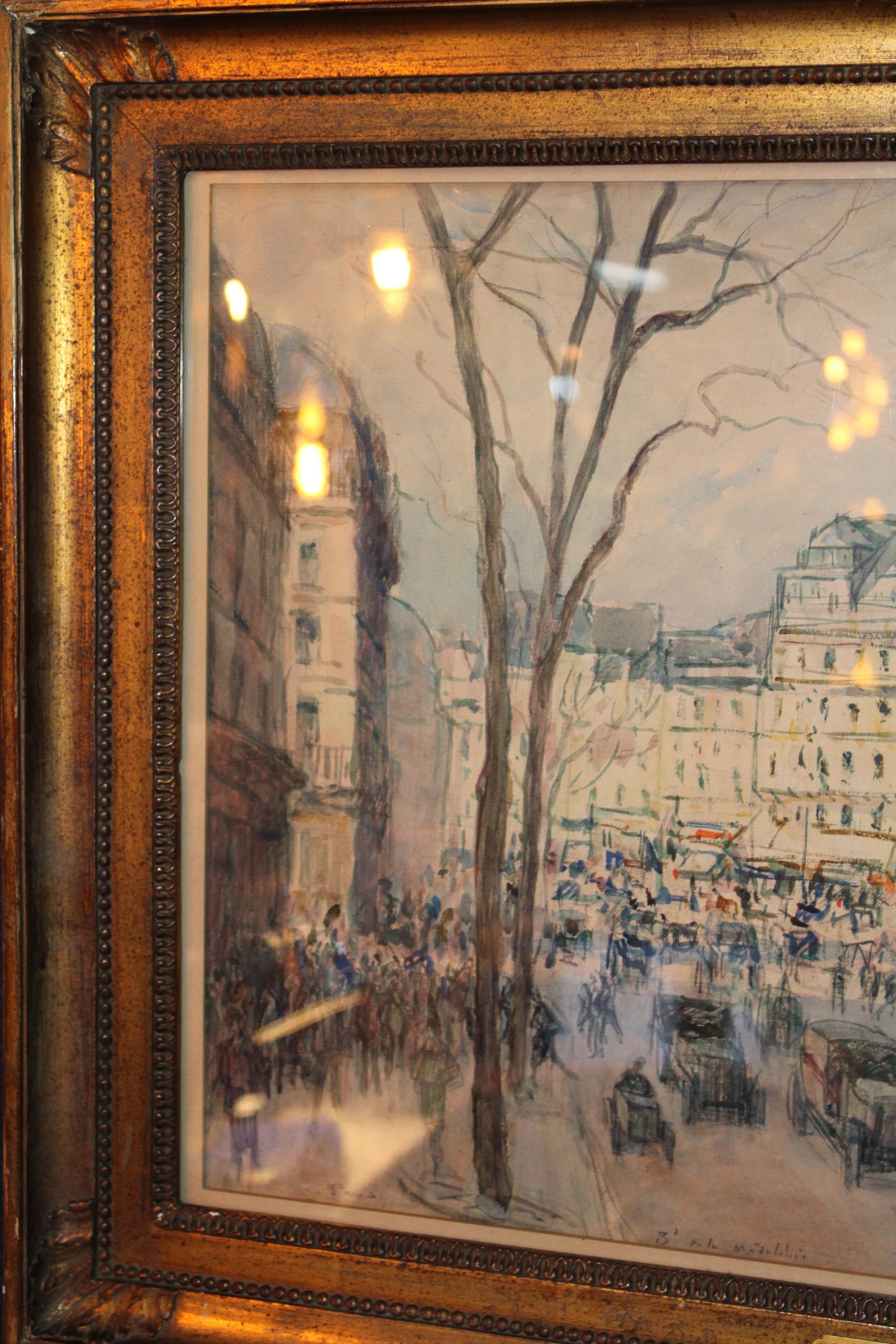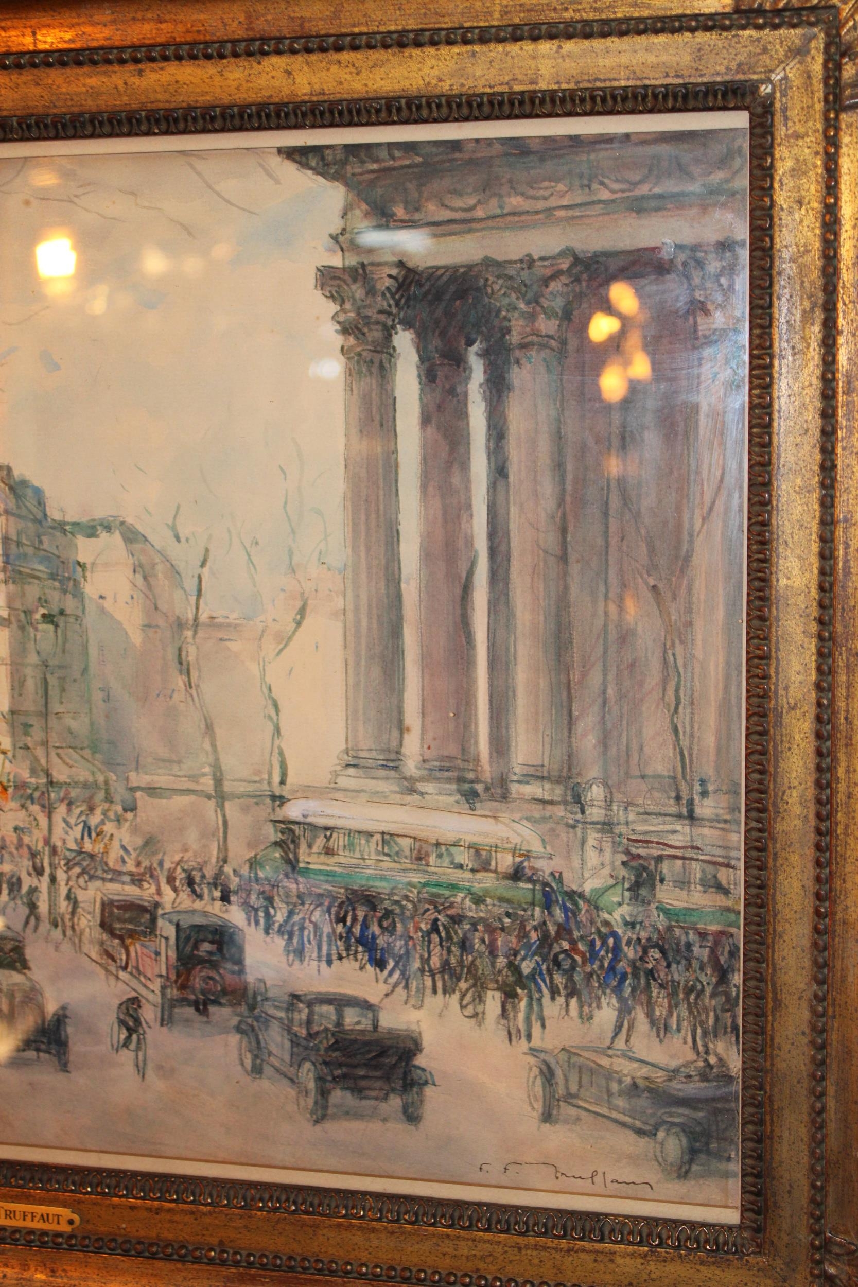 Fernand-Fortuné TRUFFAUT (1866-1955) Watercolour on paper, signed, titled 'Boulevard de la Madeleine' Paris, early 20th century study depicting motorcars and people in the city. In original exhibition frame with plaque 'F. TRUFFAUT'. 37cm x 52cm.