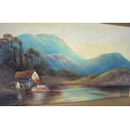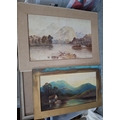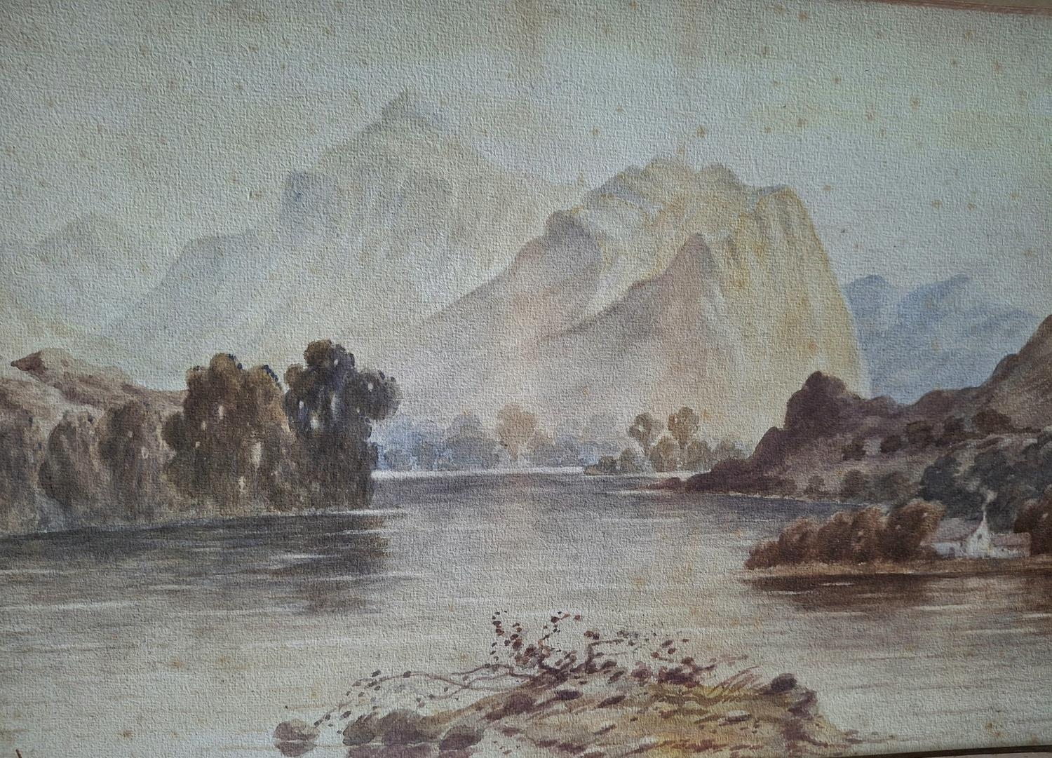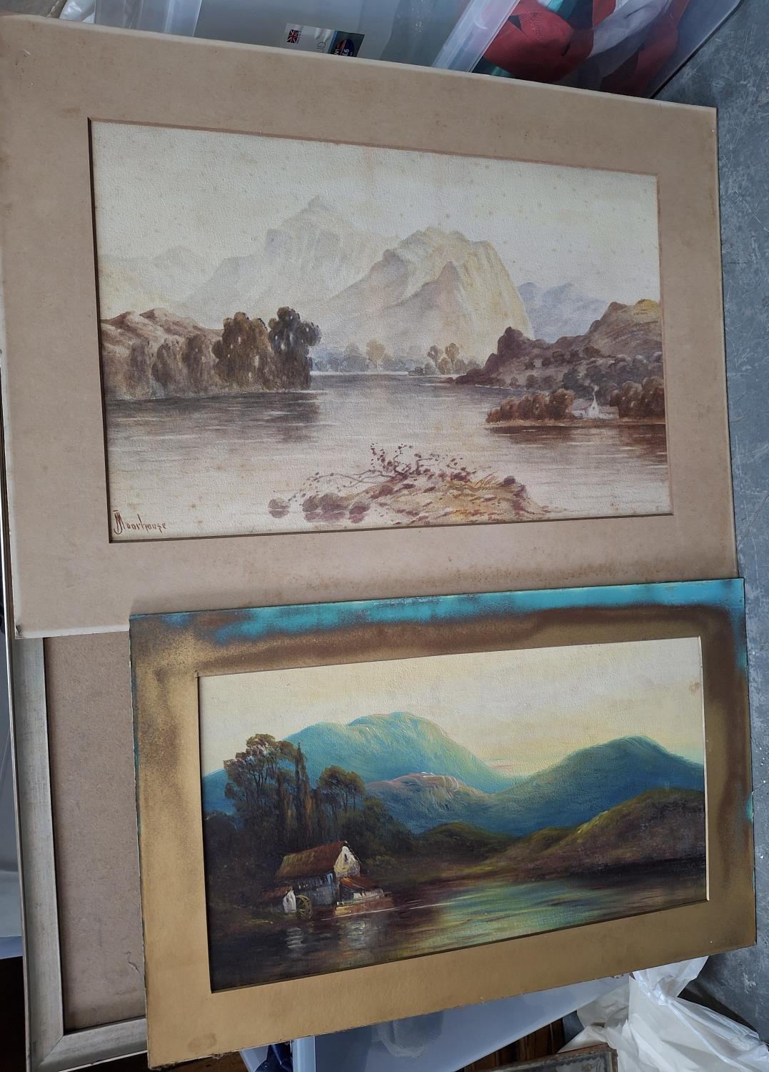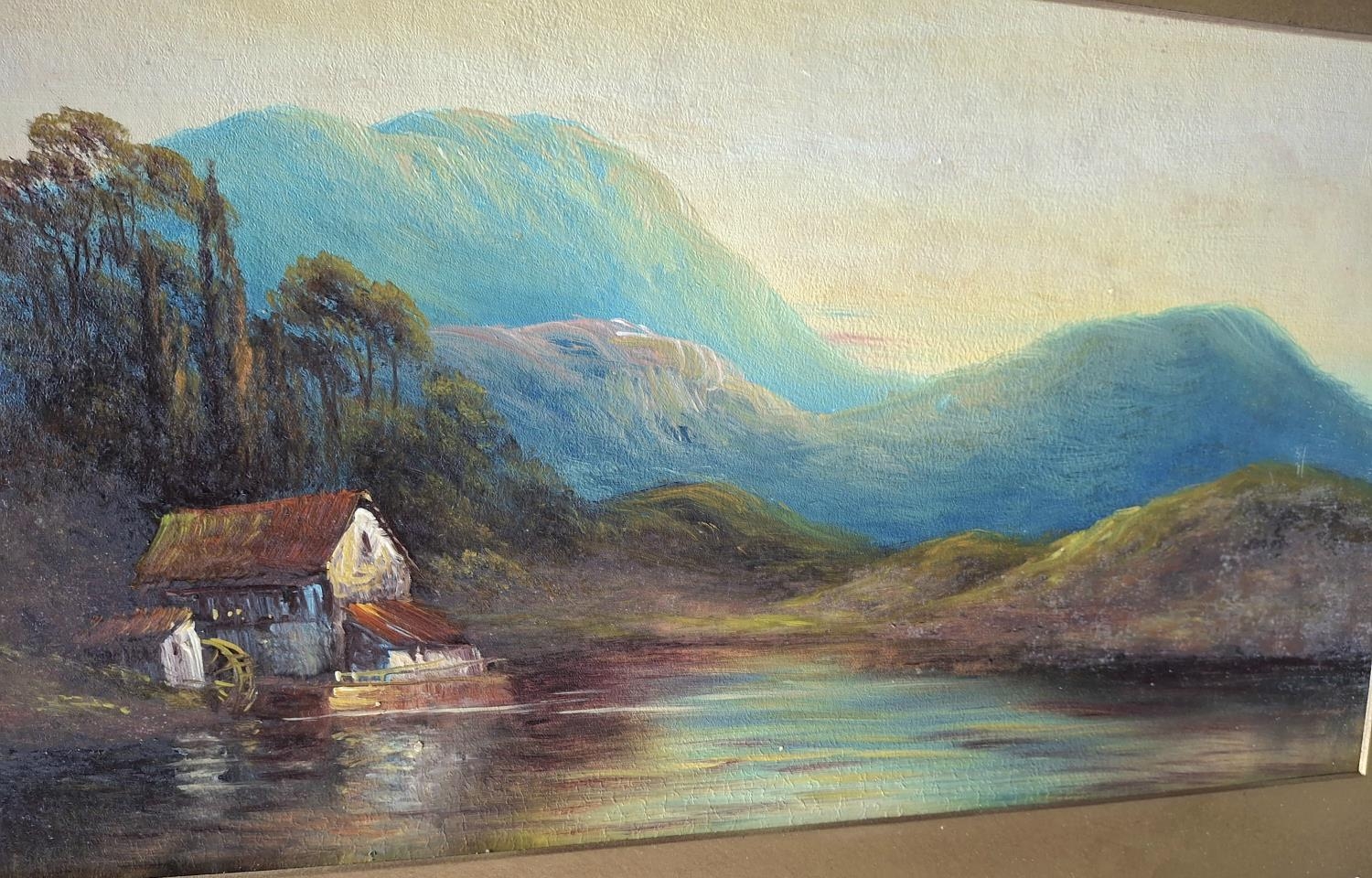 Early unsigned oil on card landscape together with a J Moorhouse c1920 watercolour depicting a Scottish Loch scene (2) both unframed