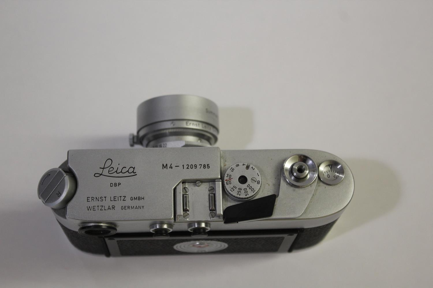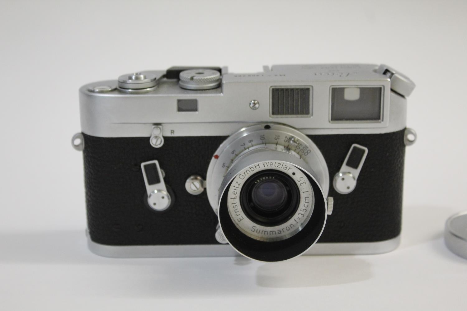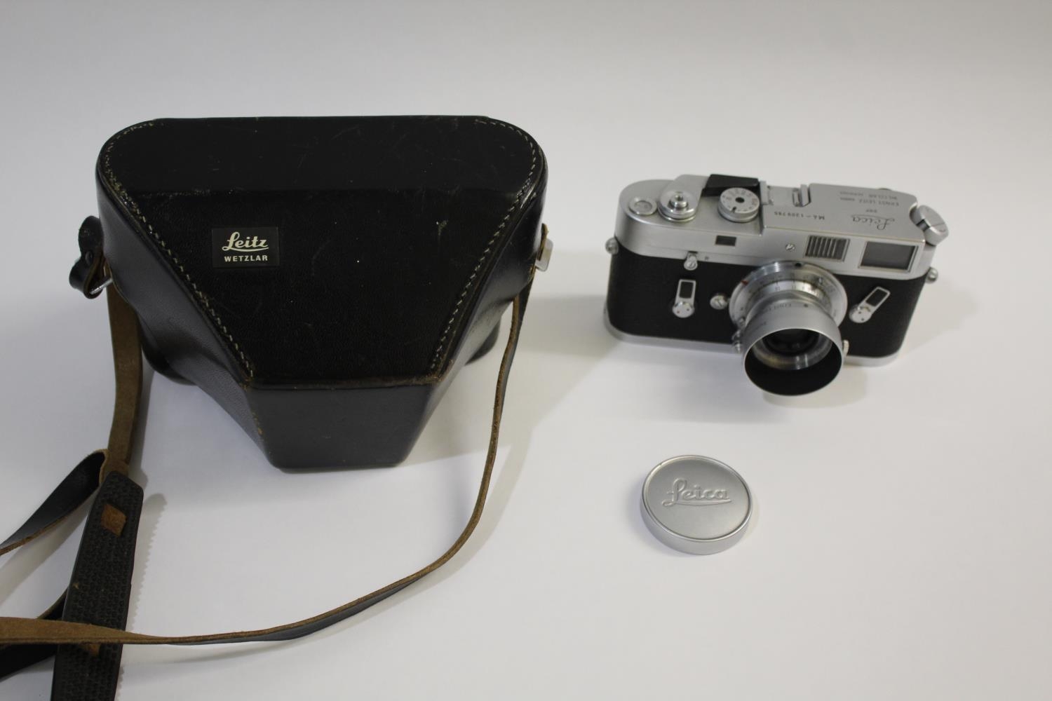 LEICA M4 RANGEFINDER CAMERA & LENS a Leica M4 camera, Serial No 1209785 (1968-1969), with a Leitz GMBH Wetzlar Summaron f:3.5cm, 1:35 lens. With a Leica lens cap, and Leitz black leather case.