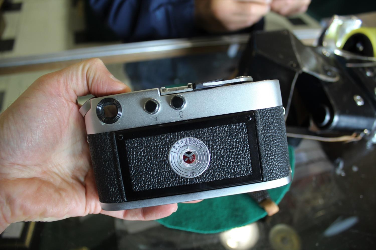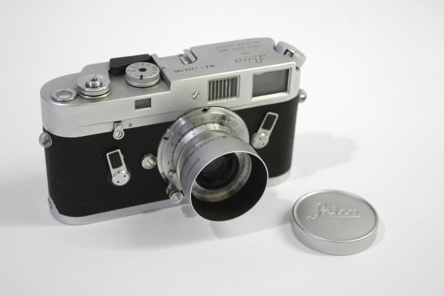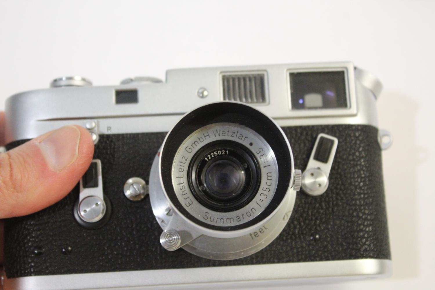 LEICA M4 RANGEFINDER CAMERA & LENS a Leica M4 camera, Serial No 1209785 (1968-1969), with a Leitz GMBH Wetzlar Summaron f:3.5cm, 1:35 lens. With a Leica lens cap, and Leitz black leather case.