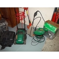 A QUALCAST MOWER, FLYMO STRIMMER AND A PRESSURE WASHER