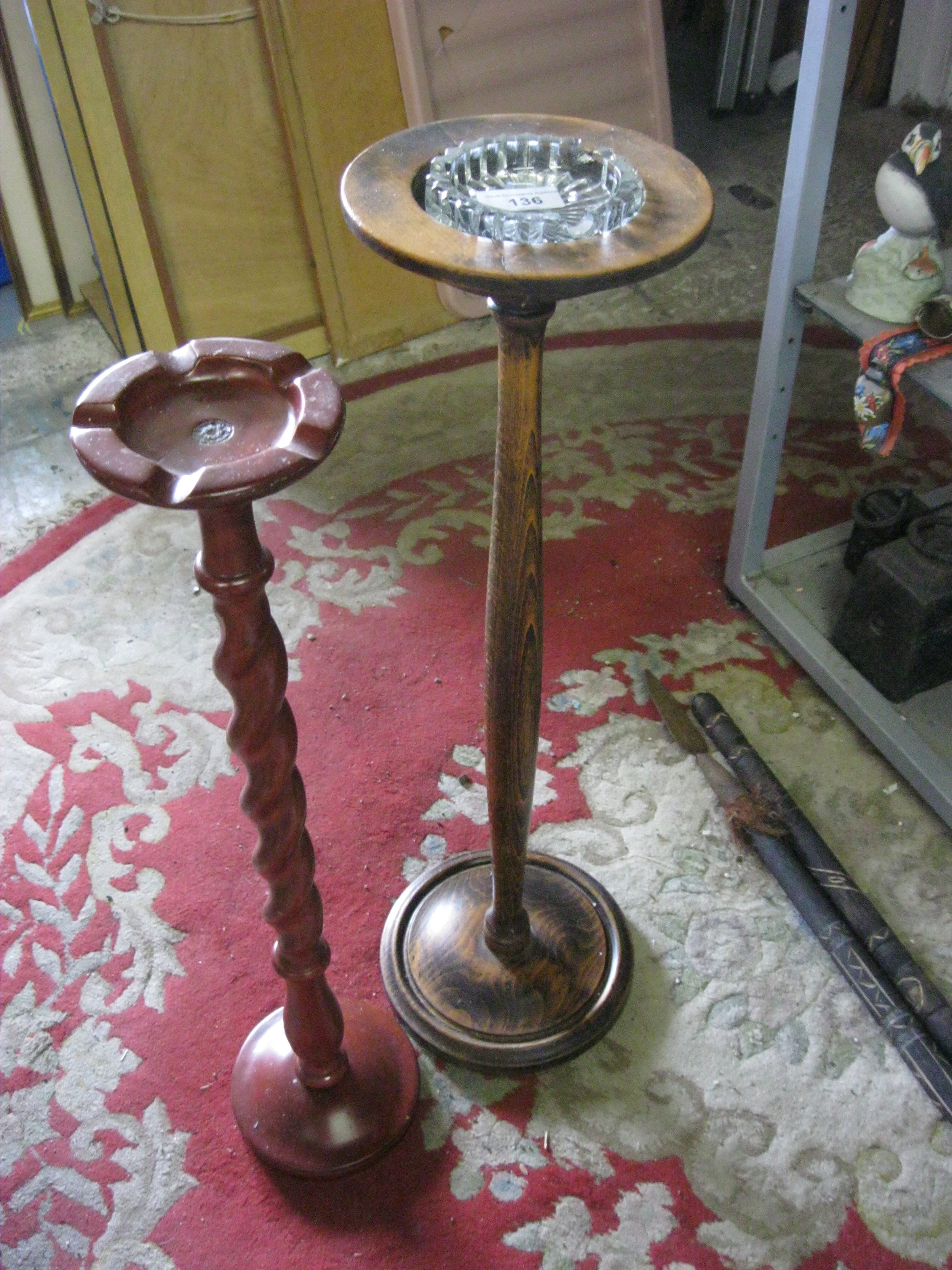 A pair of wooden floor-standing ashtrays