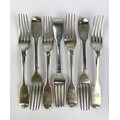 A matched set of seven fiddle patten table forks, London 1845 and 1853, 11.25 ozs combined.