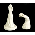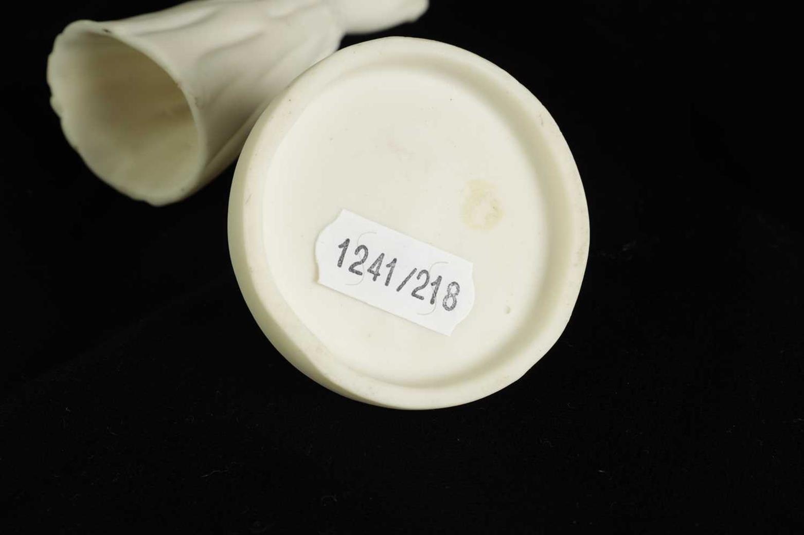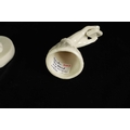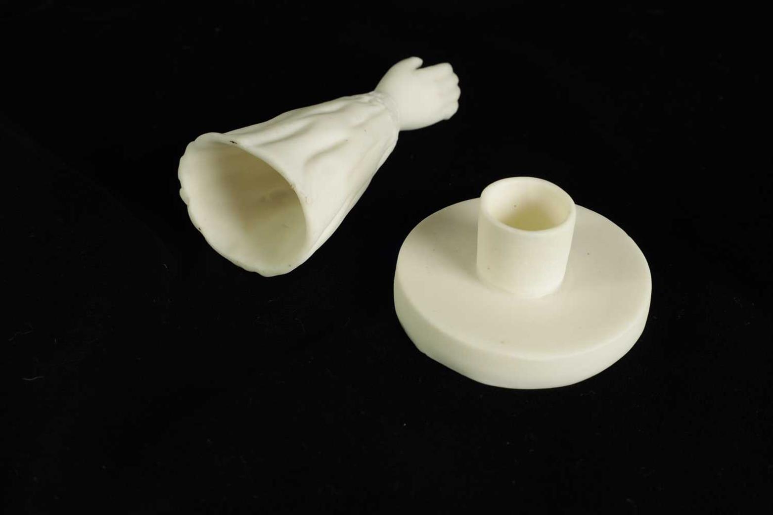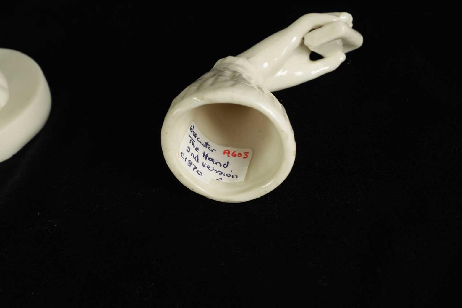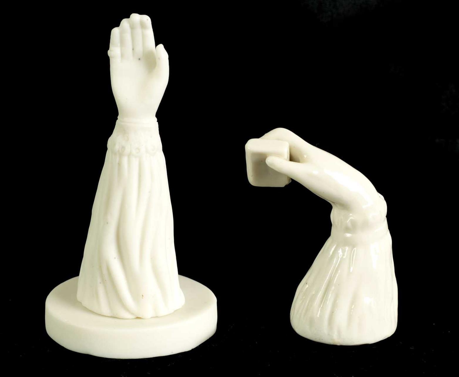 TWO KERR & BINNS PORCELAIN CANDLE EXTINGUISHERS circa 1860 and 1870, The Hand and The Hand on Base (2) - illustrated on pages 14 and 15 of Distinguished Extinguishers by Tony Horsley (10cm high )