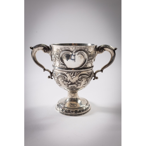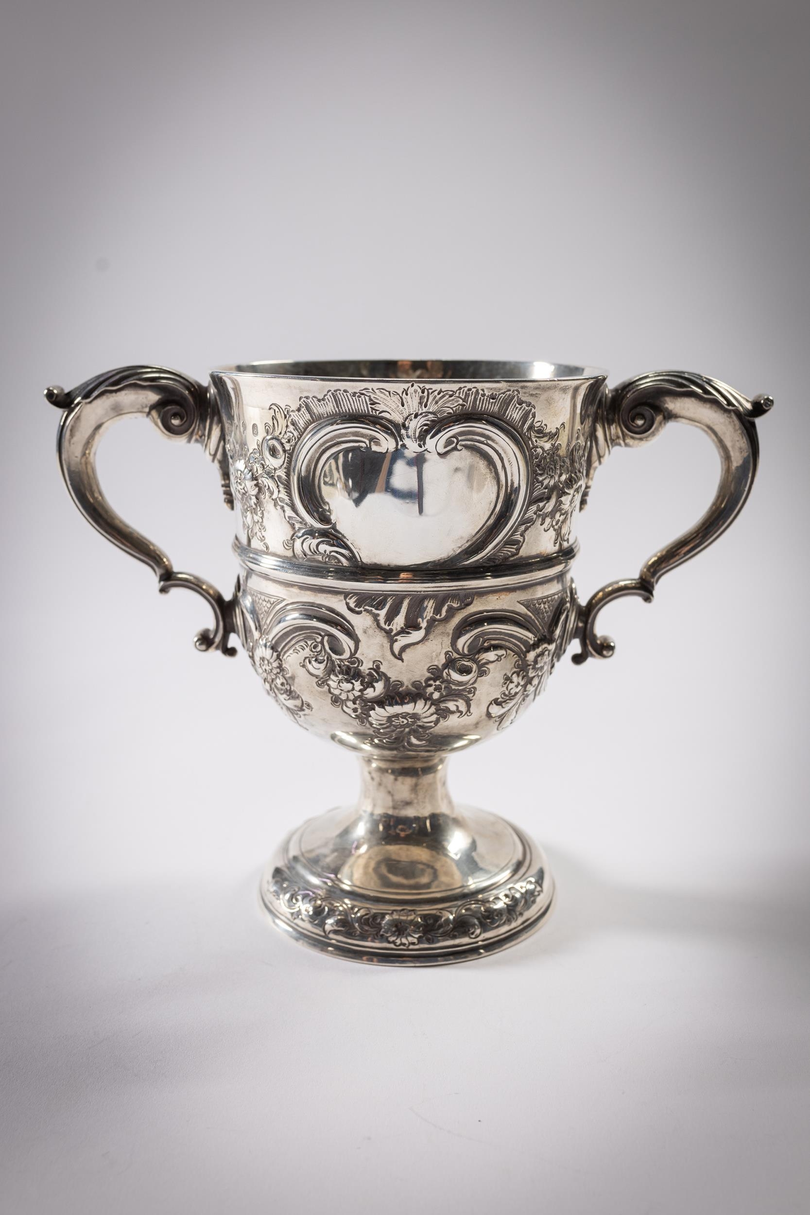 AN IRISH SILVER TROPHY CUP by Matthew West, Dublin, late 18th century (probably 1778), 22 cm (h). 38.77 ozt.