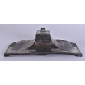 AN EDWARDIAN WMF PRESENTATION PEWTER INKWELL. 32 cm wide.