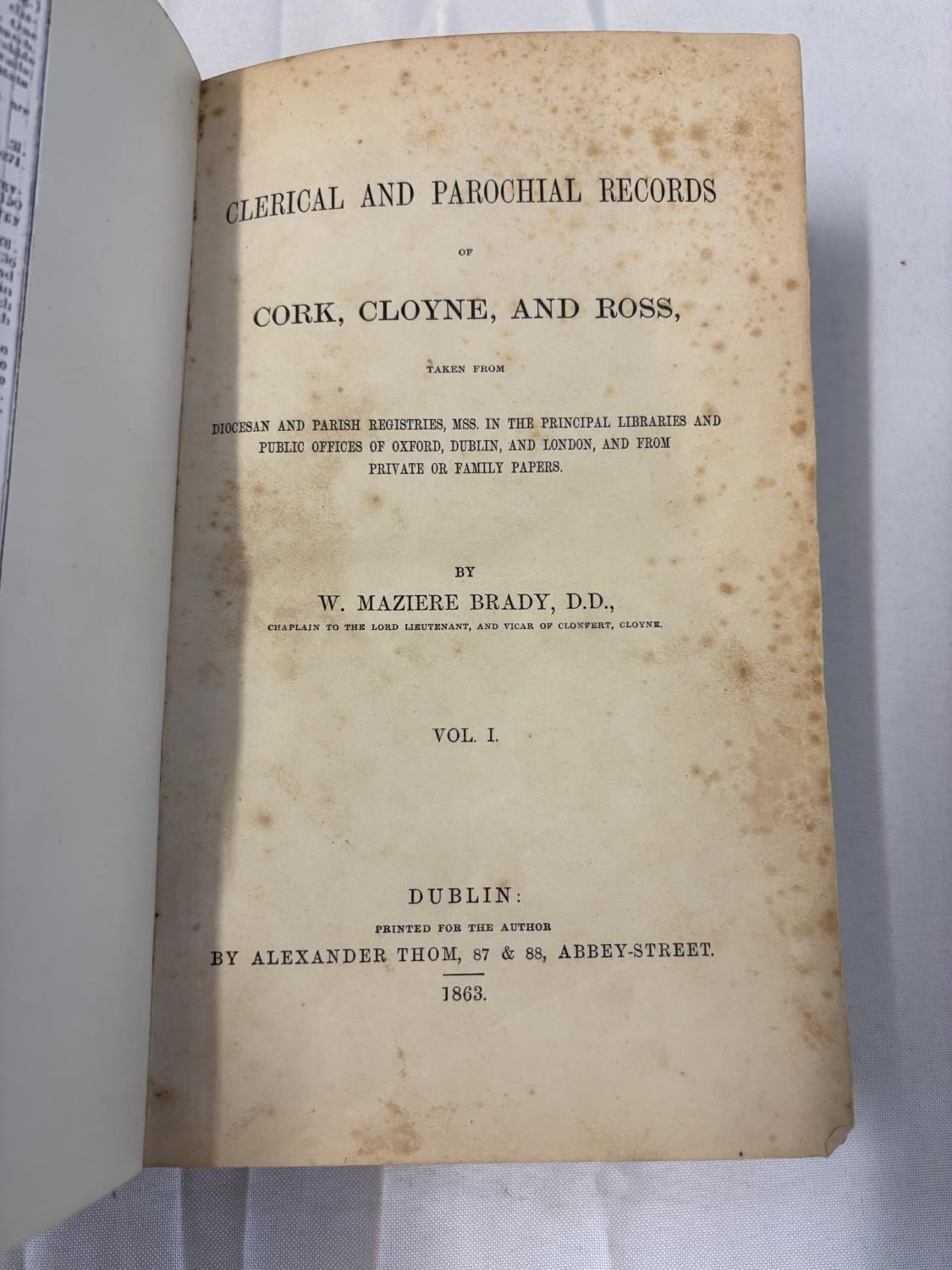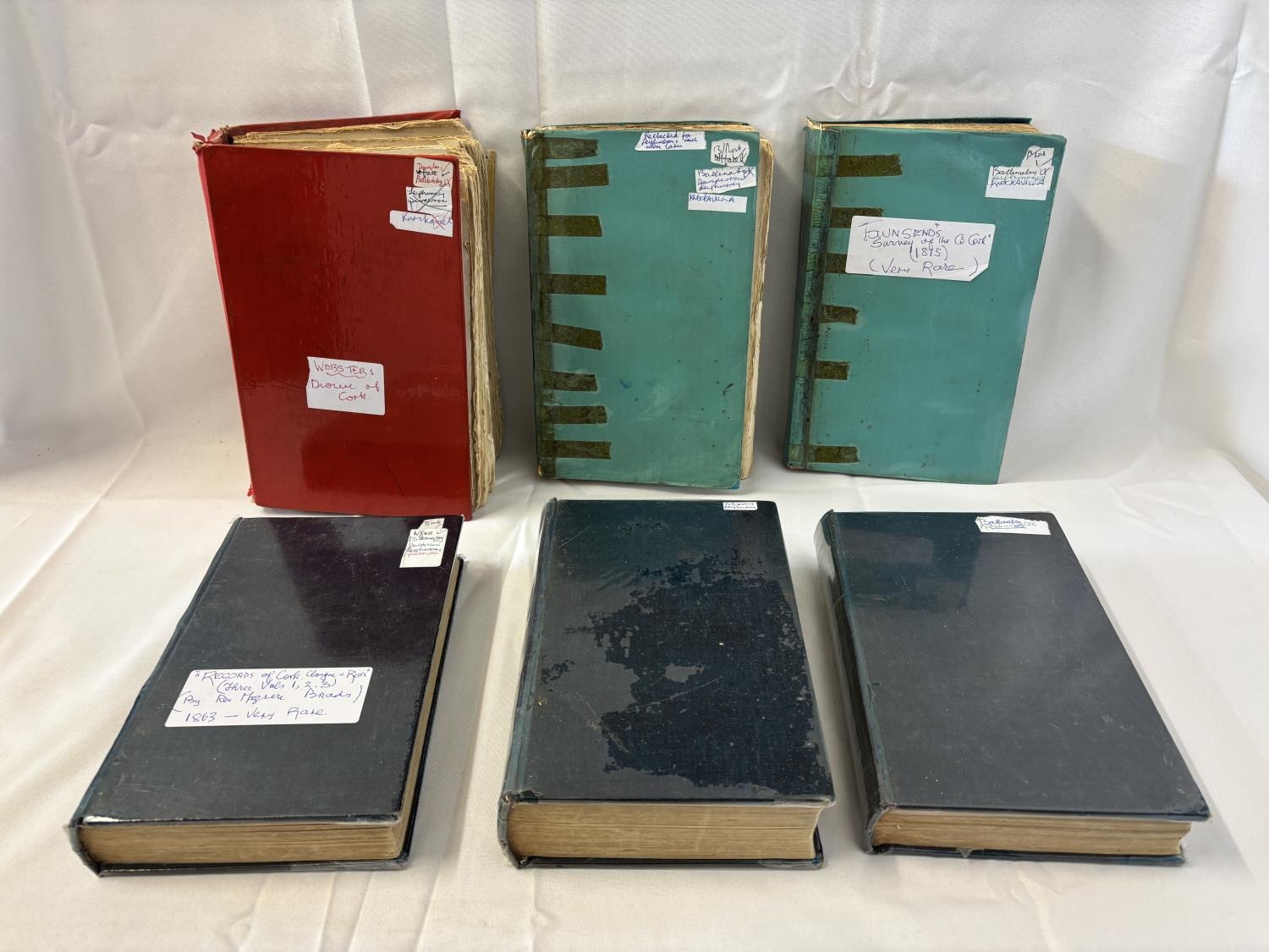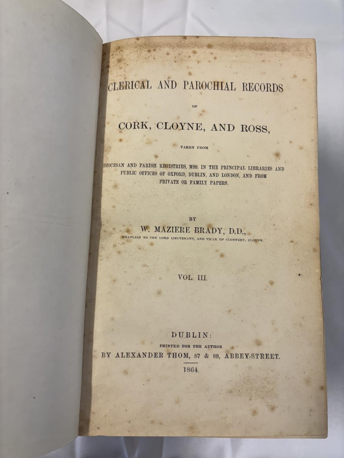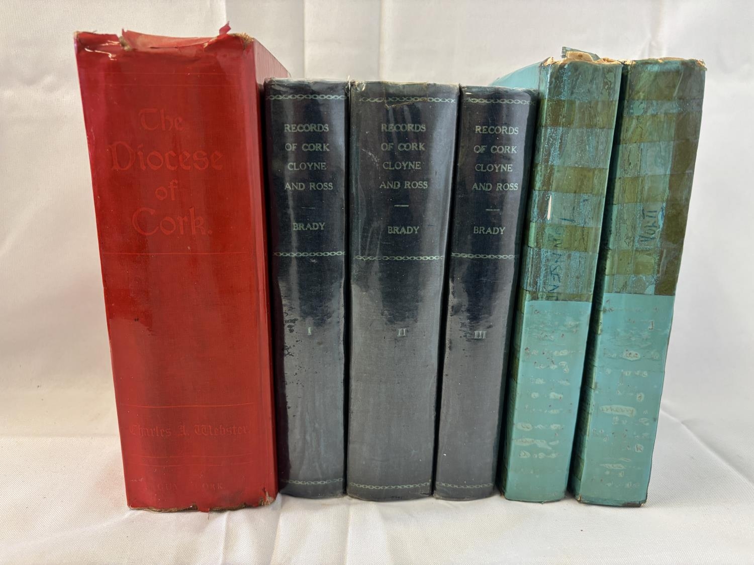 Records of Cork, Cloyne and Ross, Vols. I, II & III by W. Maziere Brady, Dublin 1864; Towns and Survey of County Cork, Vols. I & II, 1815; Websters Diocese of Cork. (6)