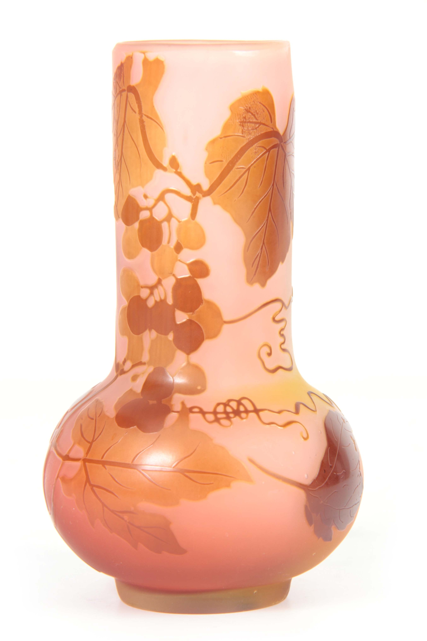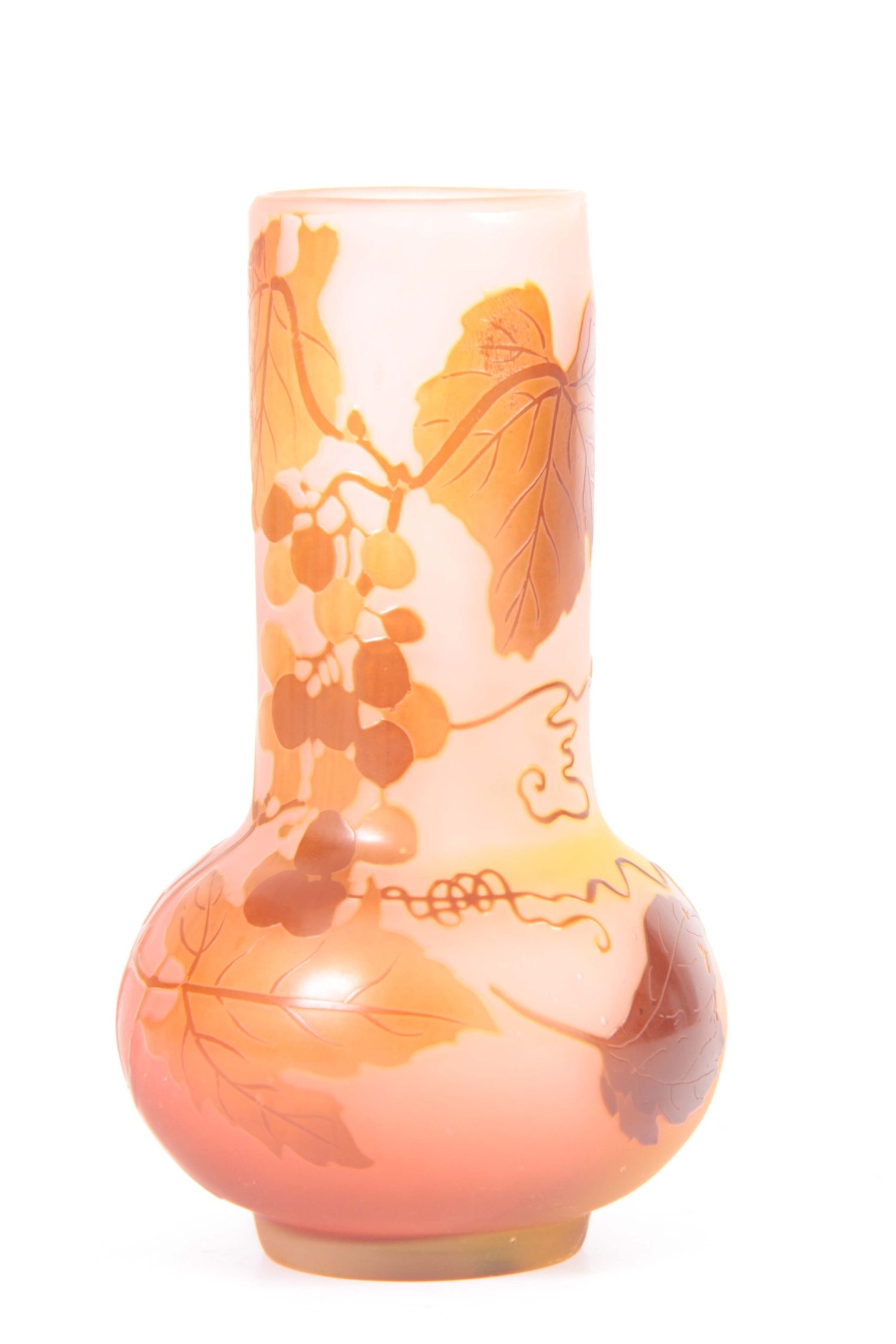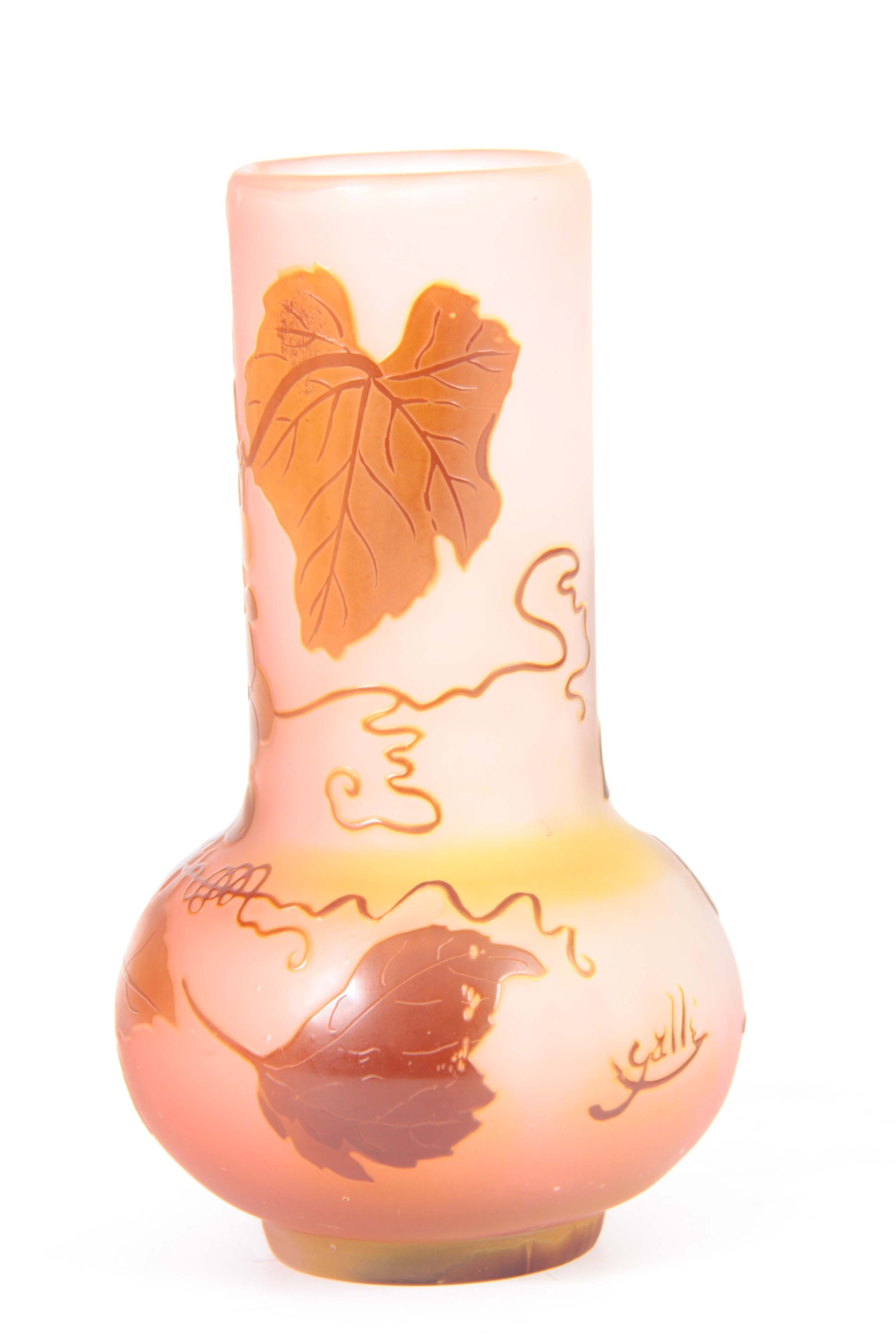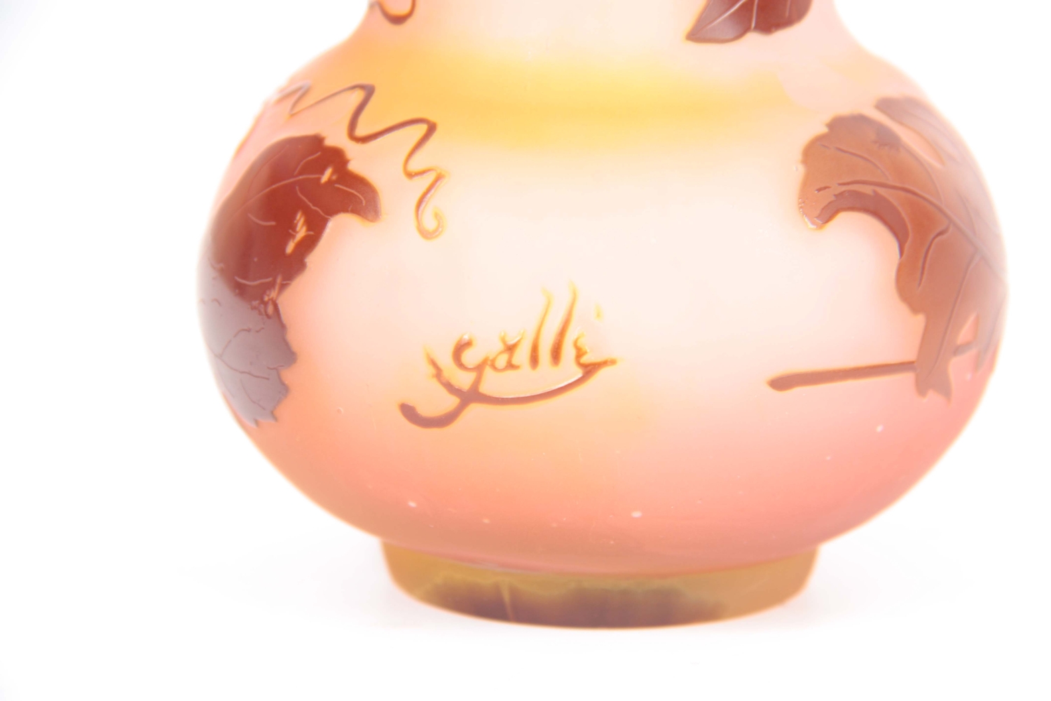 GALLE. AN EARLY 20th CENTURY GLASS VASE with overlay depicting leaves and berries and raised signature 15.5cm high