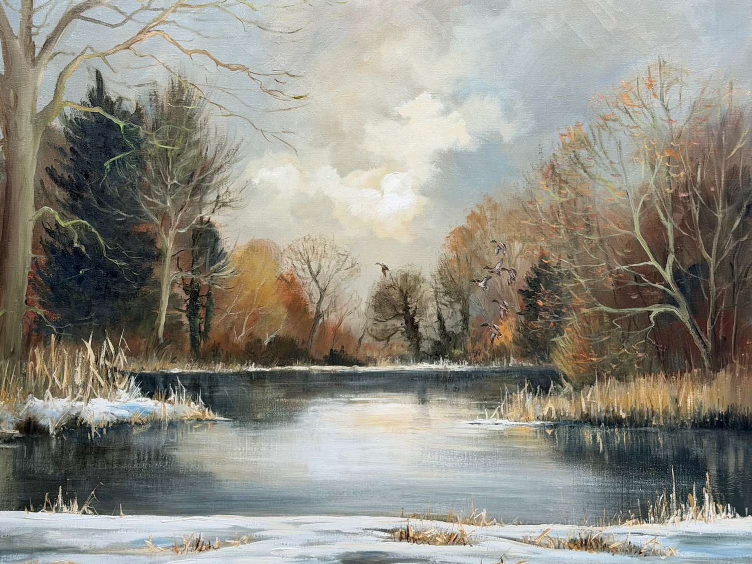 Original Shirley Carnt 'Winters Day Kelling' Oil on Canvas signed bottom left c1985 (Framed 31" x 27")