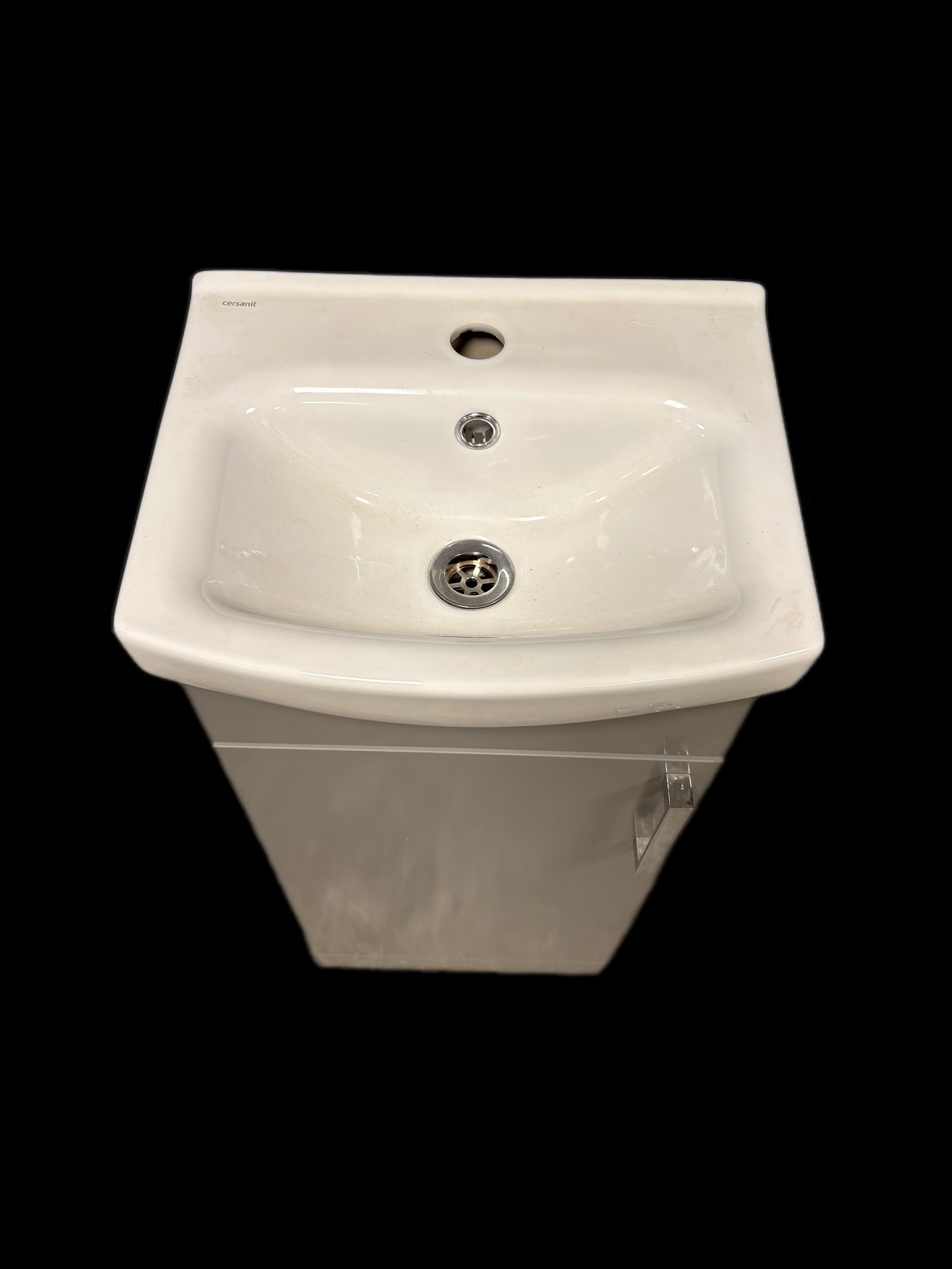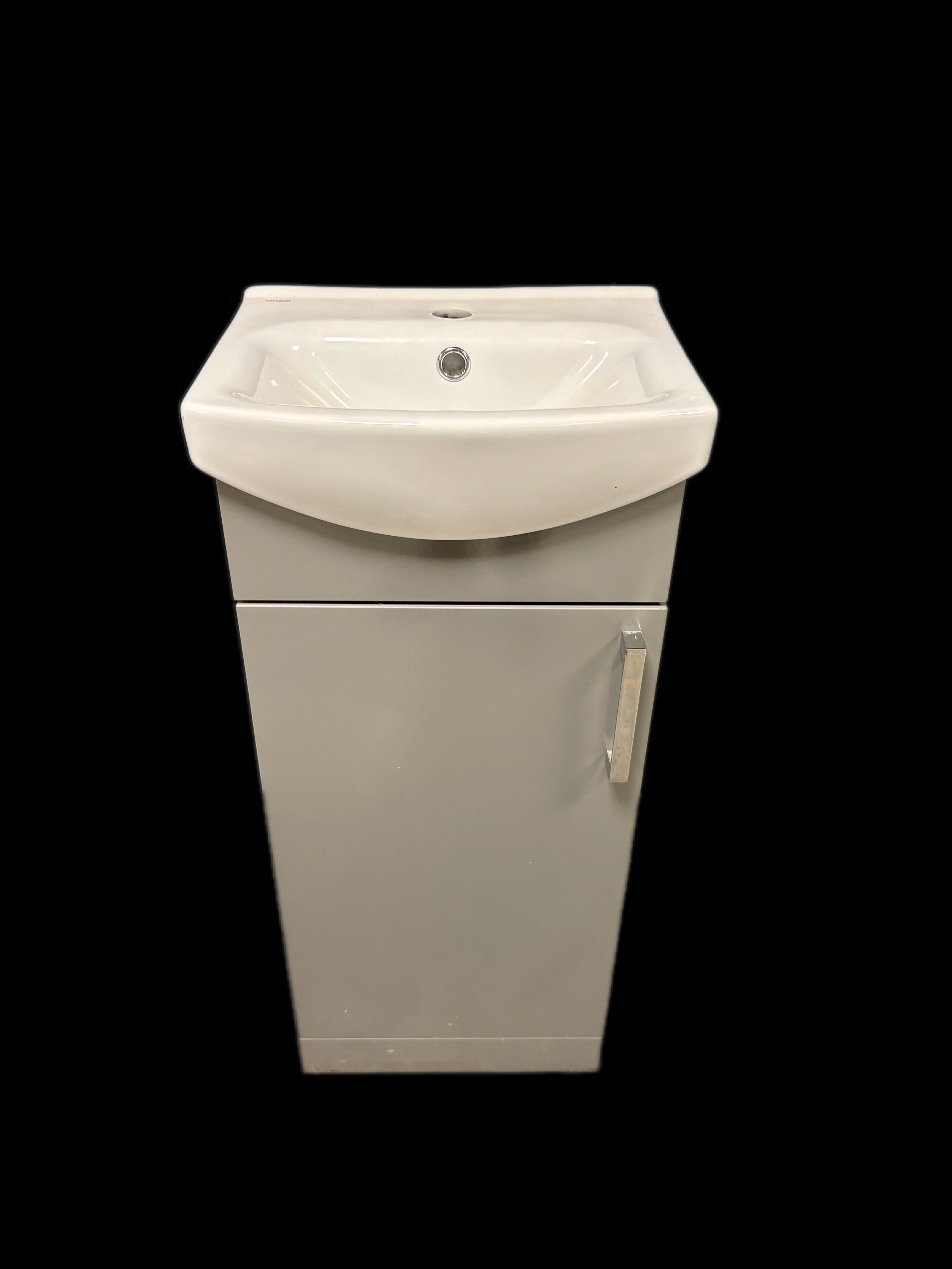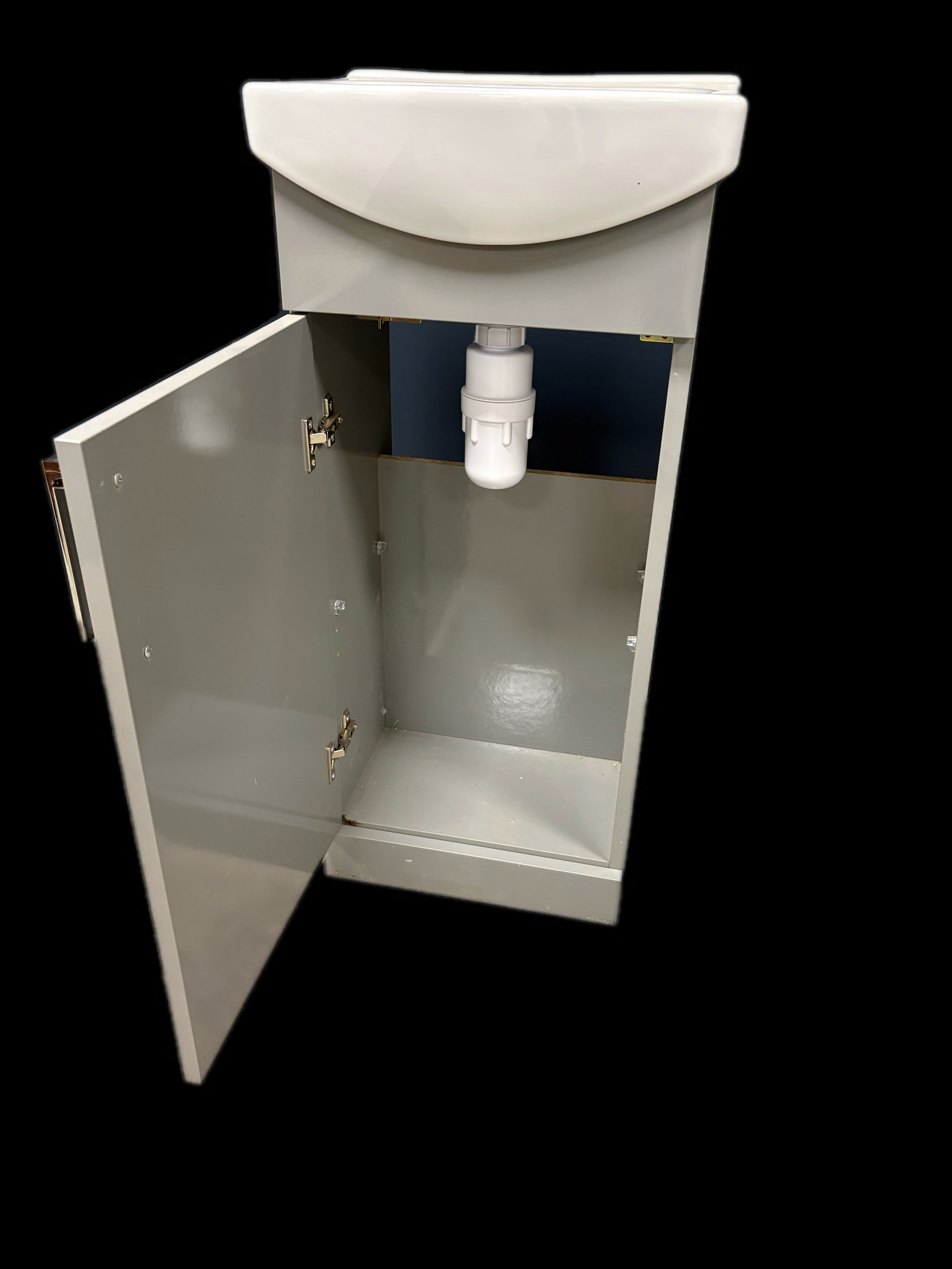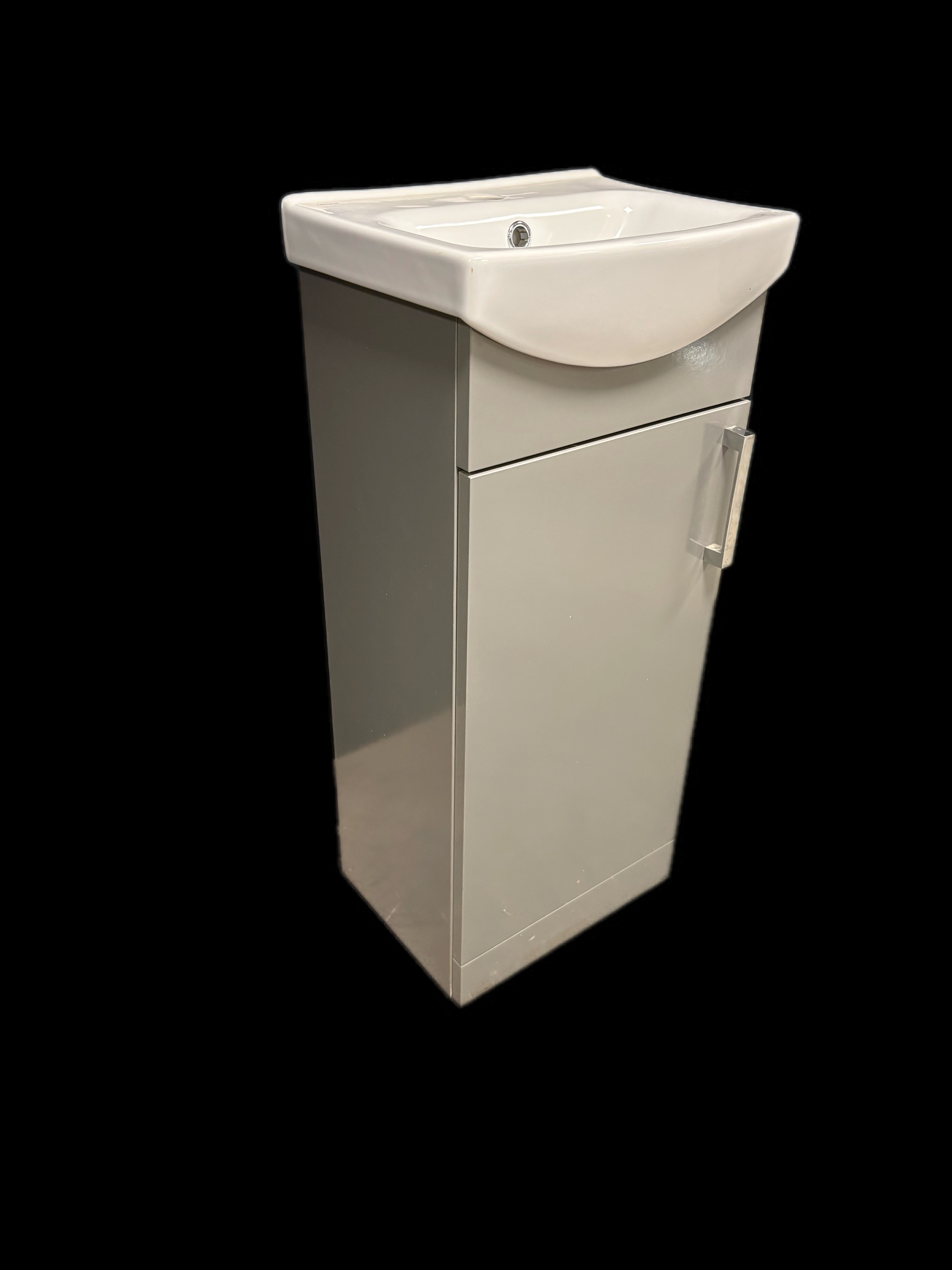 New unused cloak room vanity sink and cupboardGrey