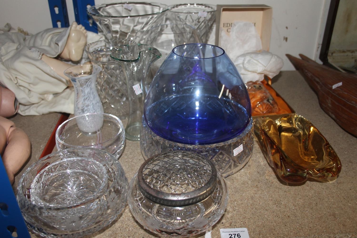 Glassware to include vases, Edinburgh Crystal jar, art glass, etc.