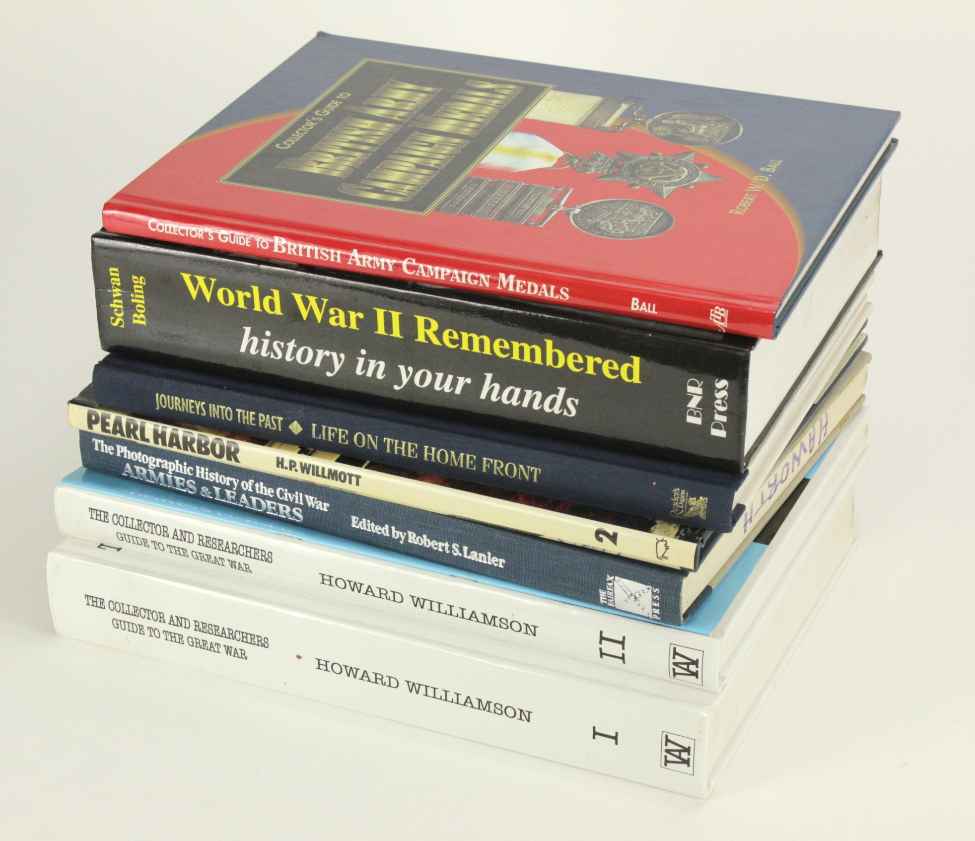 Books - mostly hardback - noted 'The Collector and Researchers Guide to the Great War' Vols 1 & II. (8)