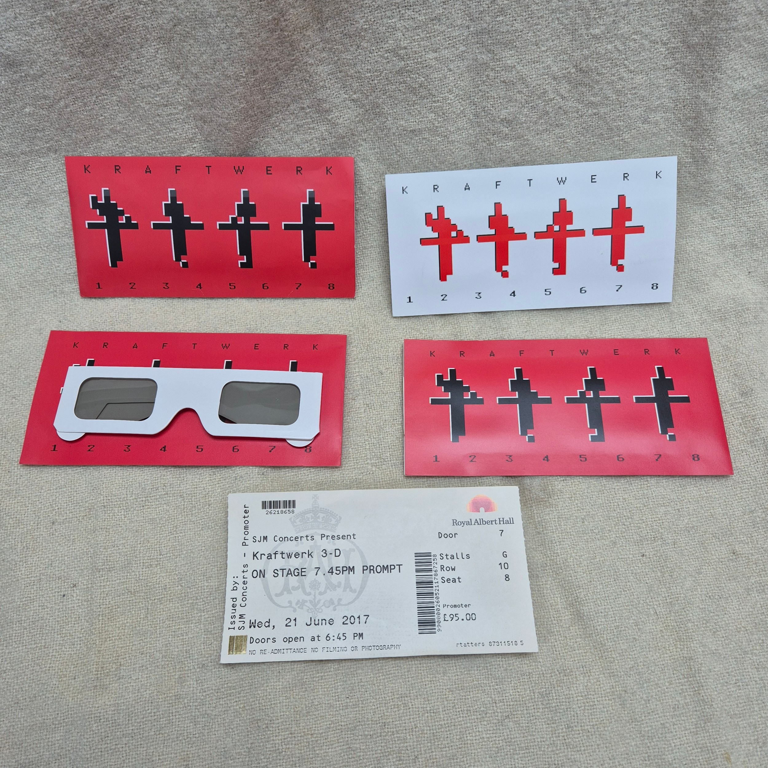 Kraftwerk - Four Sets of 3D Glasses from the Kraftwerk 3-D Concert at the Royal Albert Hall on 21st June 2017 together with a Promoter Ticket