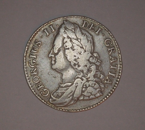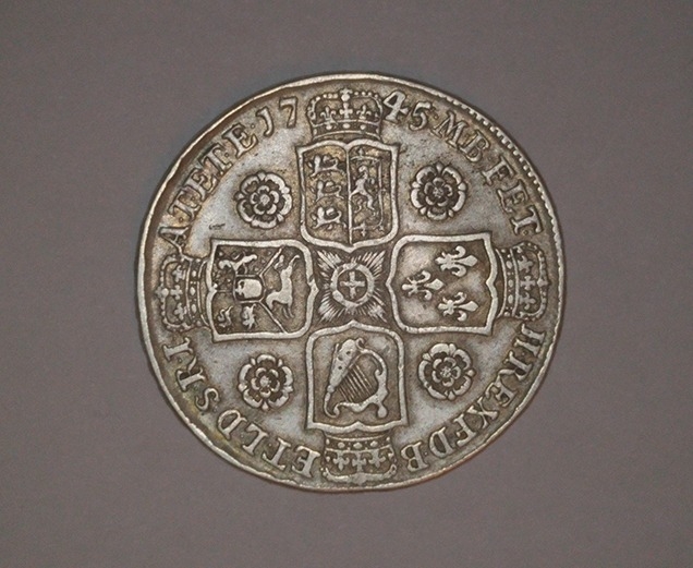 Halfcrown 1745/3 D.Nono, roses in angles, S.3694, F/GF, ex-mount? (edge rubbed)