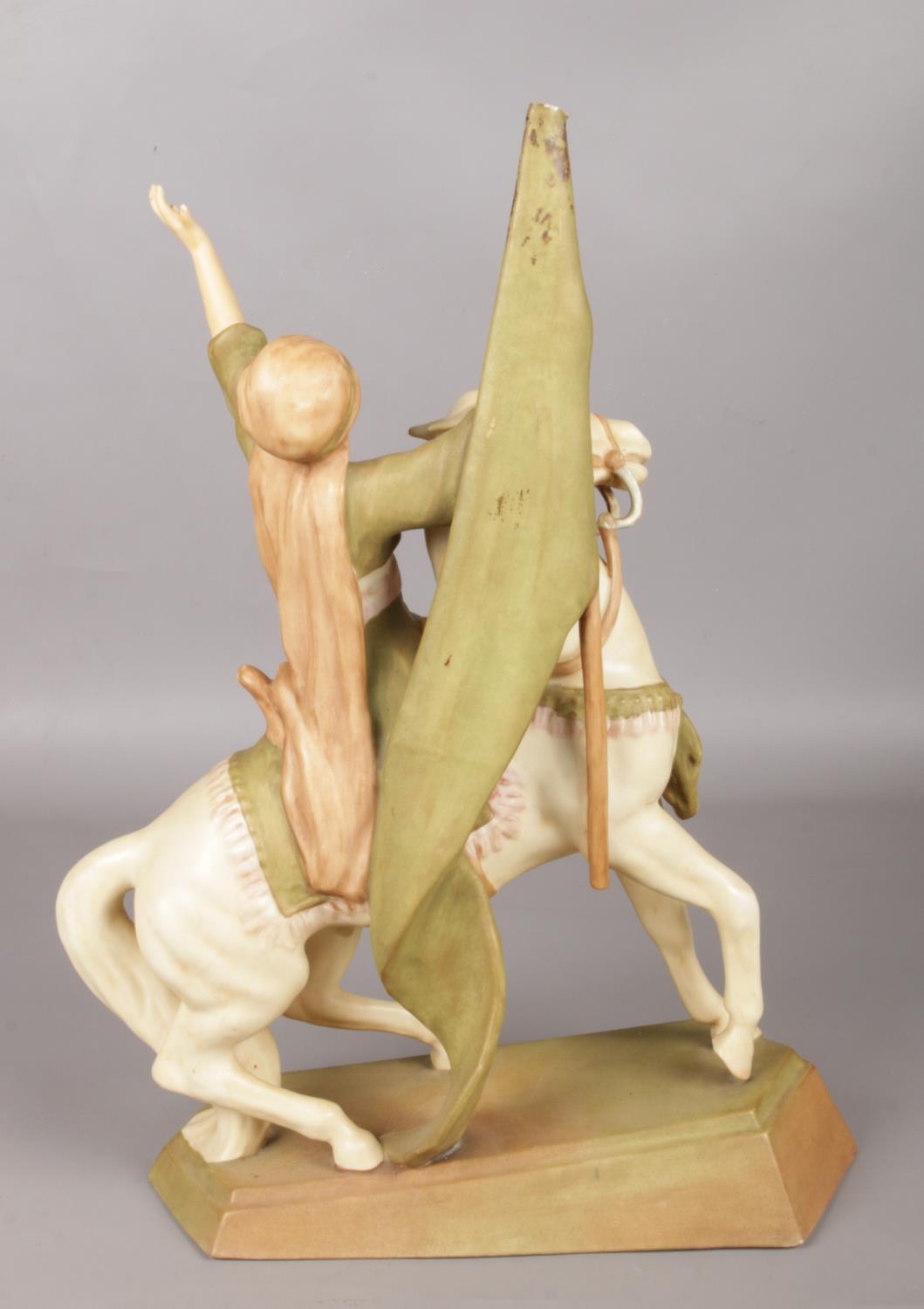 A Royal Dux figure modelled as a man carrying a flag on horseback. 45cm.