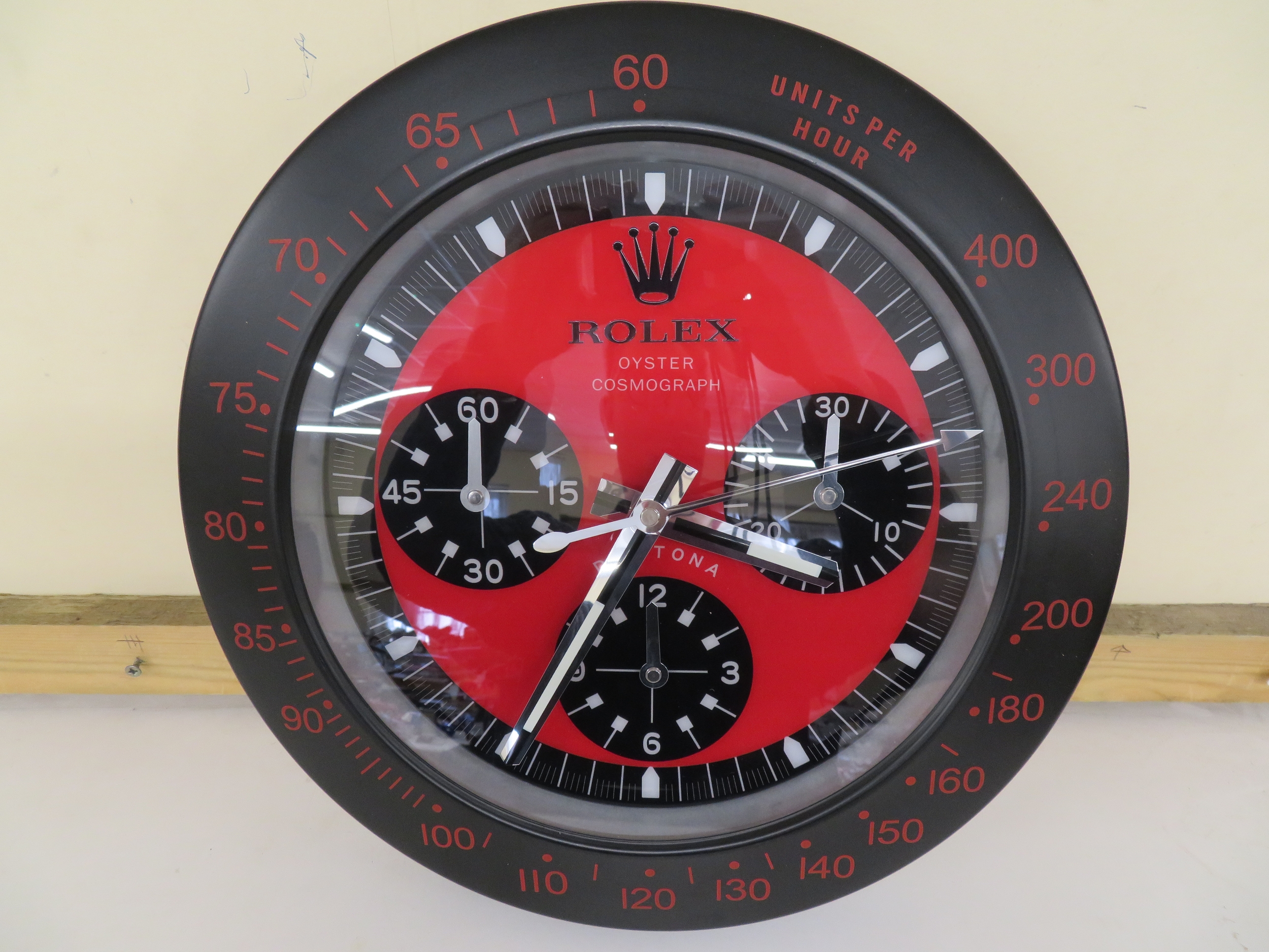 Wall clock in the form of a red and black dial Rolex Daytona