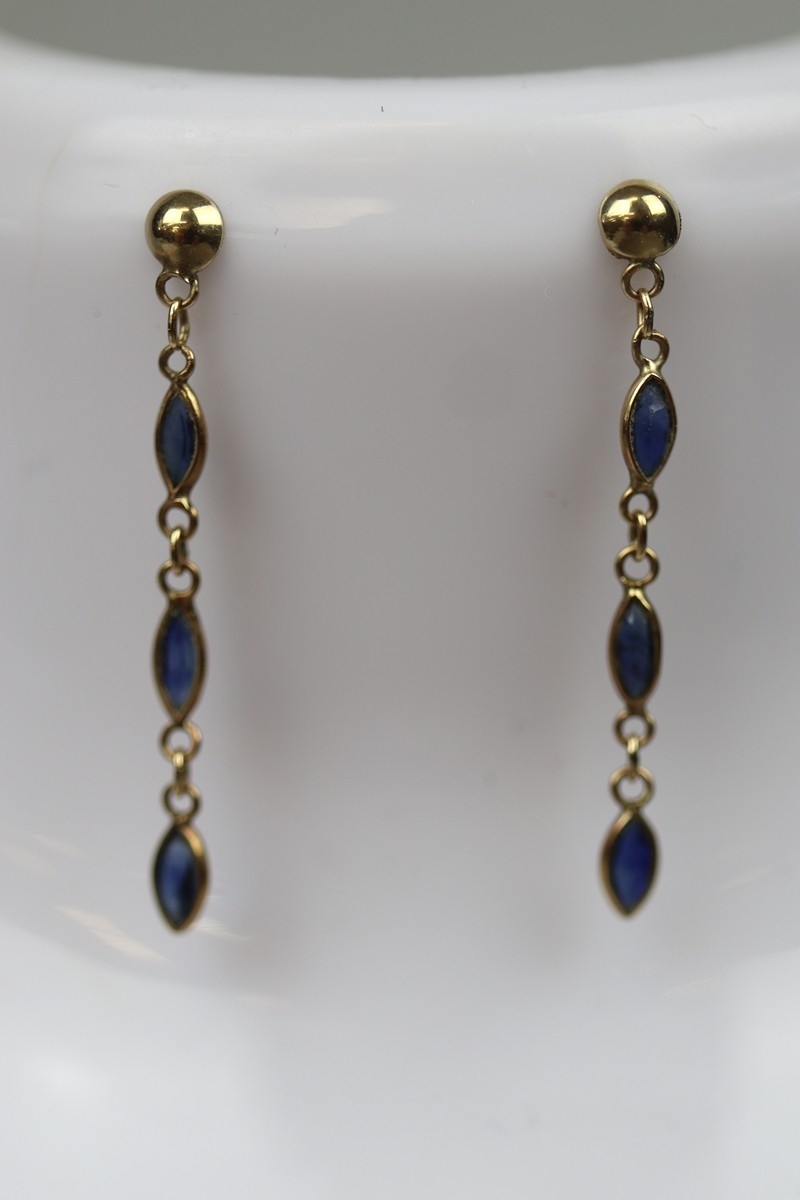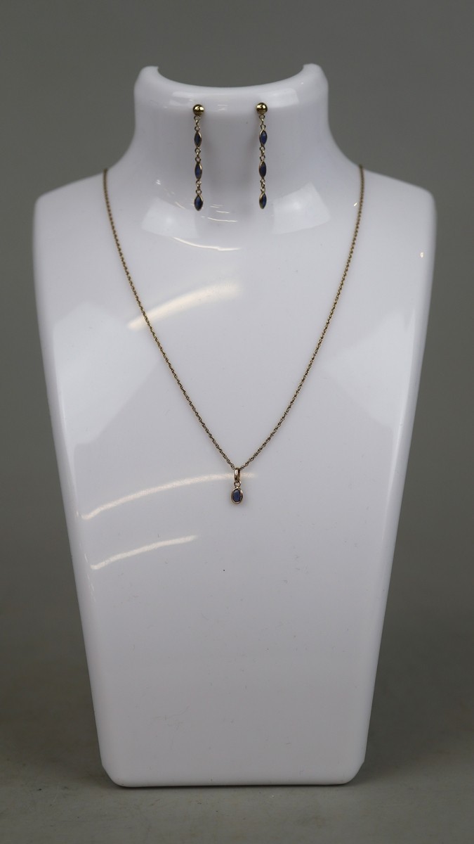 9ct gold matching drop earrings and pendant on chain set - Approx 1.8g