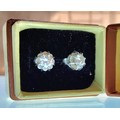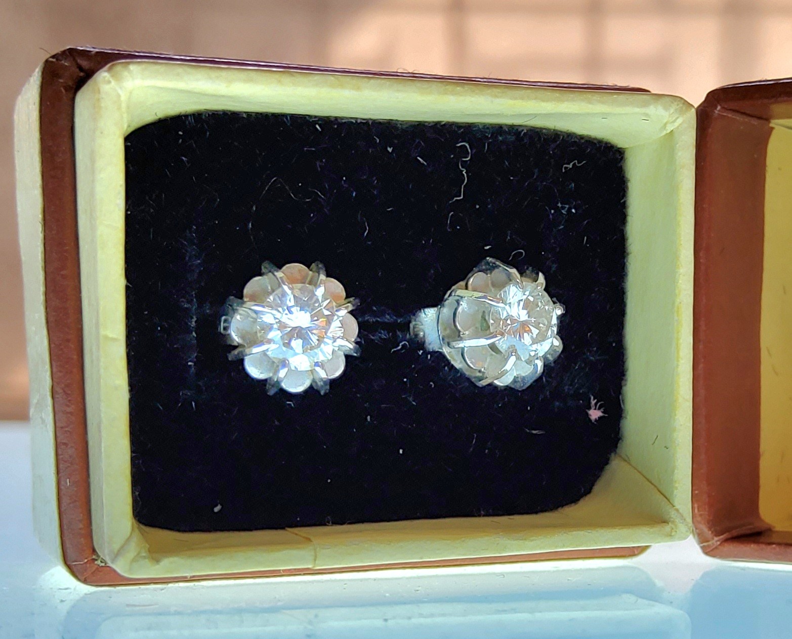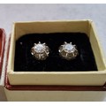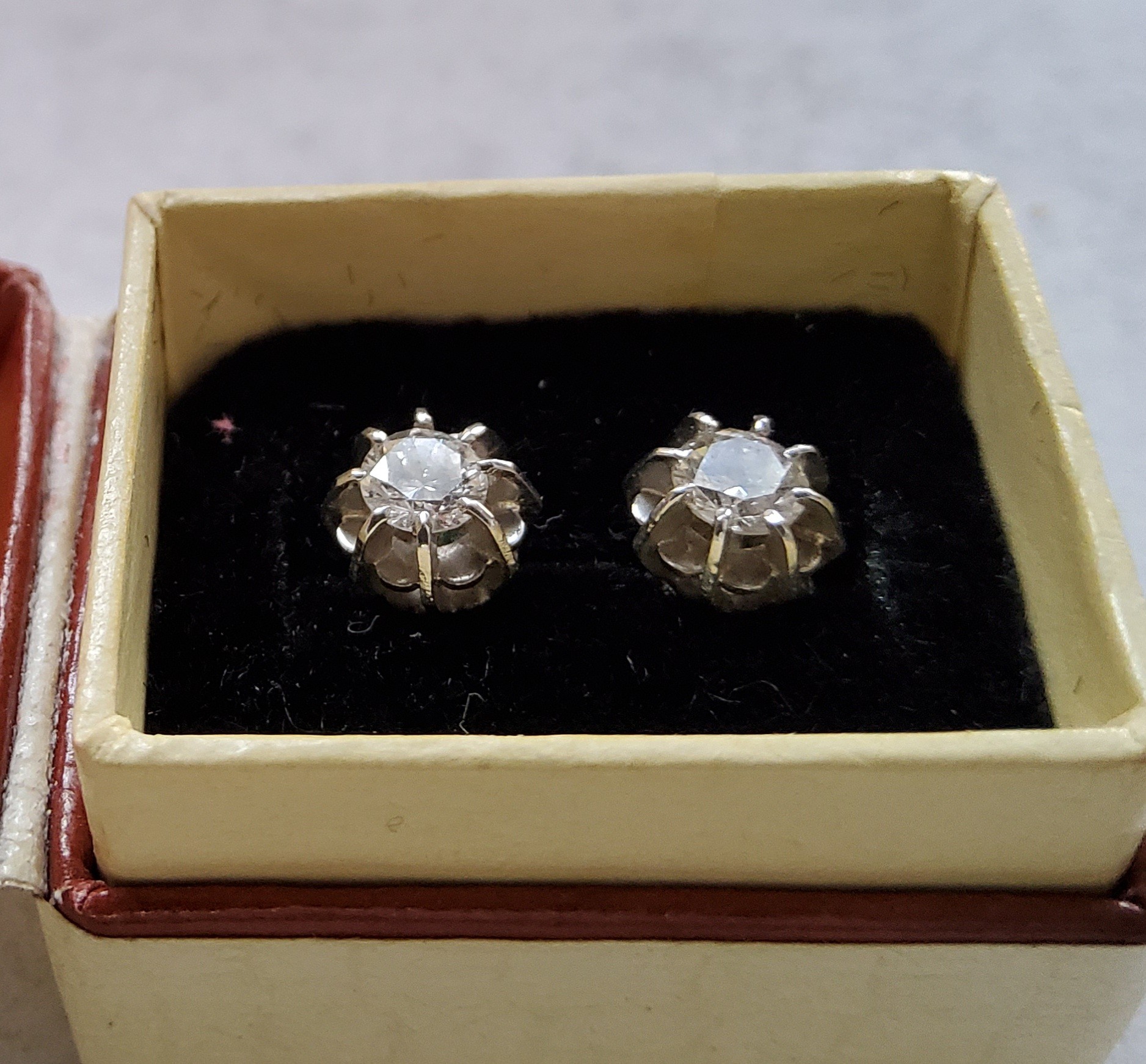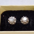 A pair of white metal diamond earrings each set with an approx. 0.25ct round diamond, backs stamped 9ct