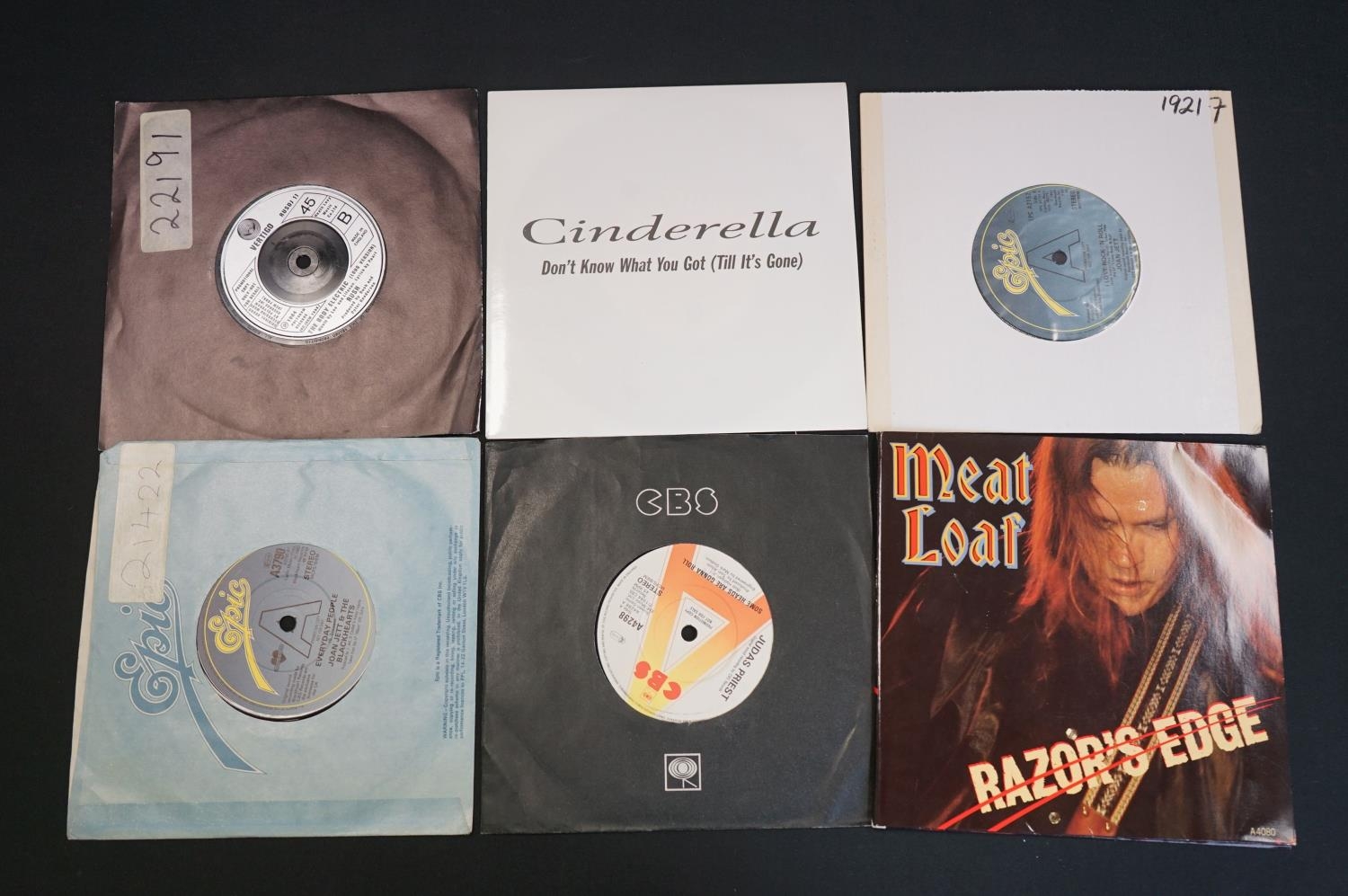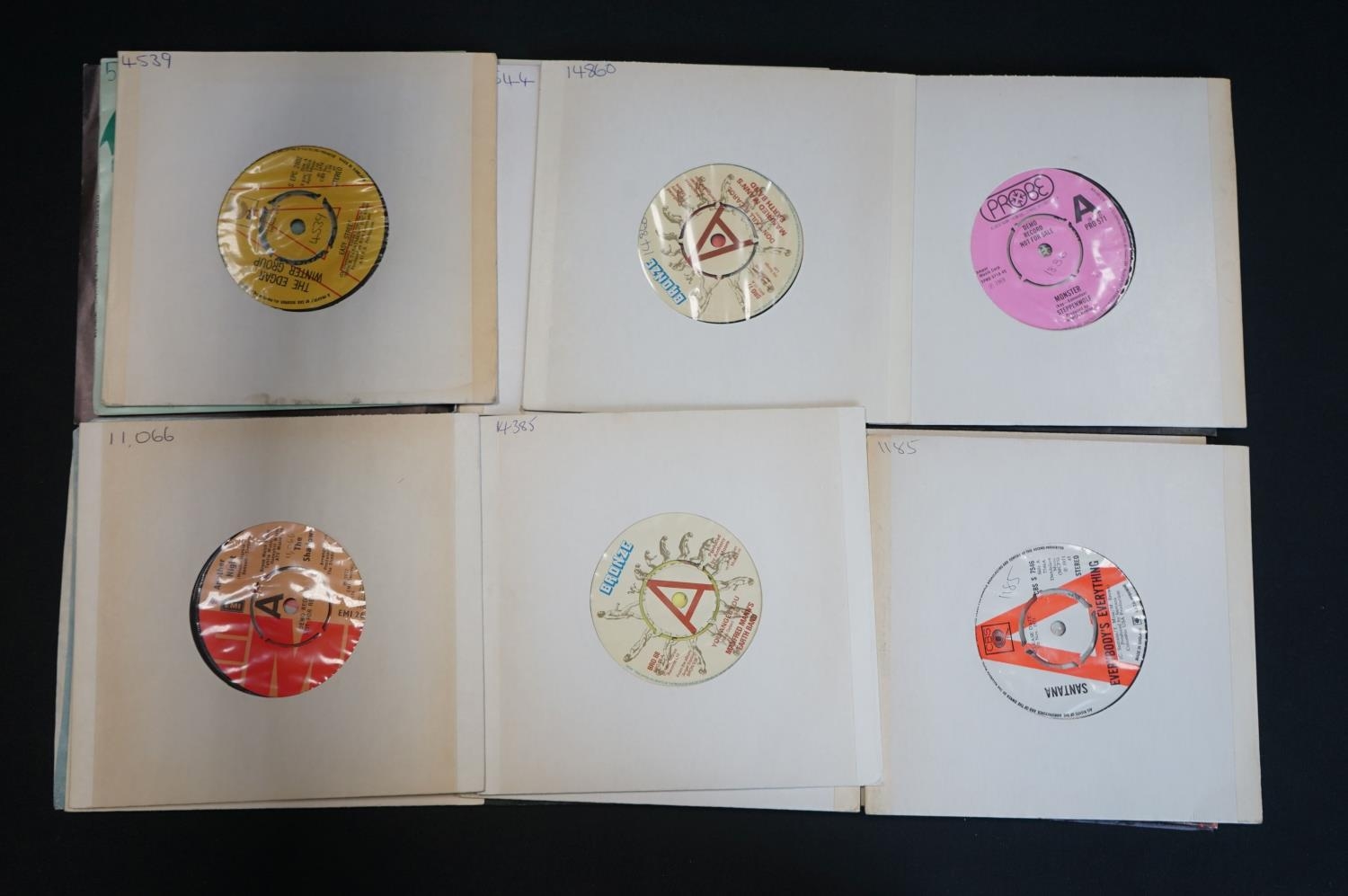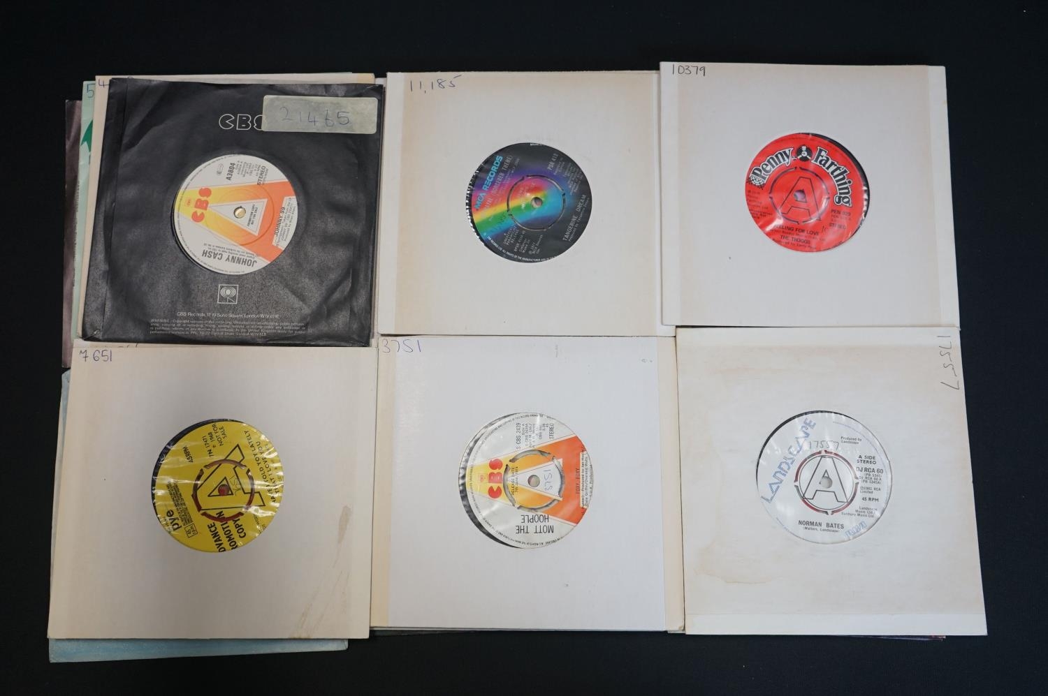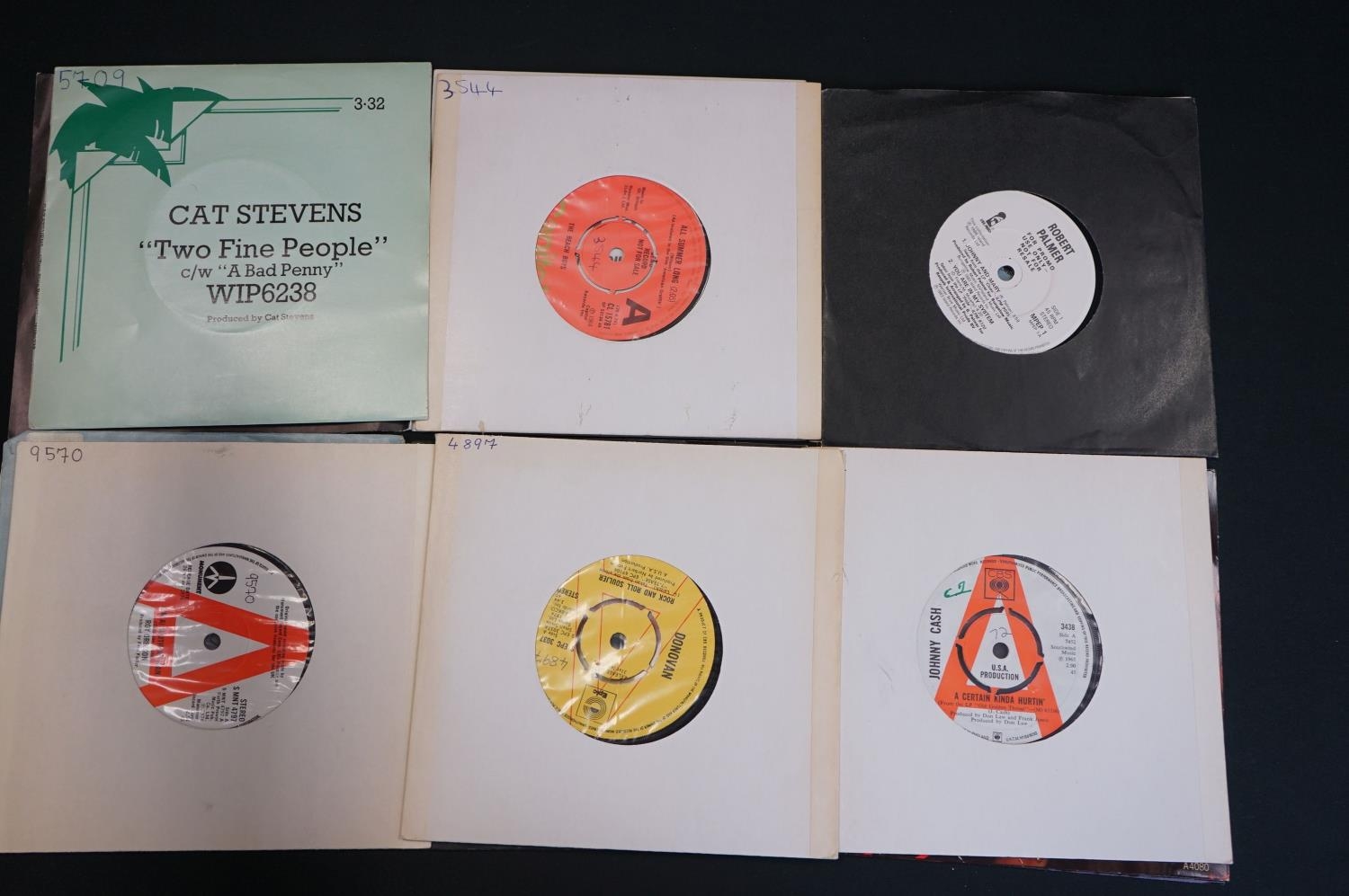 Vinyl - 34 promo & demo 7" singles including Gary Moore, Joan Jett, Meatloaf, Judas Priest, Rush, Donovan, Roy Orbison, The Beach Boys, Steppenwold, Manfred Mann, Santana, Troggs, Mott The Hoople, Tangerine Dream, Johnny Cash and more. Mainly in card sleeves. Vinyl at least Ex overall. From the Granada Television / Yorkshire Television music library, therefore most have library stickers/numbers to sleeve or vinyl or both.