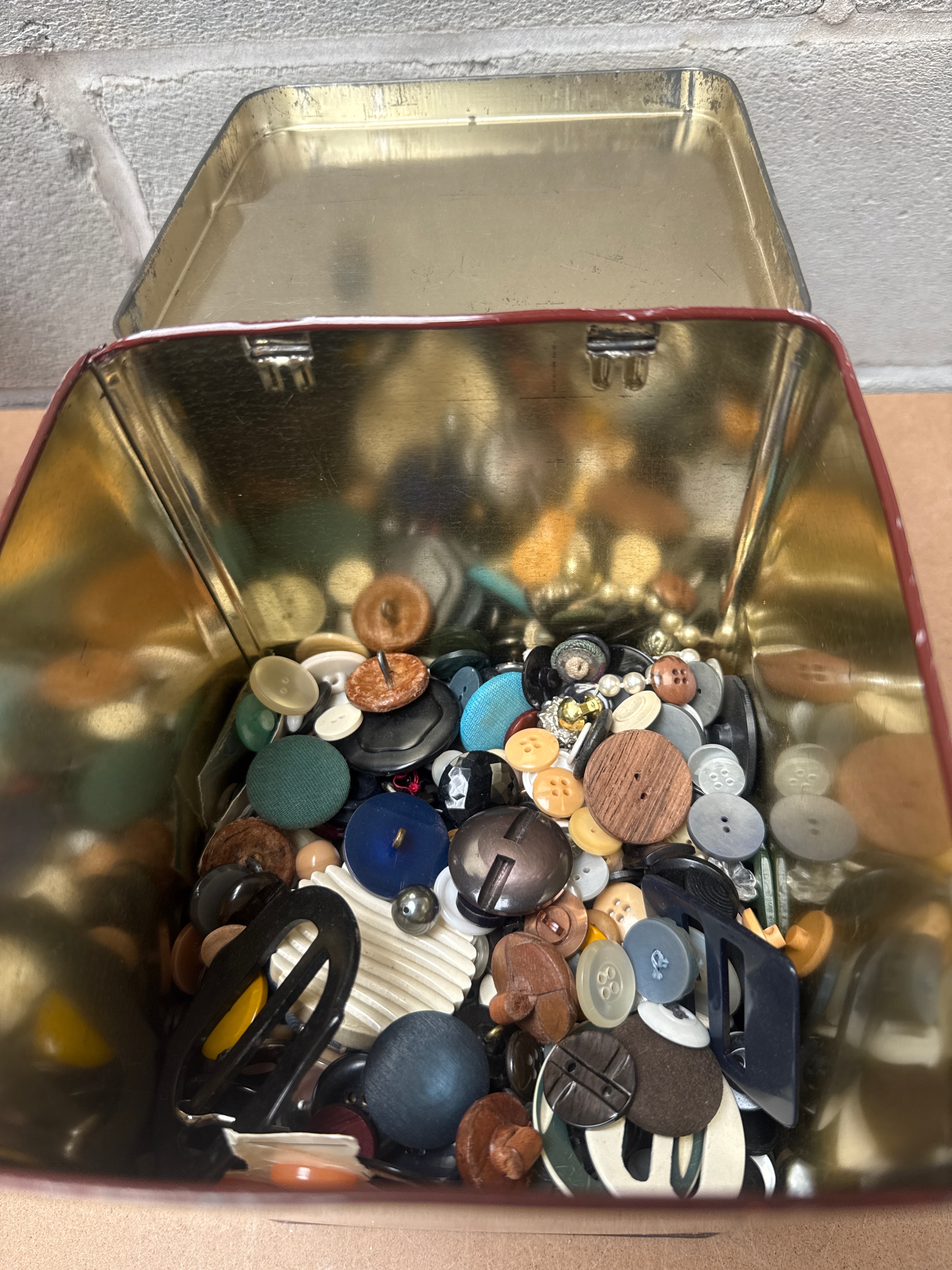 Bisto Tin Standing 8” With Selection Of Vintage Buttons See Photo 2