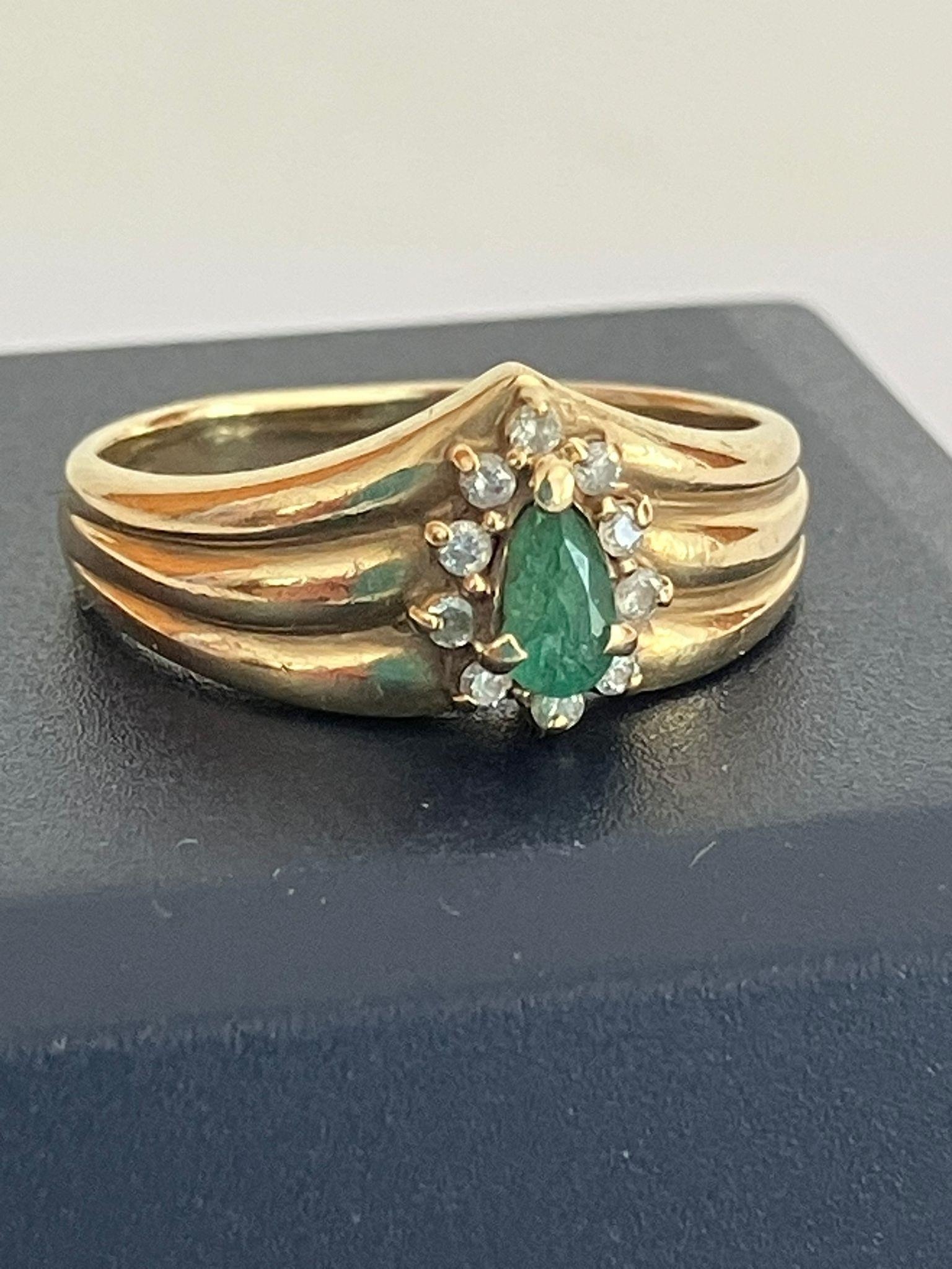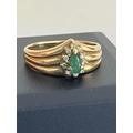 9 carat GOLD RING having a triple wishbone top,set with a GREEN TOURMALINE and a DIAMOND surround. Full UK hallmark. Complete with ring box.2.19 grams. Size K. Tourmaline AF.