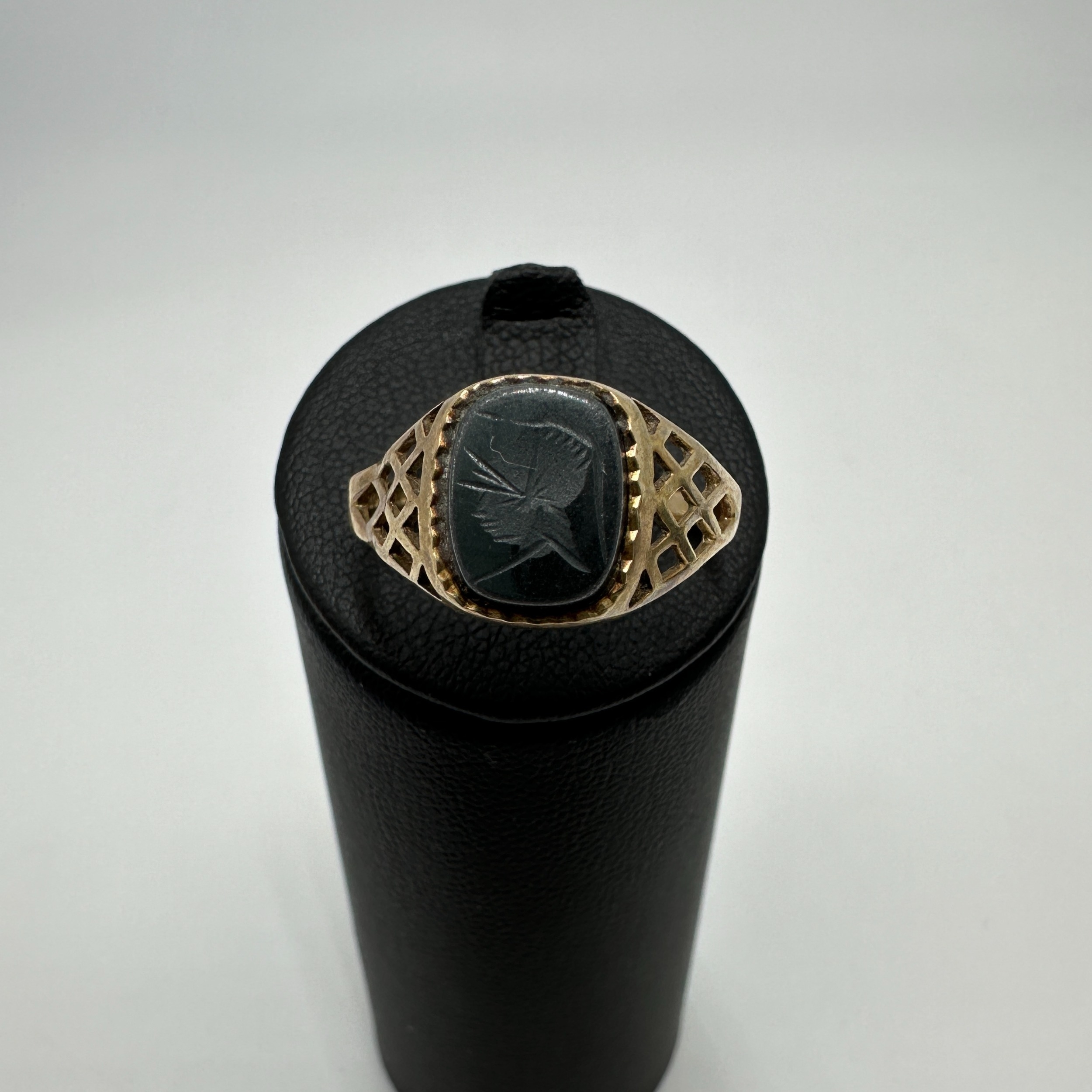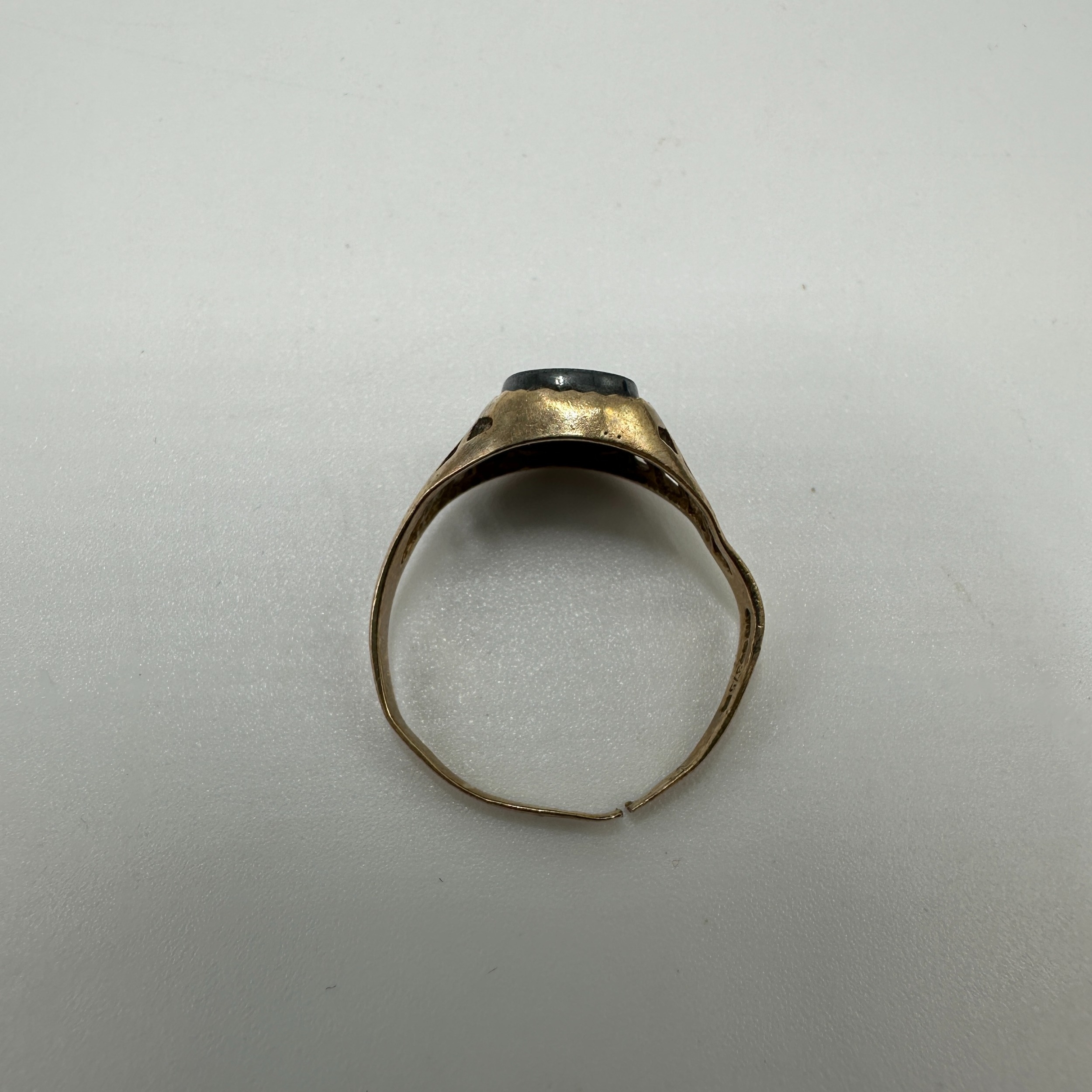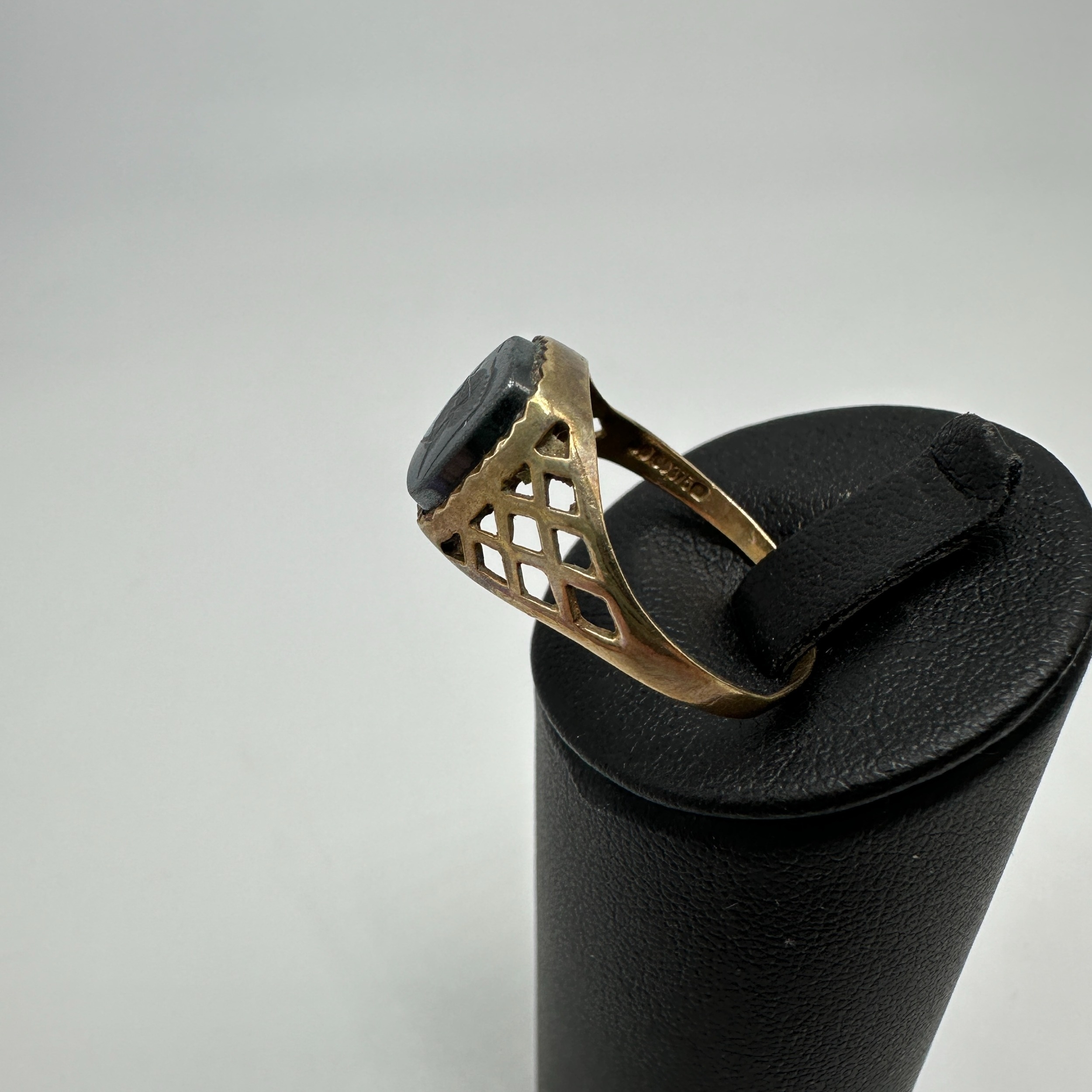A 9ct yellow gold signet ring, size S, weight 2.4 grams approx, ring will need repair