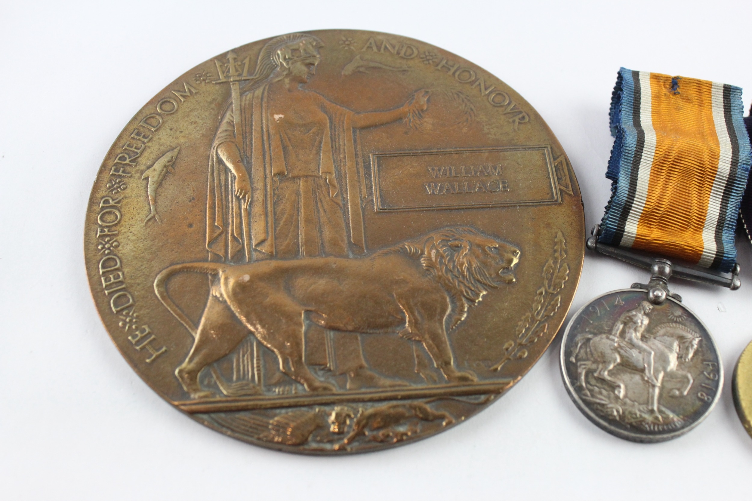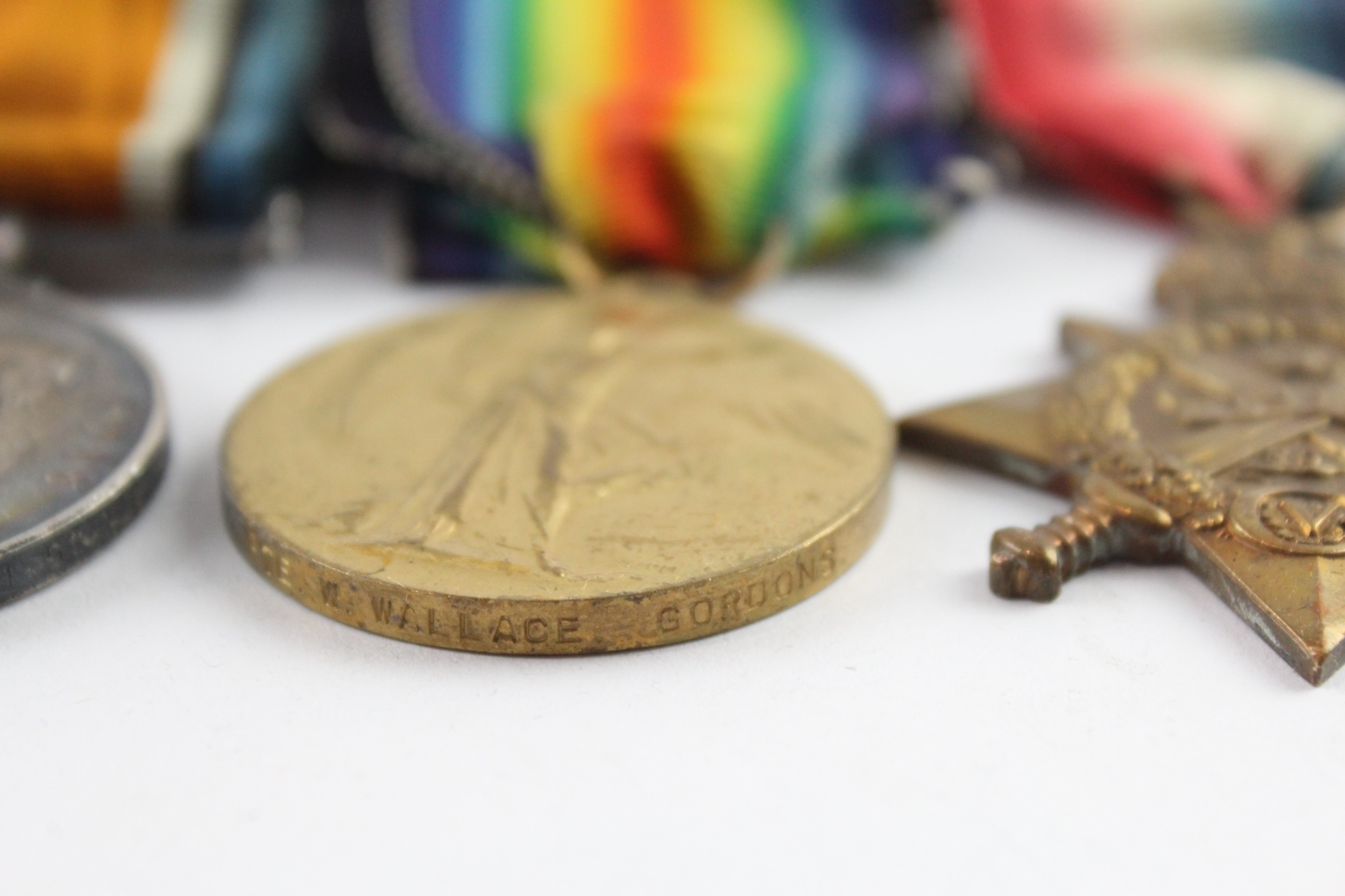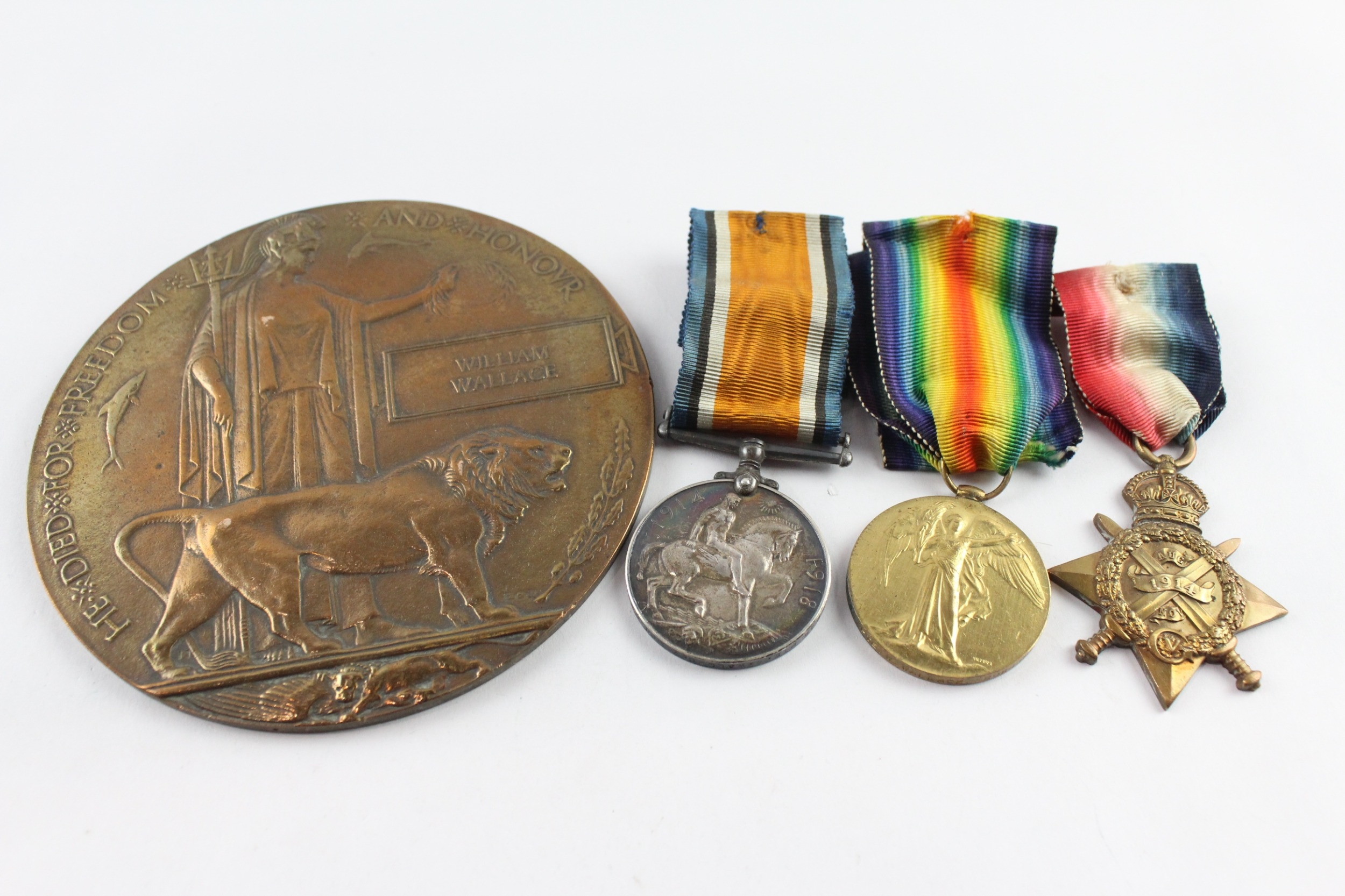 WW1 1914 Mons Star Trio & Death Plaque- Pte William Wallace 1st Gordon Highrs
