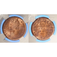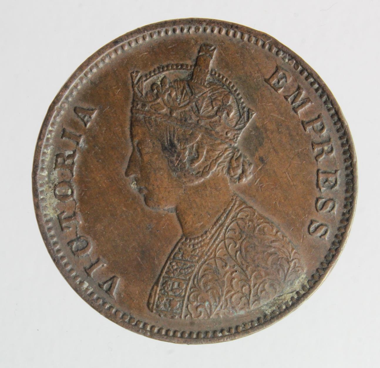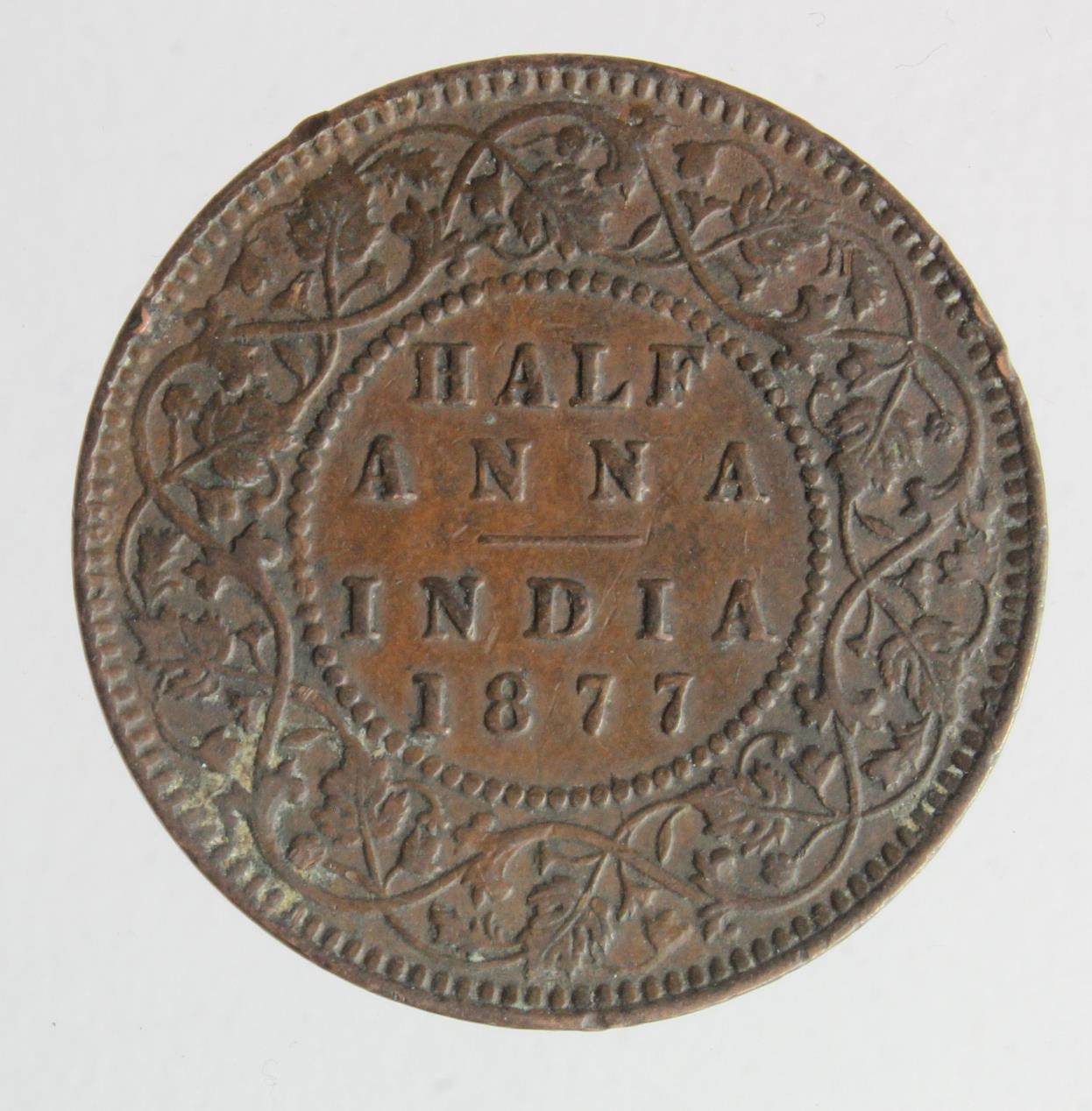 India copper Half Anna 1877 VF