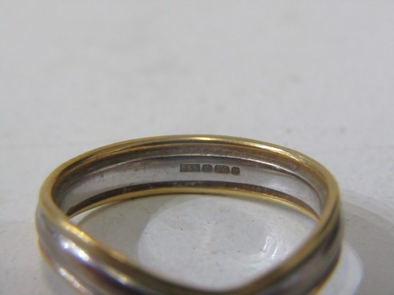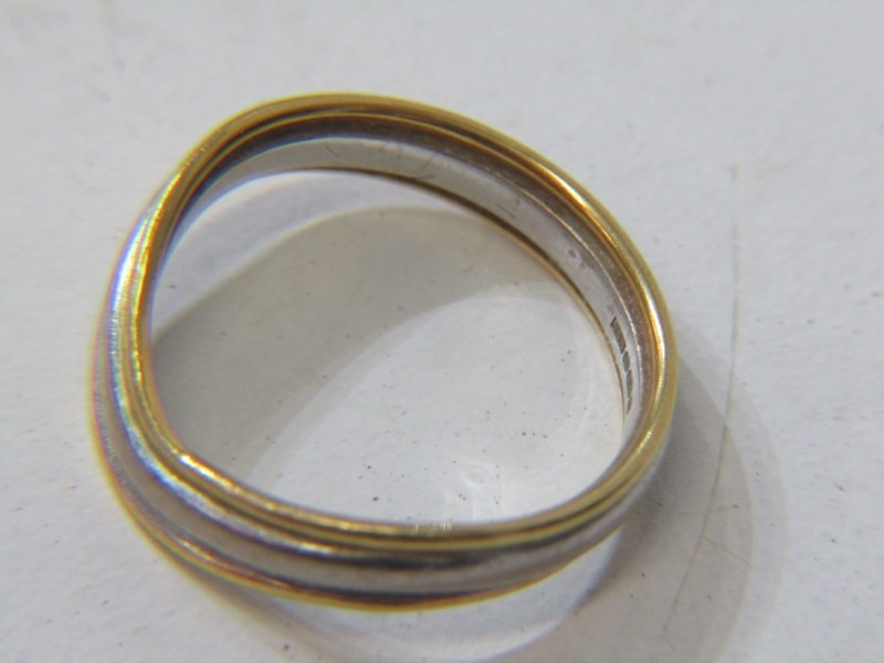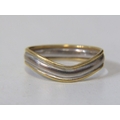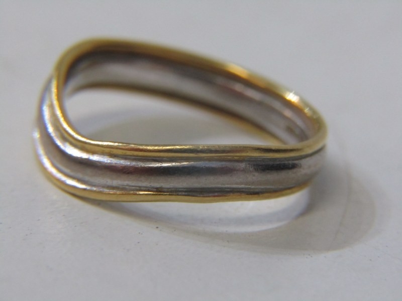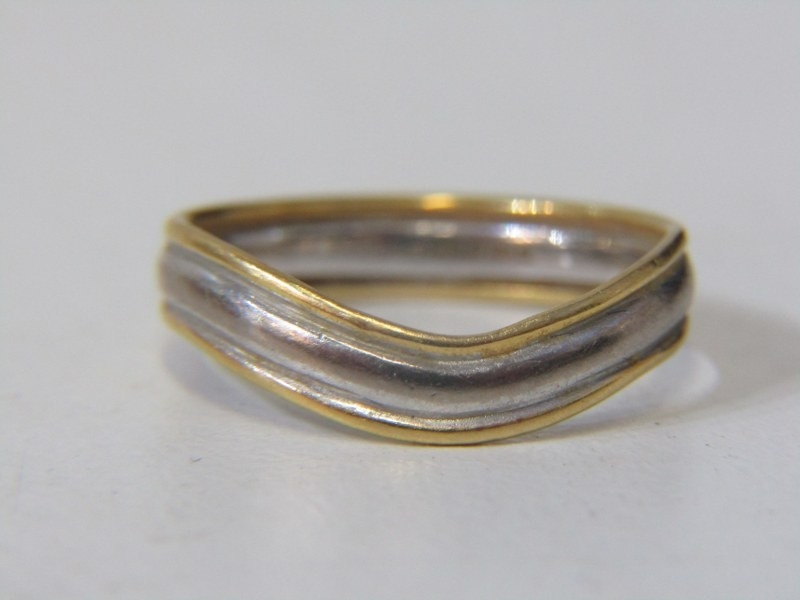 2 TONE GOLD BAND RING, 18ct yellow and white gold wavy design band ring, size L, 3.5 grams