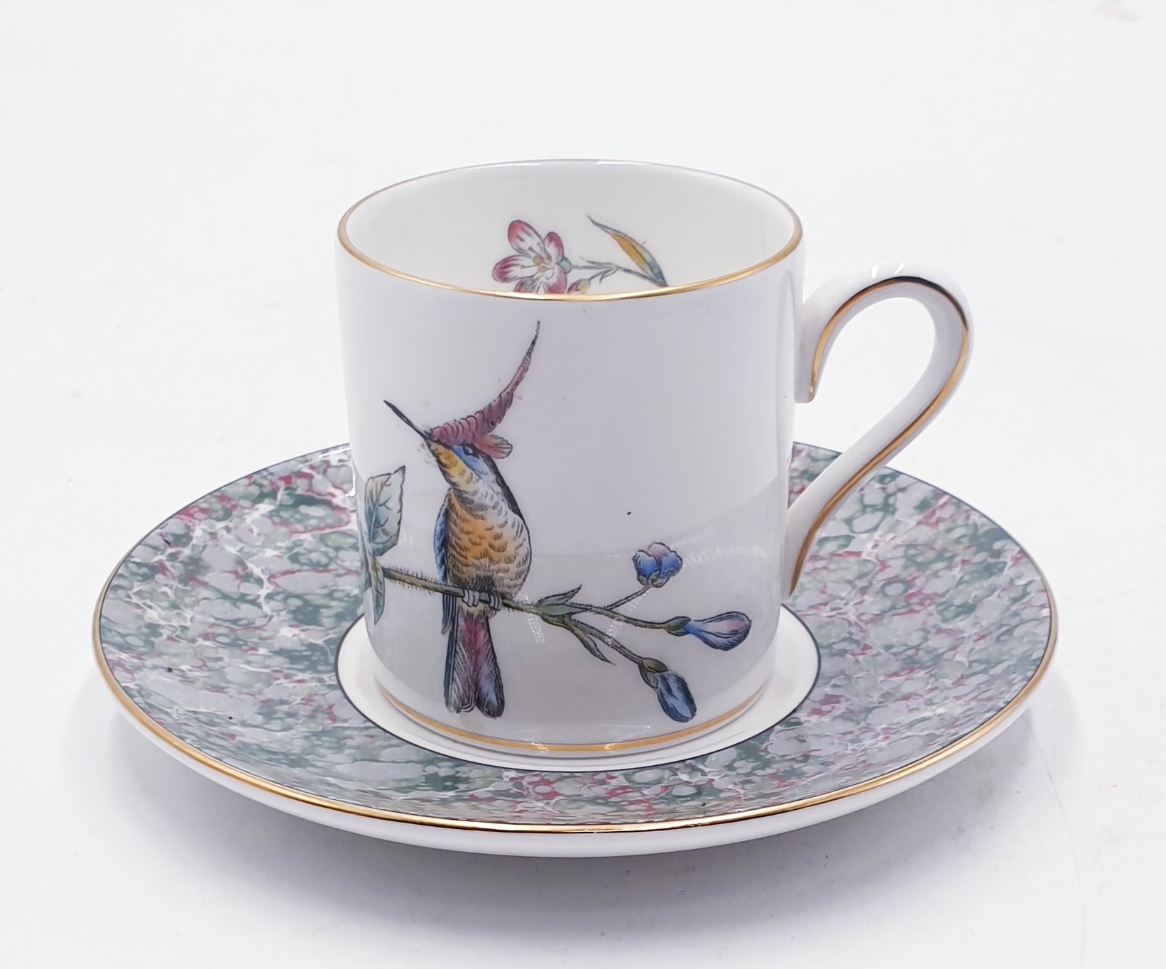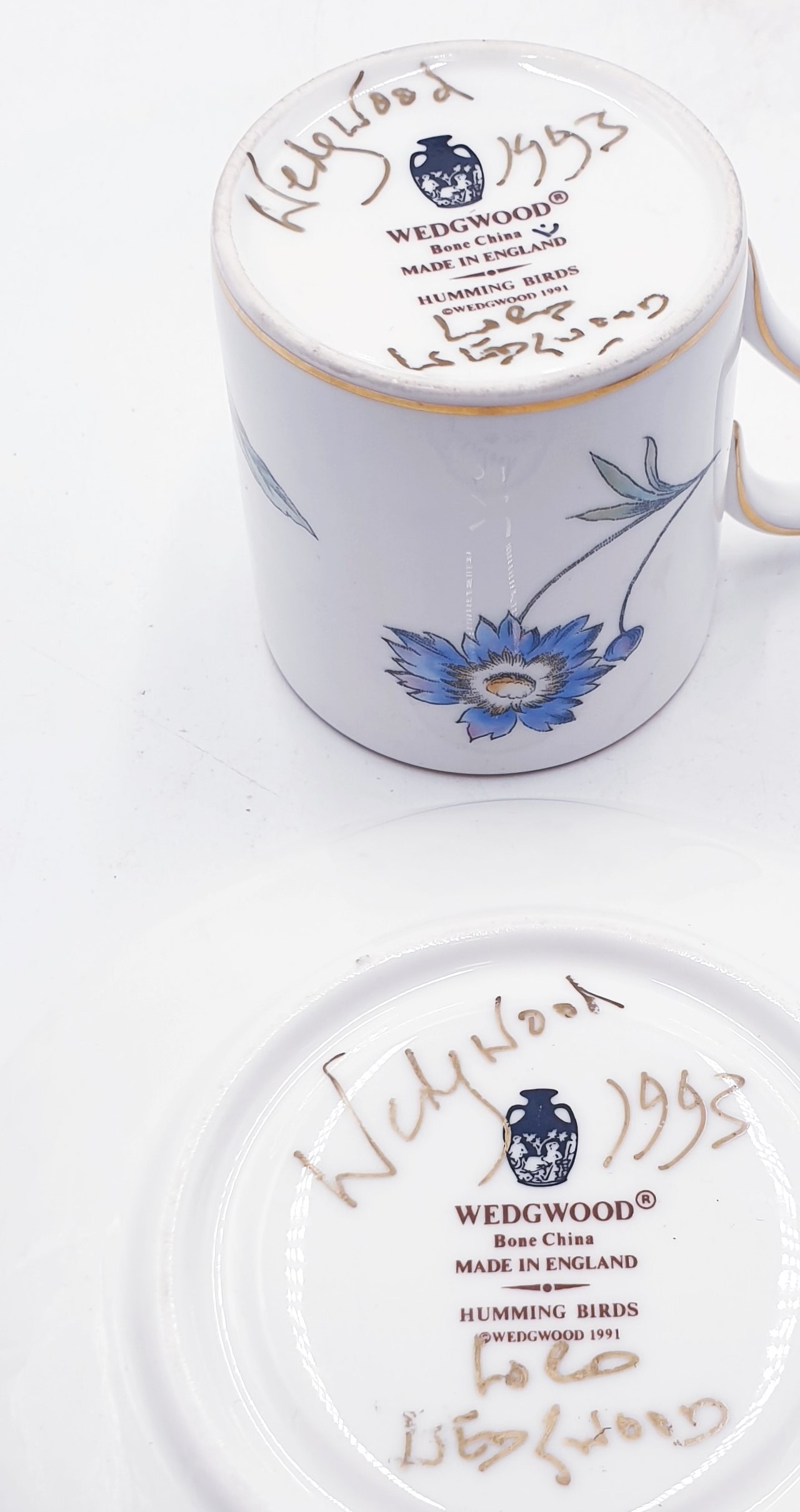 WEDGWOOD CHINA COFFEE CAN & SAUCER IN THE HUMMINGBIRD DESIGN (Both Pieces Signed By Lord Wedgwood 1993)