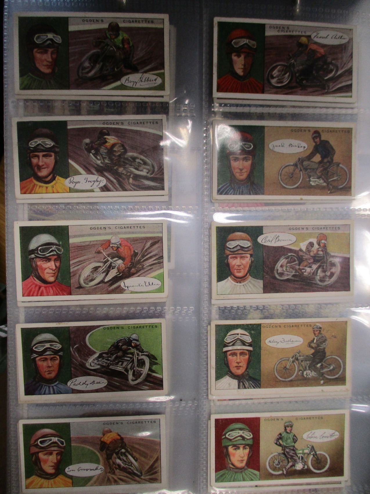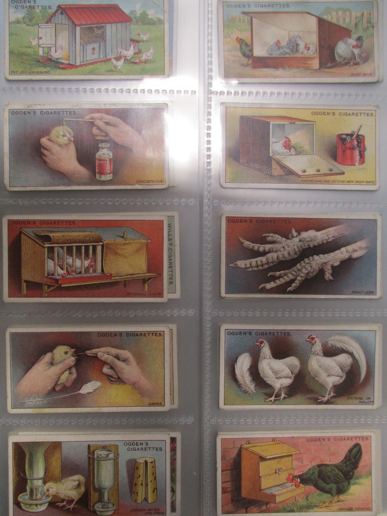Collection in 10 albums with complete sets including Gallaher 1912 Woodland Trees Series, Ogdens Famous Dirt Track Riders, Poultry Rearing & Management, Steeplechase Trainers & Owner's Colours, Players Old Naval Prints, Wix Kensitas Flags,etc, plus ranges from Gallaher, Murray's, Trade Card ranges, Taddy, Wills, varying condition. Qty. 5,000 approx. (2B)