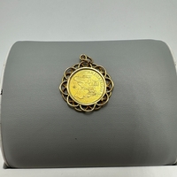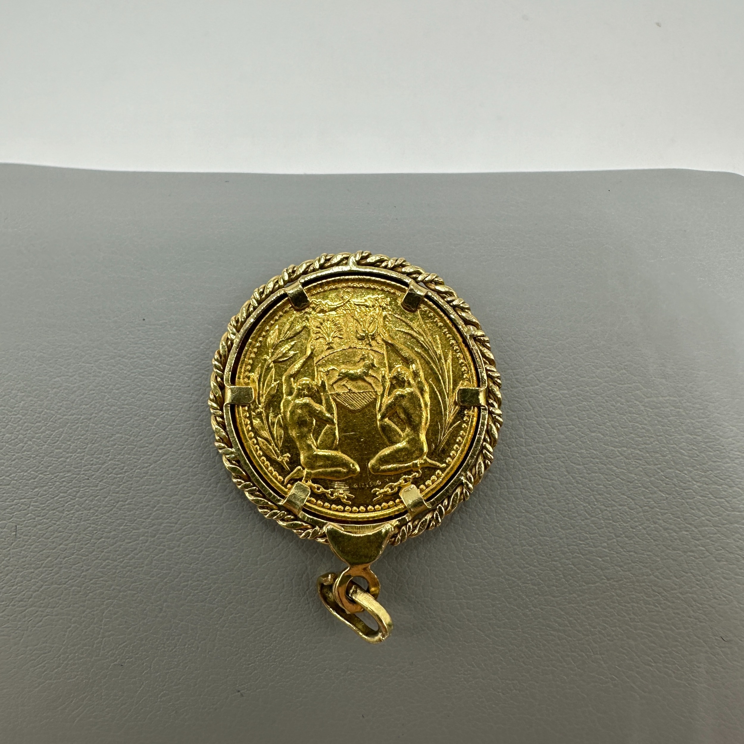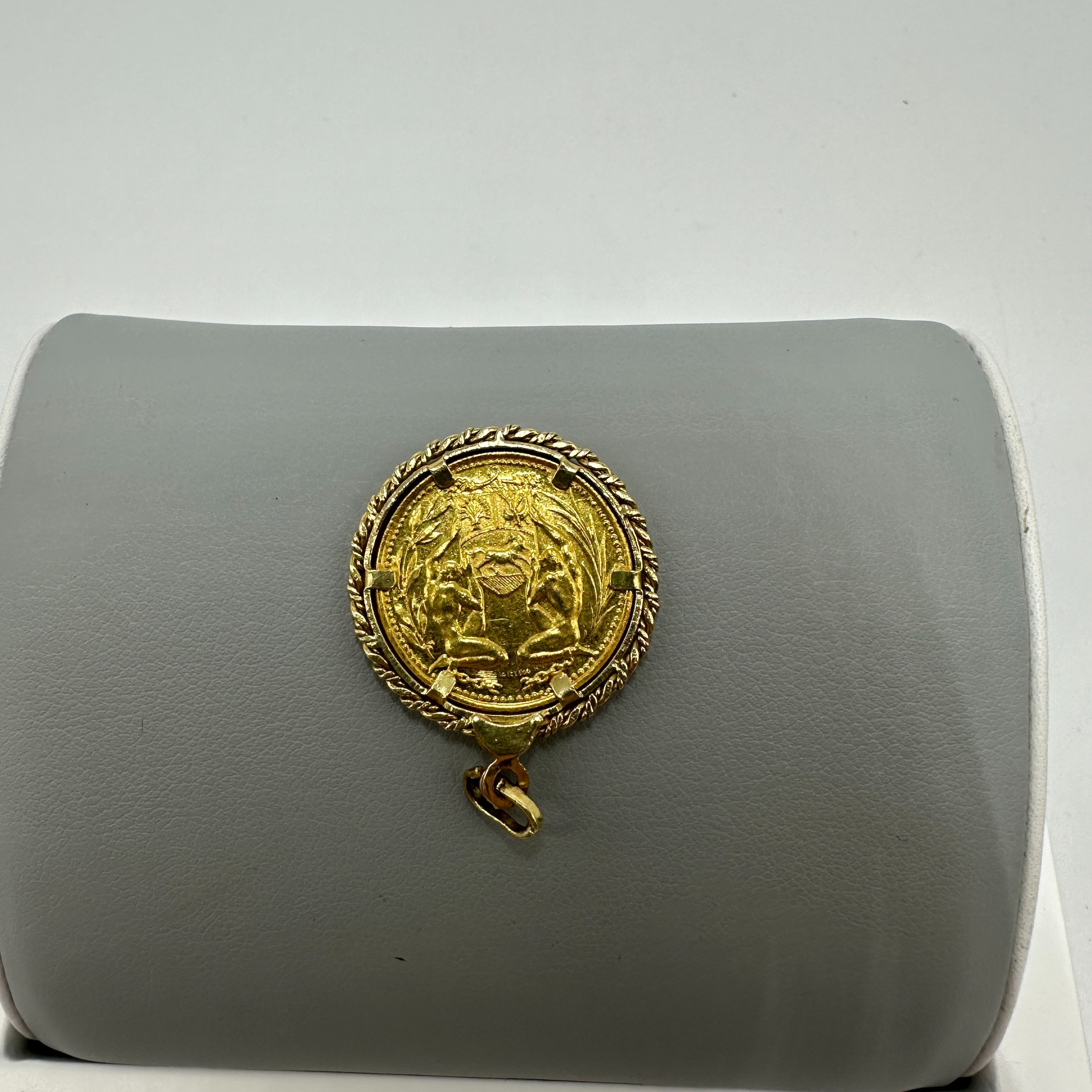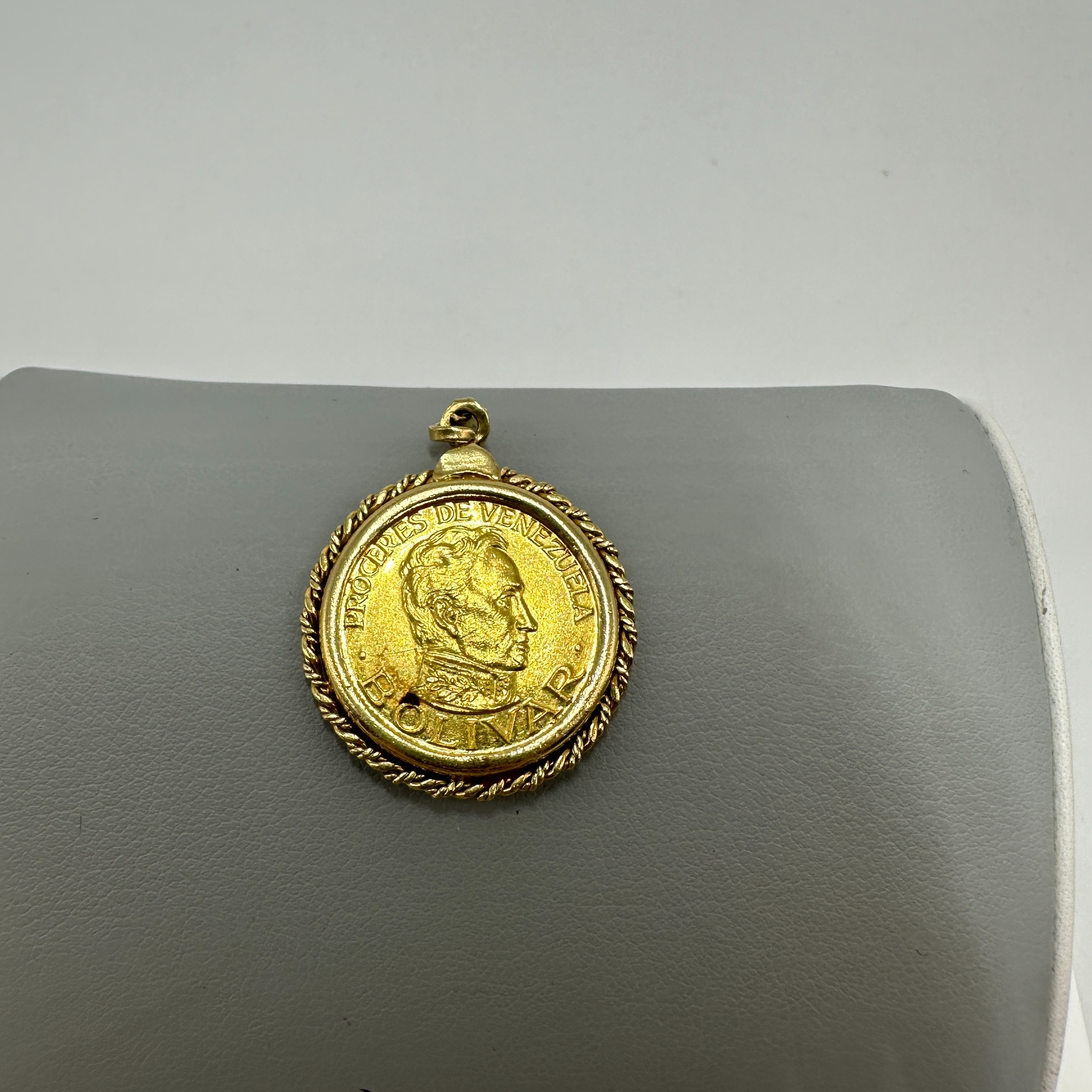 A Bolivar Proceres De Venezuela 21 ct gold coin & mount, 8 grams in weight approx