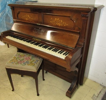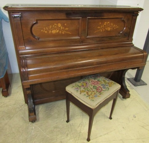 Steinway (c1894) A Vertegrand upright piano in an inlaid rosewood case; together with a stool.