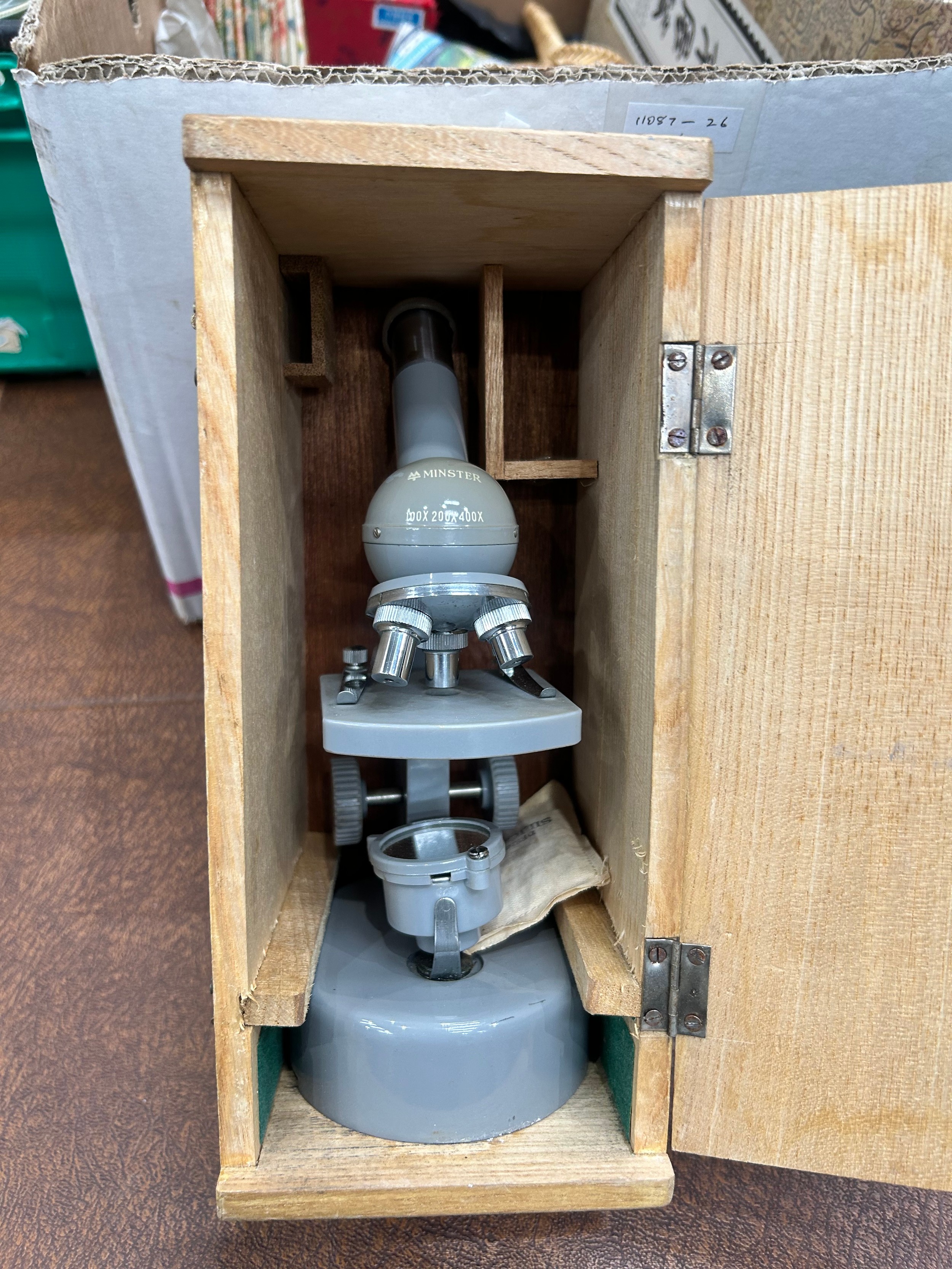 Microscope with case and accessories -box height 22cm