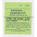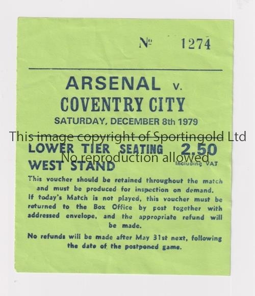ARSENAL Ticket for the home League match v Coventry City 8/12/1979. Generally good