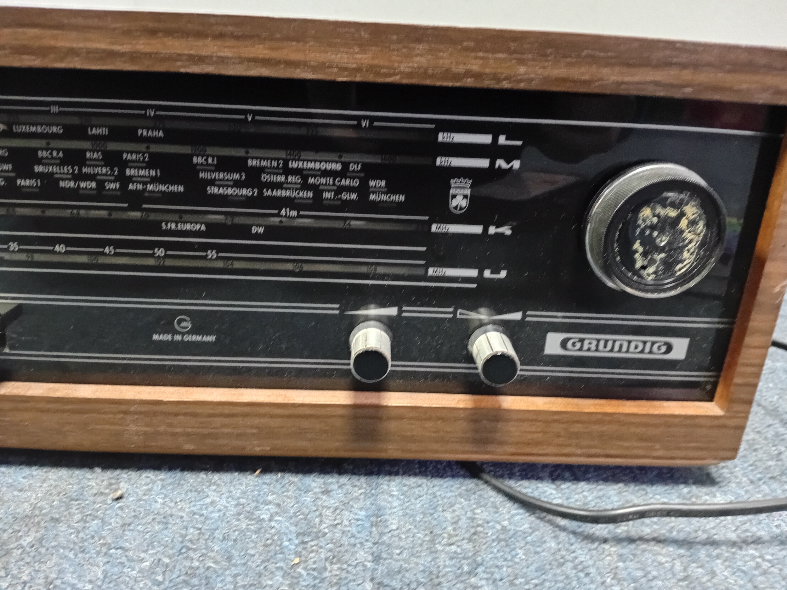 A vintage Grundig Valve RF 153a radio. Made in West Germany. From a house clearance, pat tested and turns on but has a faulty tuning knob