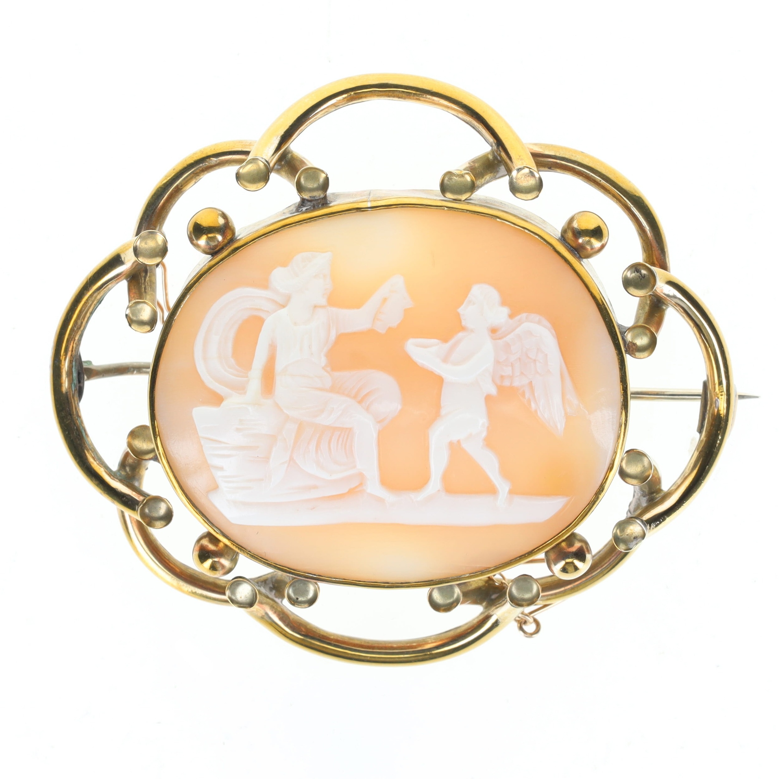Antique Shell Cameo Cupid Brooch