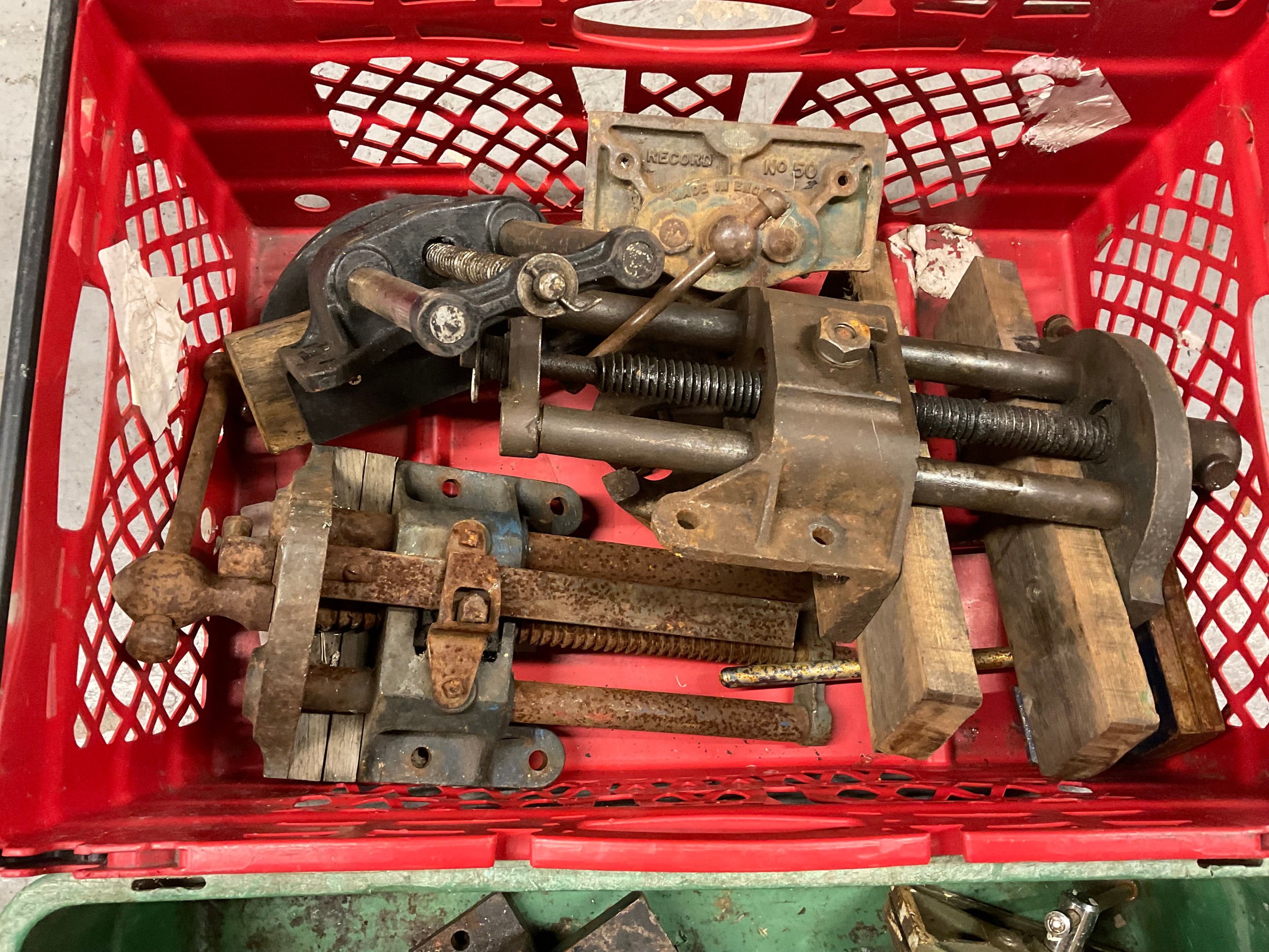 2 CRATES OF VINTAGE VICES TO INCLUDE WODEN, RECORD ETC