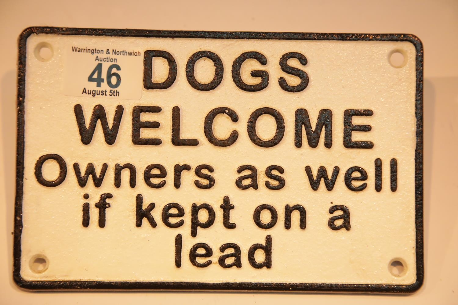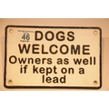 Cast iron Dogs Welcome humorous sign, 19 x 13 cm. P&P Group 2 (£18+VAT for the first lot and £2+VAT for subsequent lots)