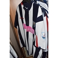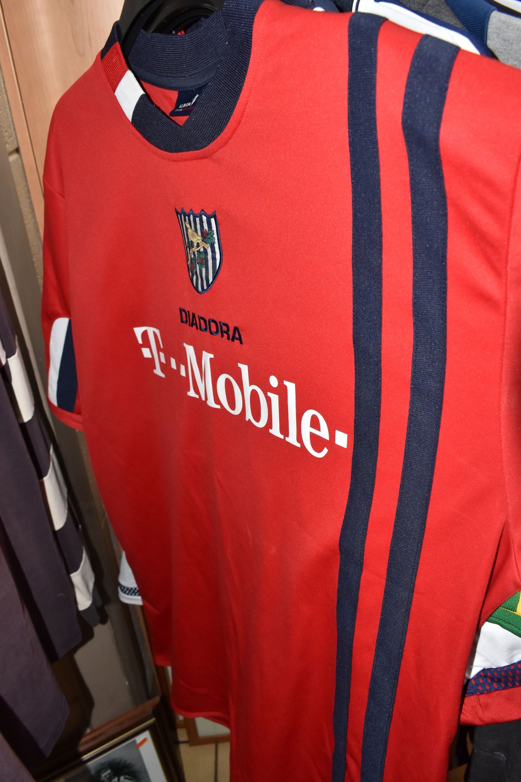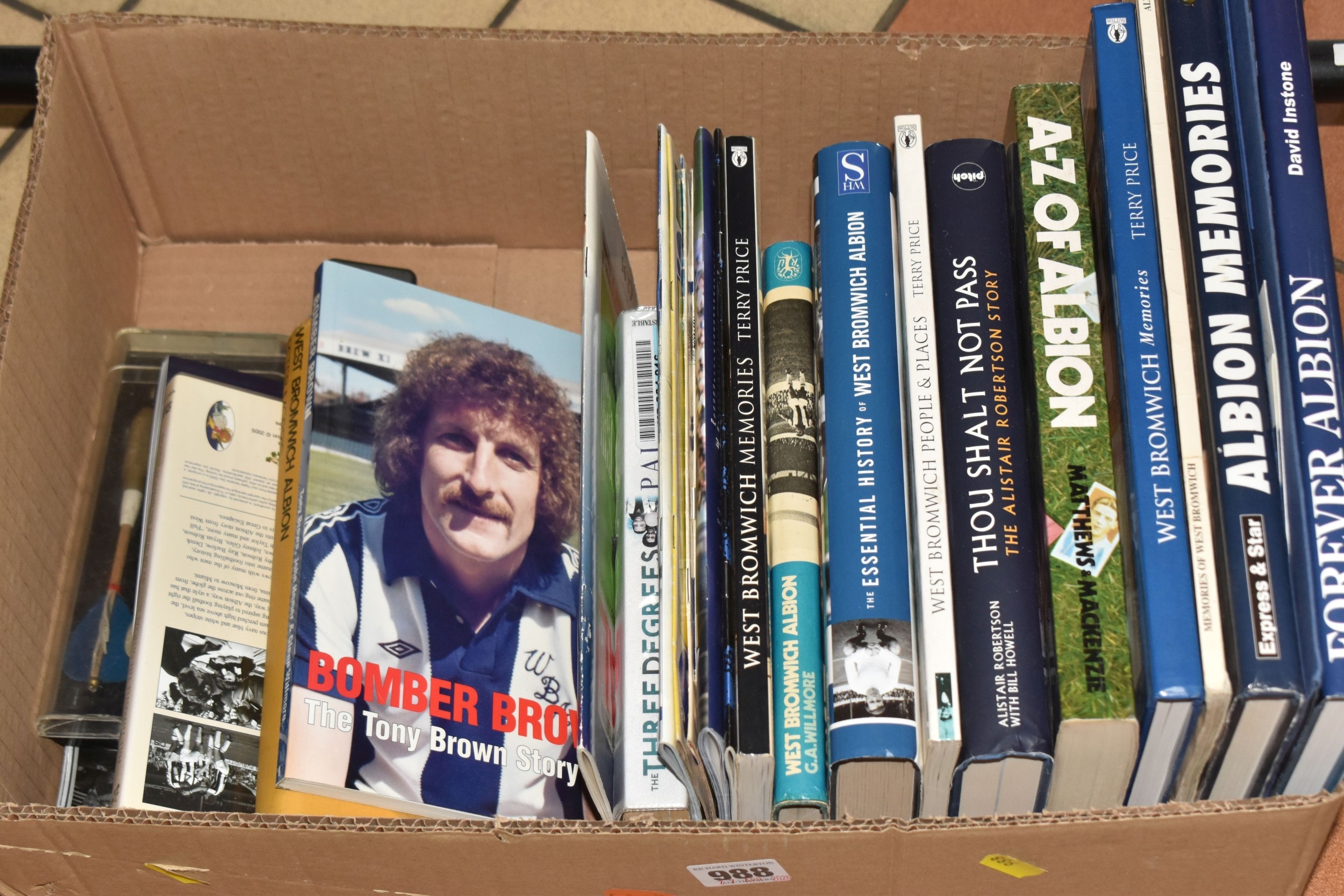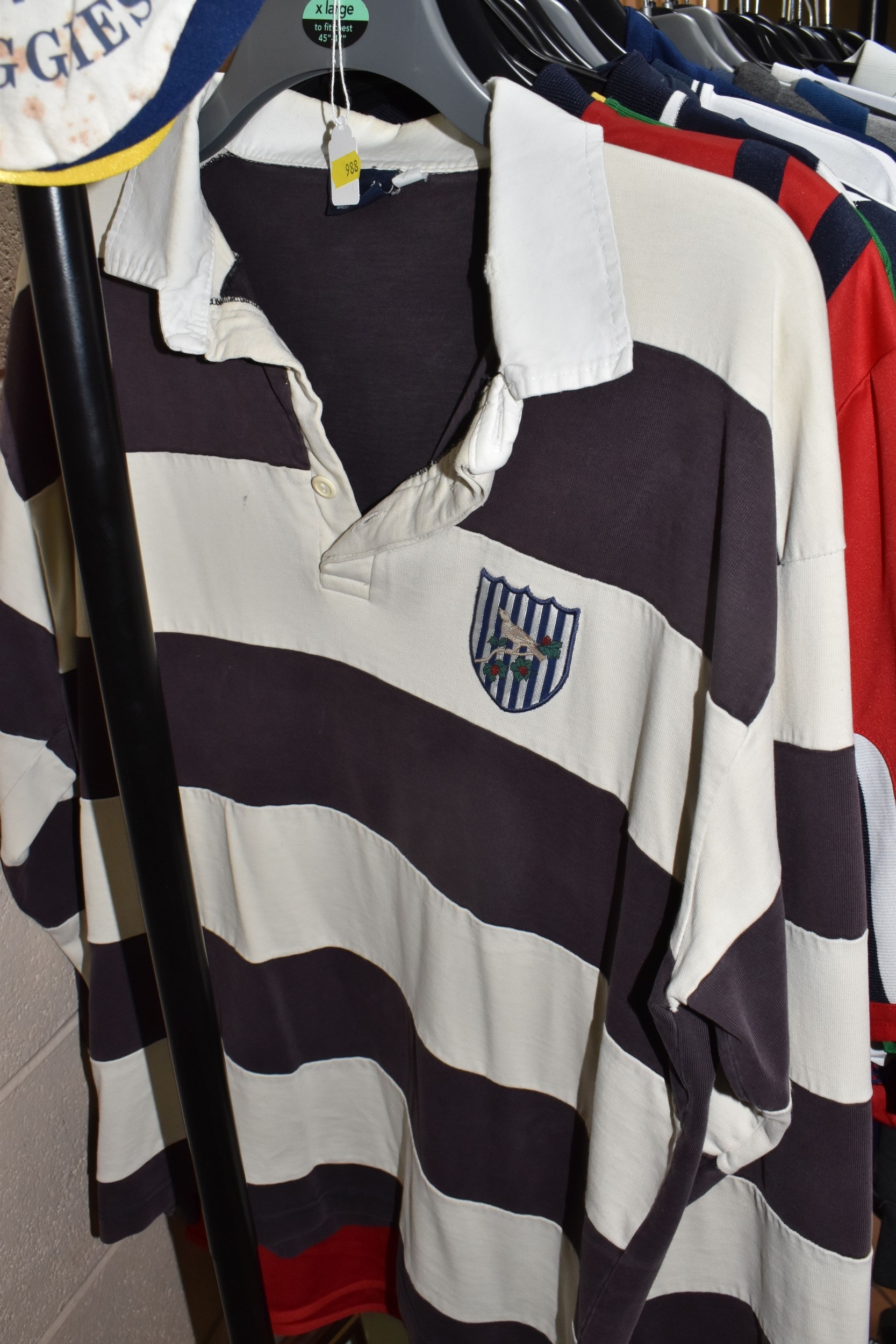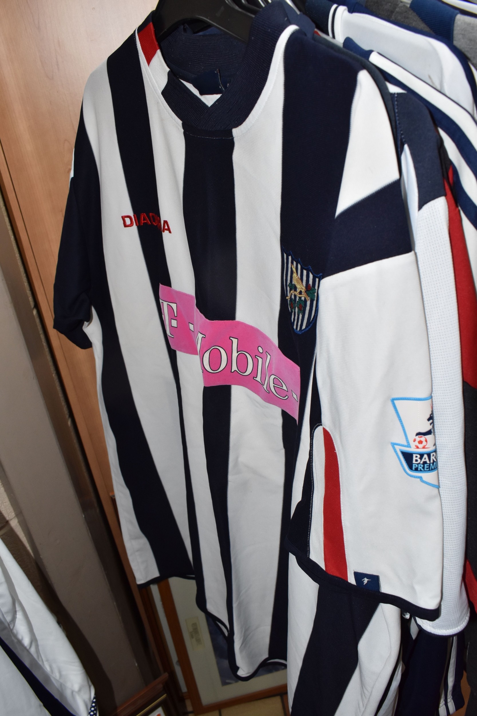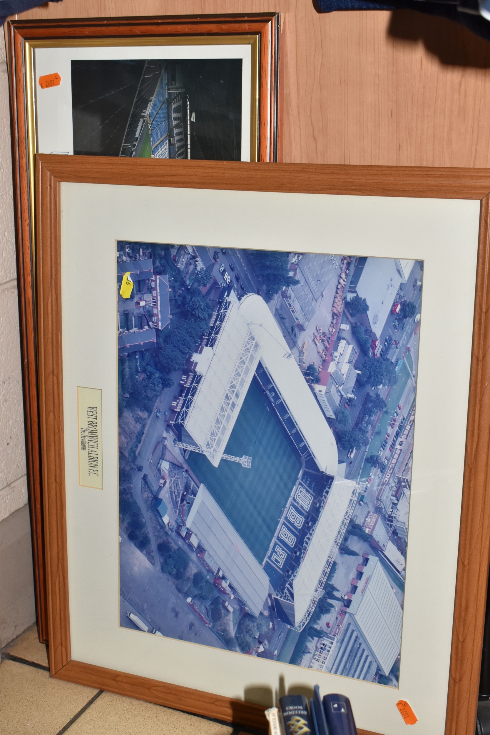 ONE BOX AND LOOSE WEST BROMWICH ALBION FOOTBALL MEMORABILIA, to include approximately thirty tops, including polo tops, quarter zip, full zip tops, rugby style etc. sizes XL, together with various books, and framed prints including the stadium, (1 box + loose), (sd/af), PLEASE NOTE THE RAIL IS NOT INCLUDED IN THE SALE