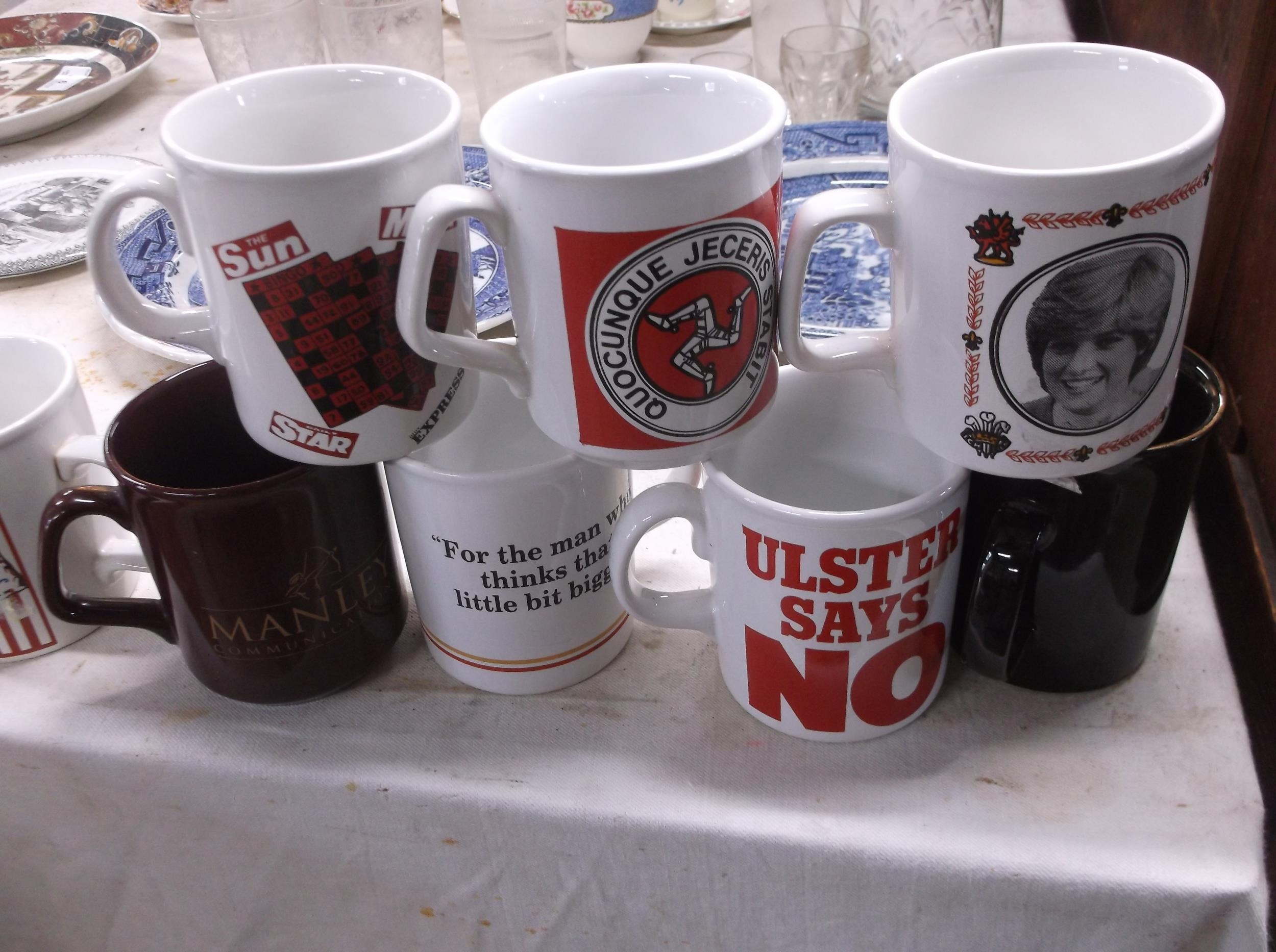 Ten commemorative coffee mugs