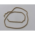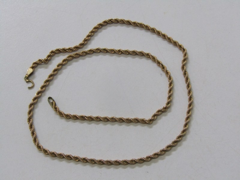 GOLD ROPE NECKLACE, 9ct yellow gold rope necklace, clasp a/f, 18" length, 3 grams