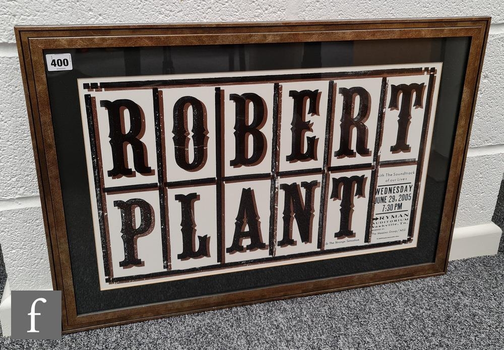 A Robert Plant Mighty ReArranger tour poster, Ryman Auditorium, Nashville, 29th June, 2005, Hatch Show, Print-shan, framed and glazed, 48cm x 69cm.