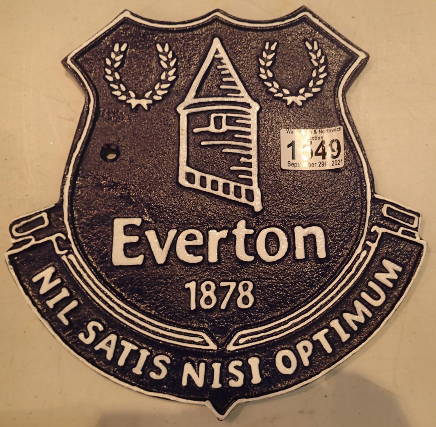 Cast iron Everton Football Club plaque, H: 24 cm. P&P Group 2 (£18+VAT for the first lot and £3+VAT for subsequent lots)
