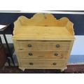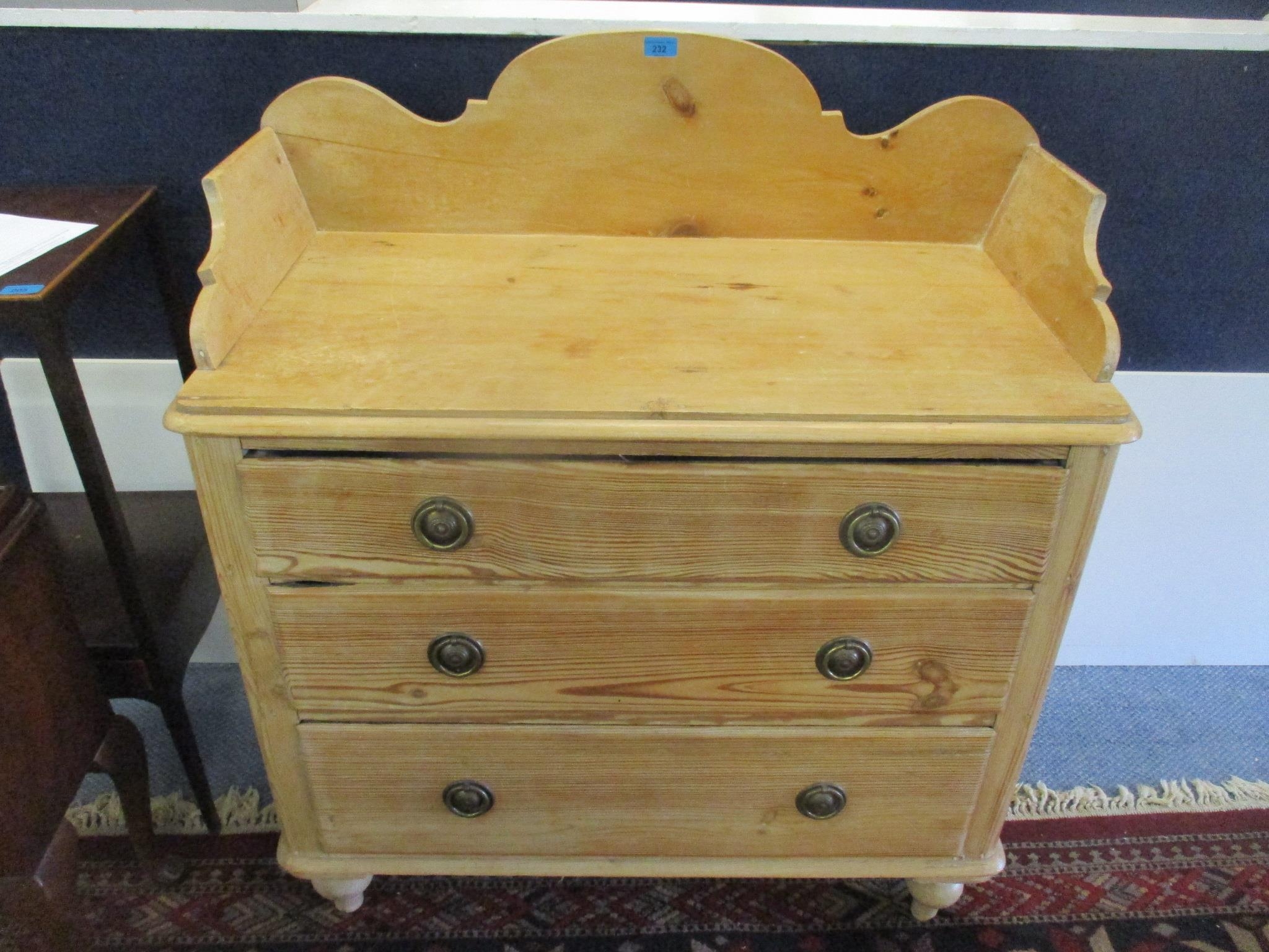 A Victorian pine chest of three graduated drawers and having a raised back 102cm h x 93.5cm w